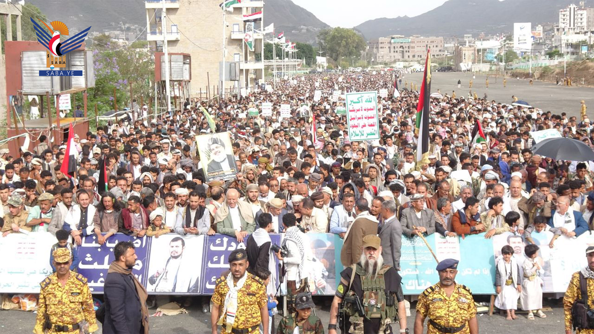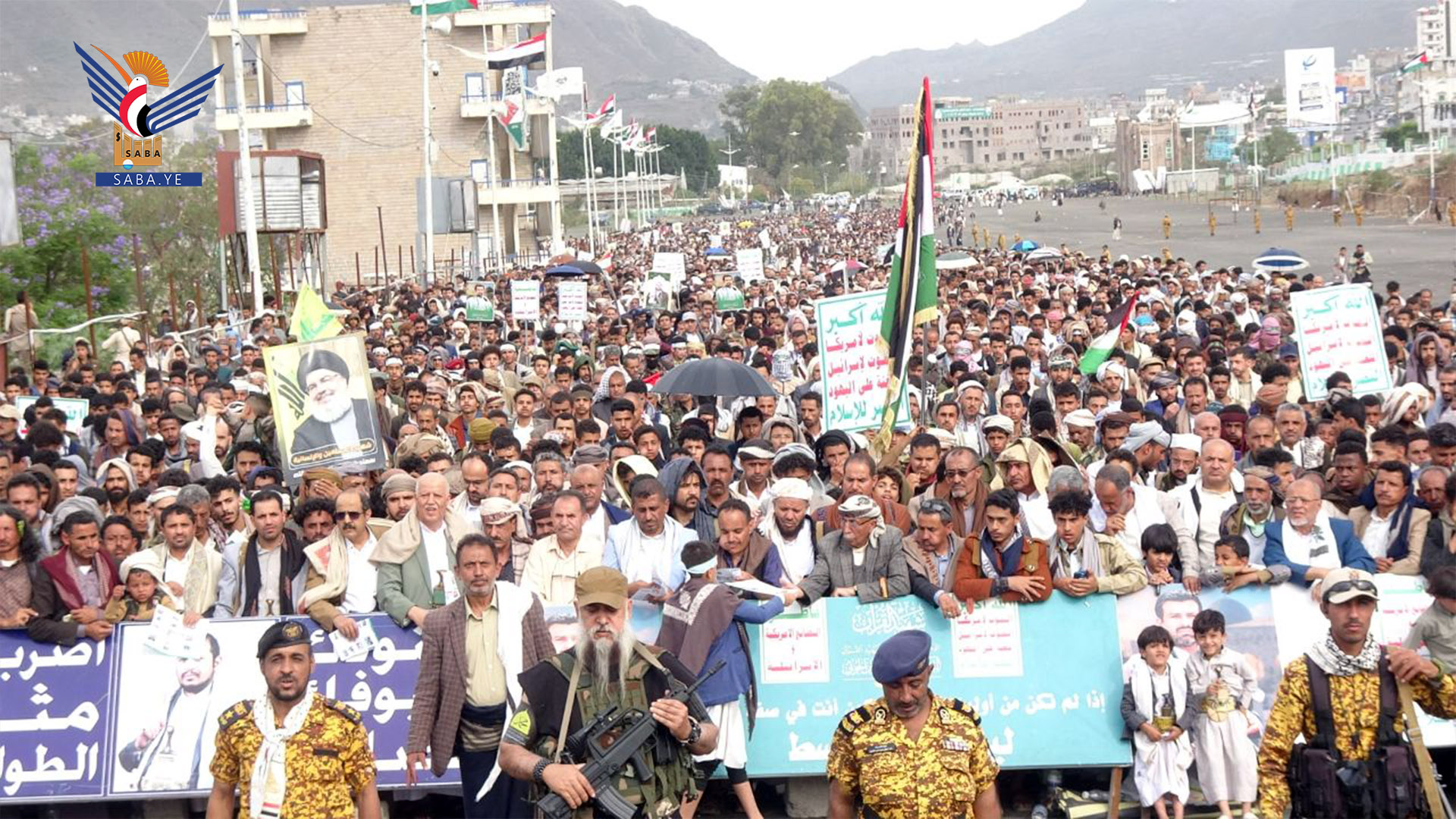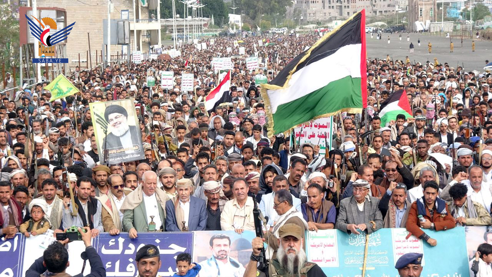 وأكد المشاركون في المسيرة التي أقيمت بساحة الرسول الأعظم في مدينة إب، بمشاركة المحافظ عبدالواحد صلاح، وأمين عام محلي المحافظة أمين الورافي وعدد من أعضاء مجلسي النواب والشورى، ووكلاء المحافظة، ومسؤول التعبئة أن إمعان العدو الأمريكي والإسرائيلي في ارتكاب المجاز والانتهاكات واستهداف المدنيين لن يُثني الشعب اليمني عن مساندة الشعب الفلسطيني.