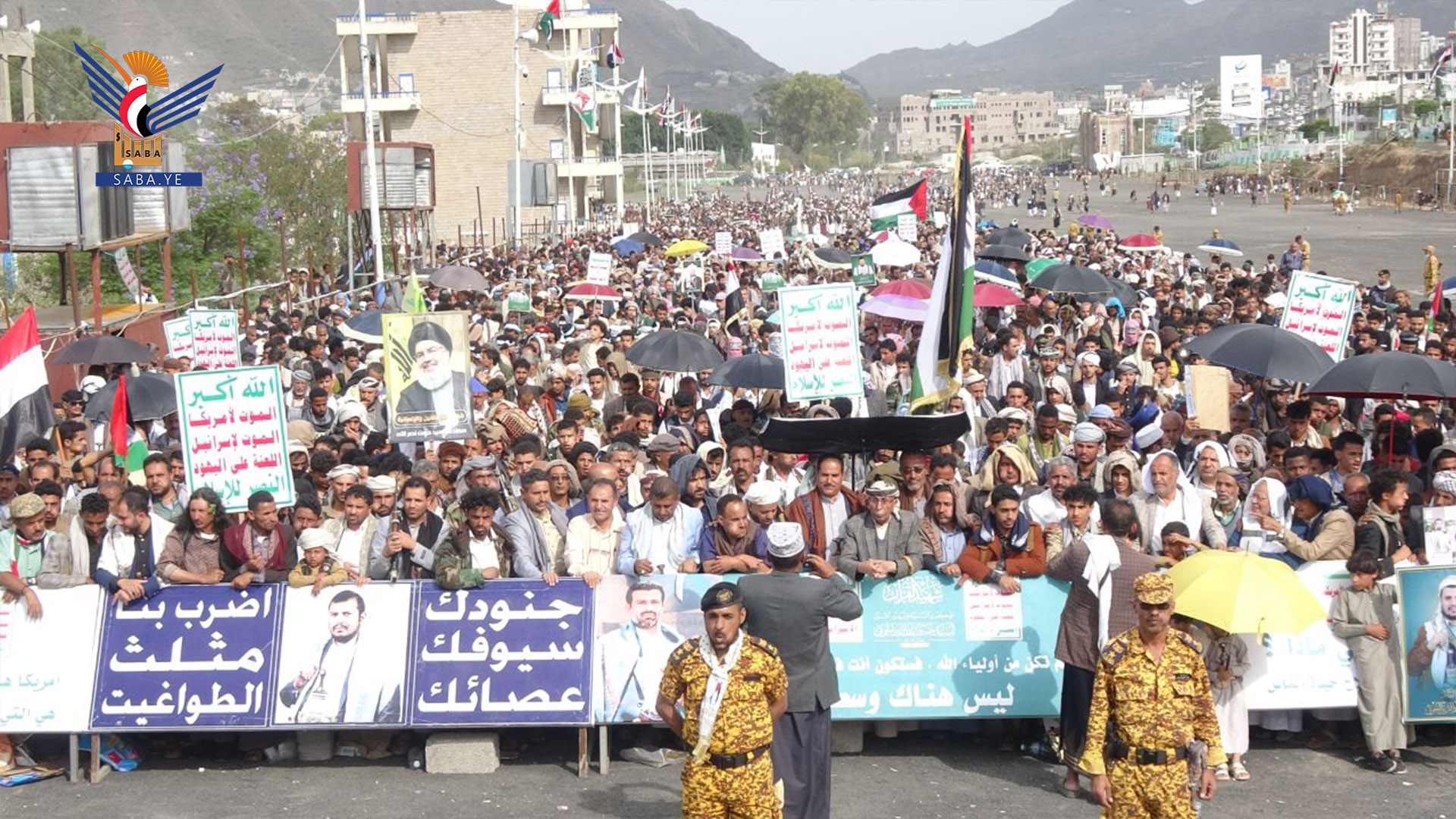 إلى ذلك شهدت مديريات المربع الشمالي "يريم، السدة، النادرة، والرضمة" 27 مسيرة حاشدة، تقدّمتها قيادات المديريات الأربع، وأكد المشاركون فيها أن العدوان الأمريكي لن يستطيع التأثير على الموقف اليمني المناصر والمساند لغزة.. مشيرين إلى أن أحرار اليمن ماضون في نصرة الشعب الفلسطيني ومواجهة العدوان الأمريكي.