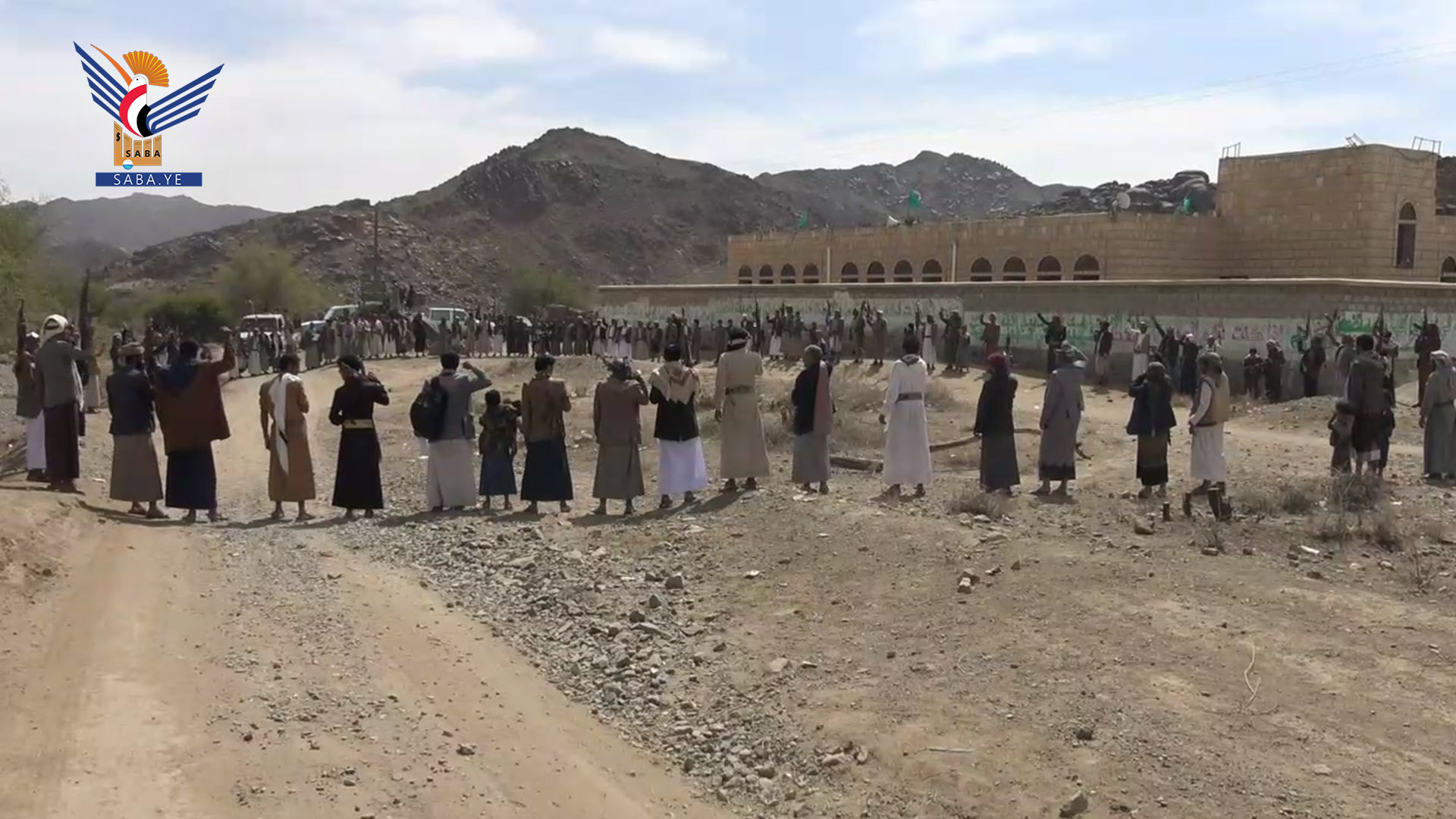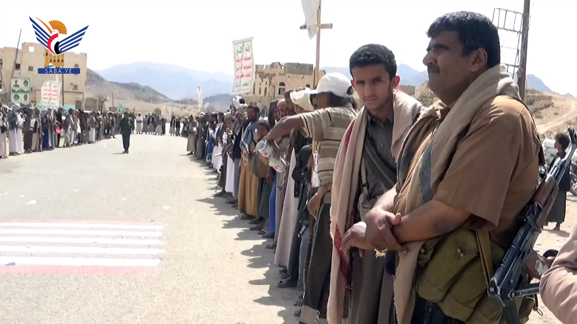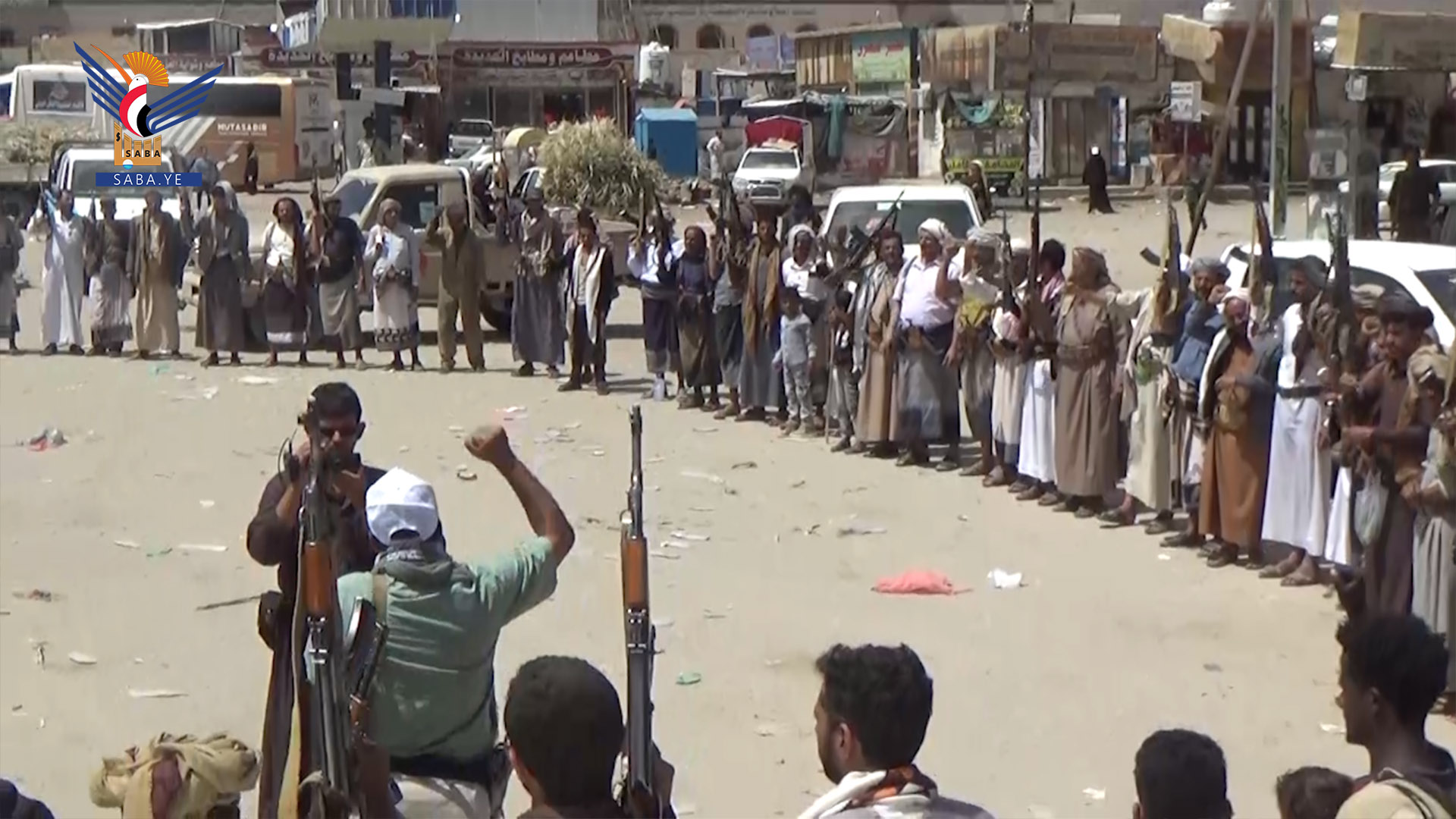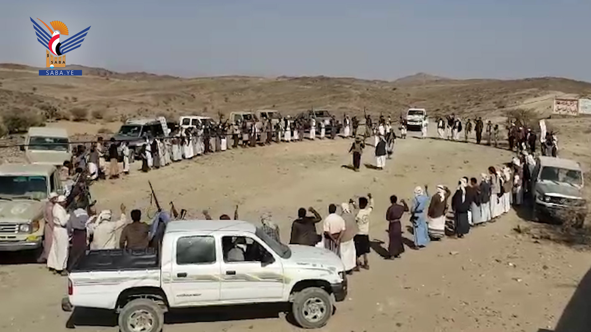 وشهدت مديرية بدبدة وقفة قبلية مسلحة، بارك فيها المشاركون العمليات النوعية للقوات المسلحة اليمنية، مؤكدين استمرار التعبئة الشاملة وتسخير الإمكانات والقدرات لمواجهة العدوان الأمريكي وتكثيف الأنشطة التعبوية والمقاطعة الاقتصادية.