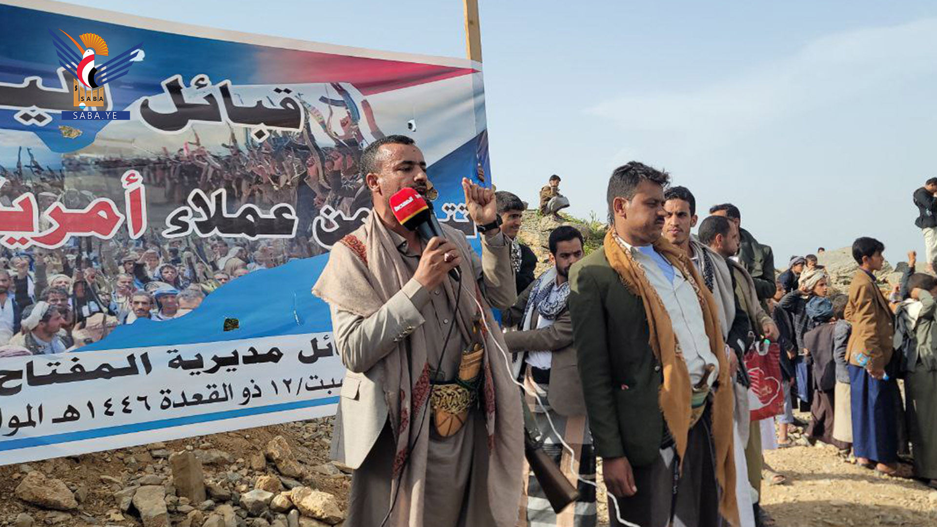 كما أعلنت قبائل المفتاح، البراءة من الخونة والعملاء جواسيس "أمريكا وإسرائيل" ومن كل عميل وخائن ومرتزق يقف مع الباطل ويسانده، والوقوف ضد كل من يتعاون أو يرصد إحداثيات للعدوان الأمريكي، الإسرائيلي على اليمن.