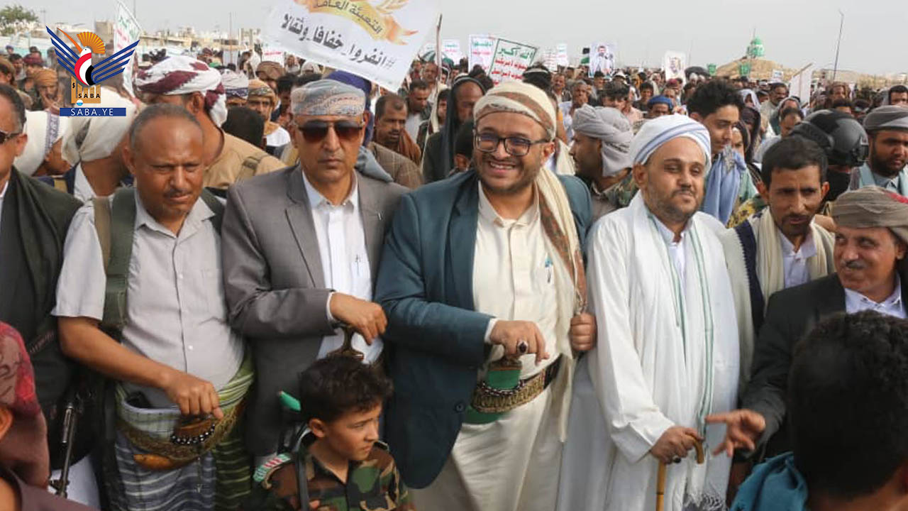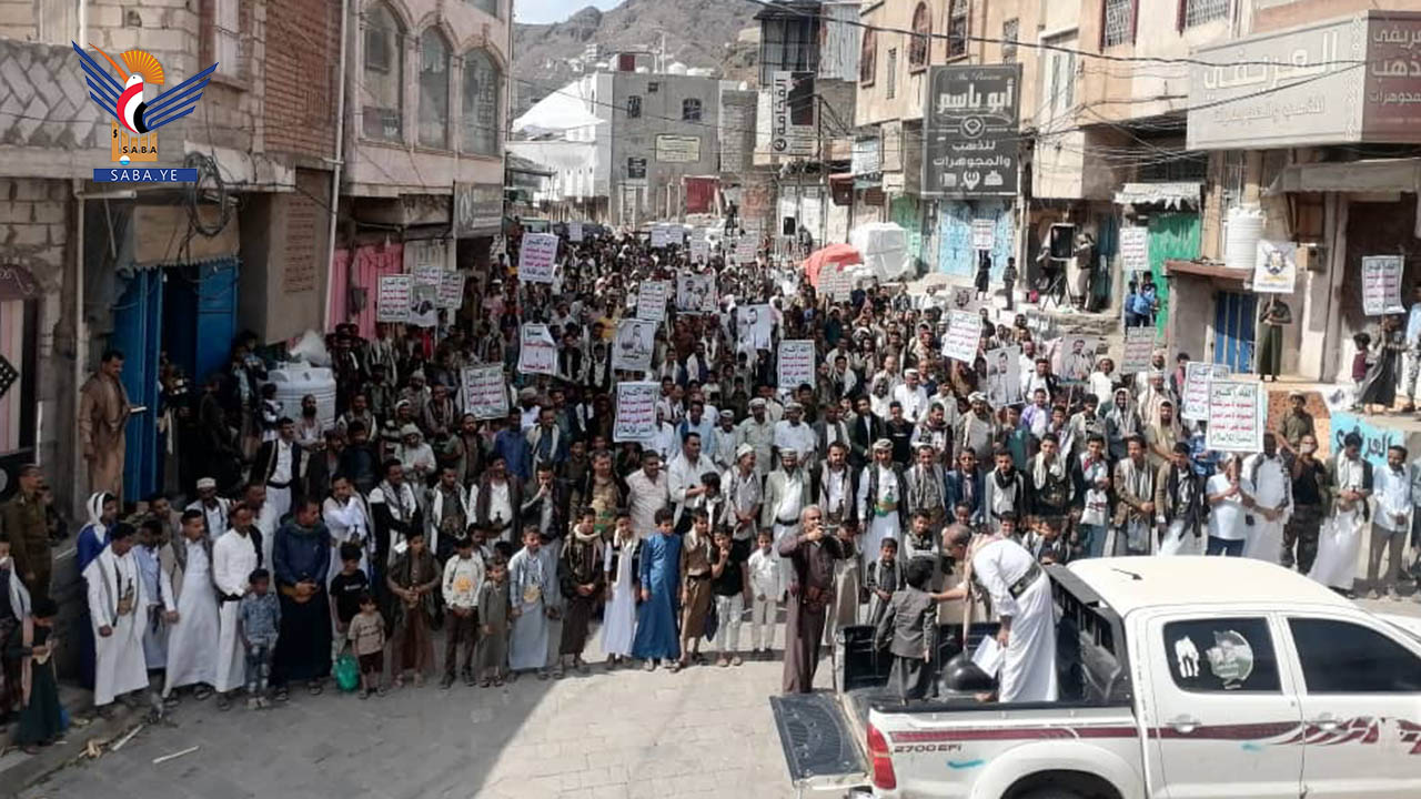 وأشاروا خلال المسيرات التي تقدمها في مركز المحافظة القائم بأعمال المحافظ أحمد المساوى وعضو مجلس الشورى طه حميد، وقيادات محلية وتنفيذية وشخصيات اجتماعية إلى أن اليمن قيادة وشعبا وجيشا وقف في مواجهة مباشرة مع أمريكا والكيان الصهيوني وفرض معادلة جديدة في المنطقة.