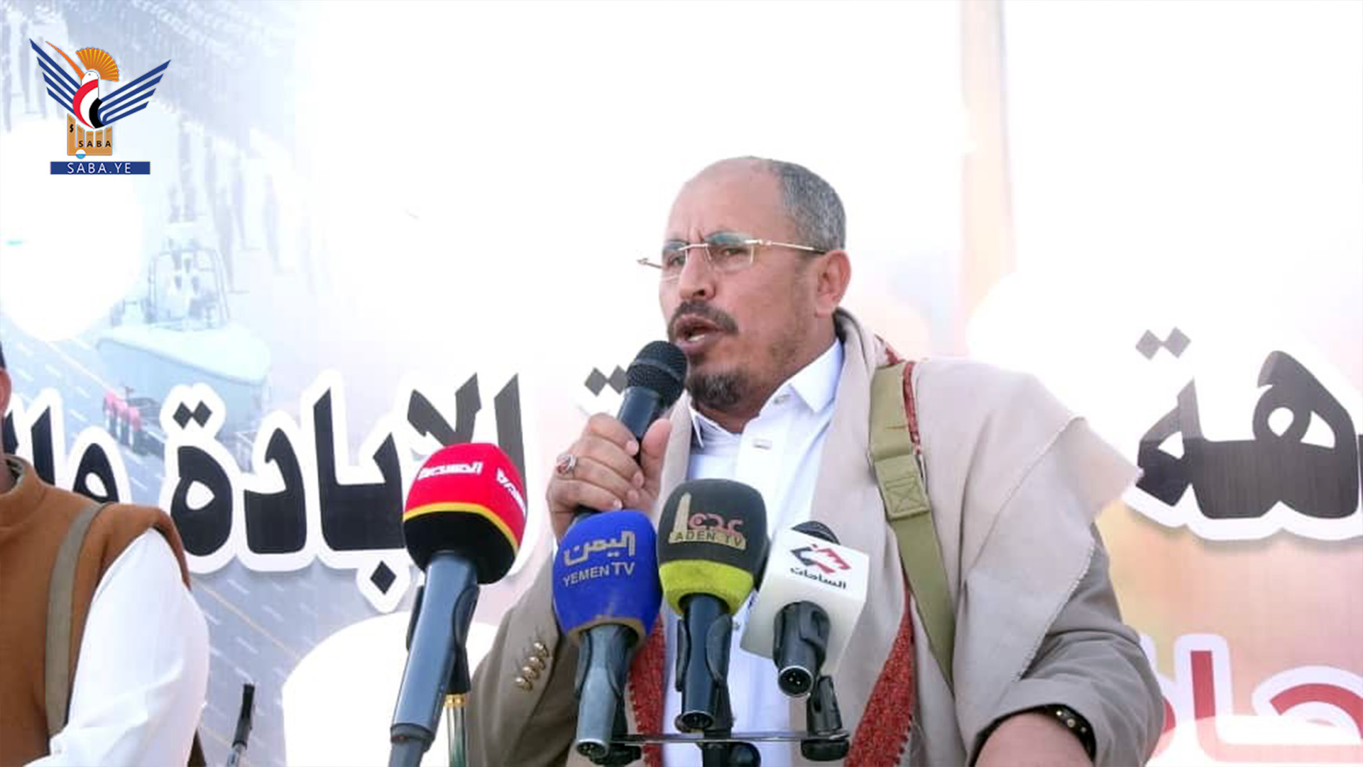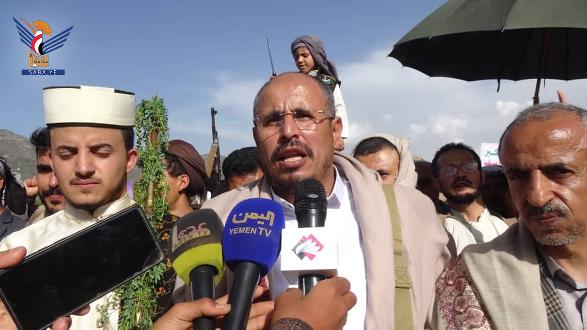 وفي المسيرة حيا عضو المكتب السياسي لأنصار الله الشامي، الحشود الجماهيرية الغفيرة في ساحات محافظة إب والتي تعبر عن عظمة شعب يأبى الانكسار ويرفض الخنوع والاستكانة لدول الطغيان، ويناصر المستضعفين من أبناء الأمة بشجاعة وإيمان وثبات.