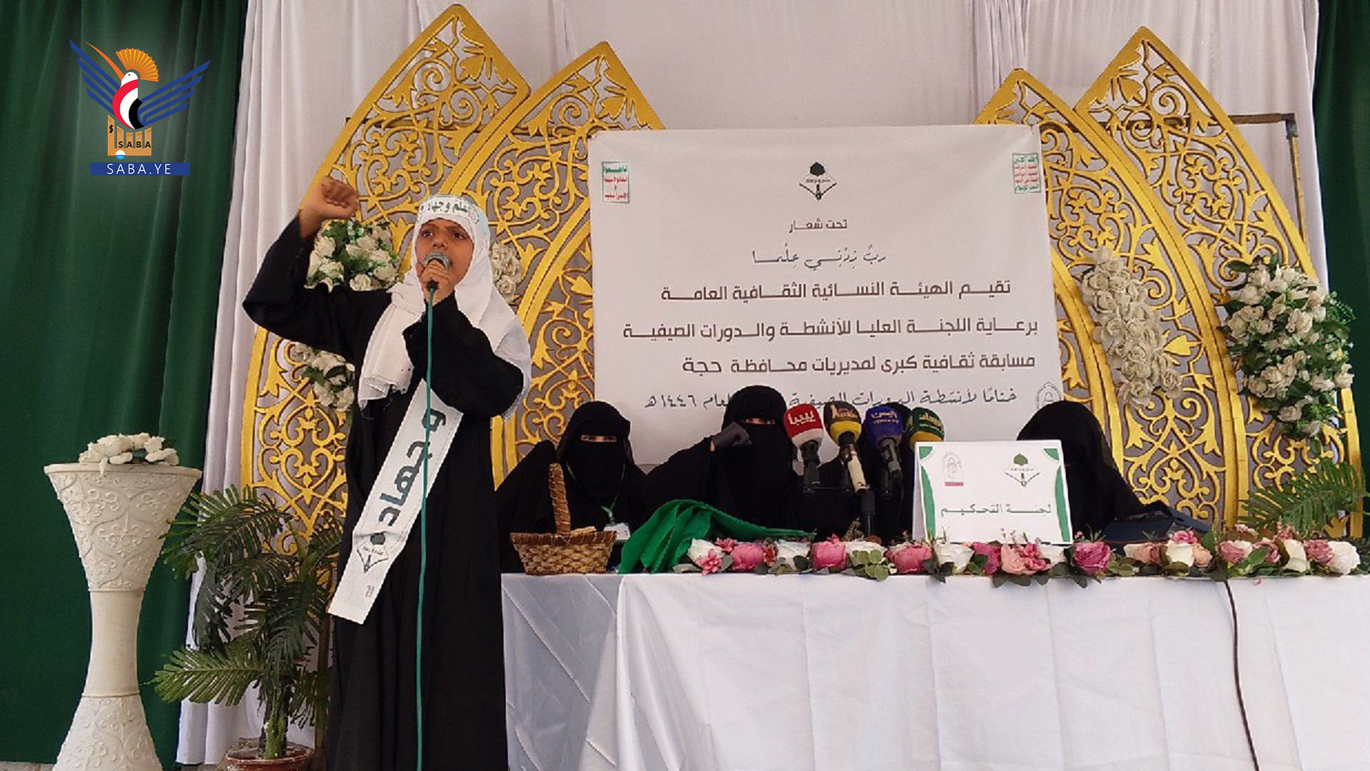 اختتمت الهيئة النسائية في محافظة حجة، الدورات الصيفية للبنات للعام 1446 هـ بمسابقة ثقافية على مستوى مديريات المحافظة.