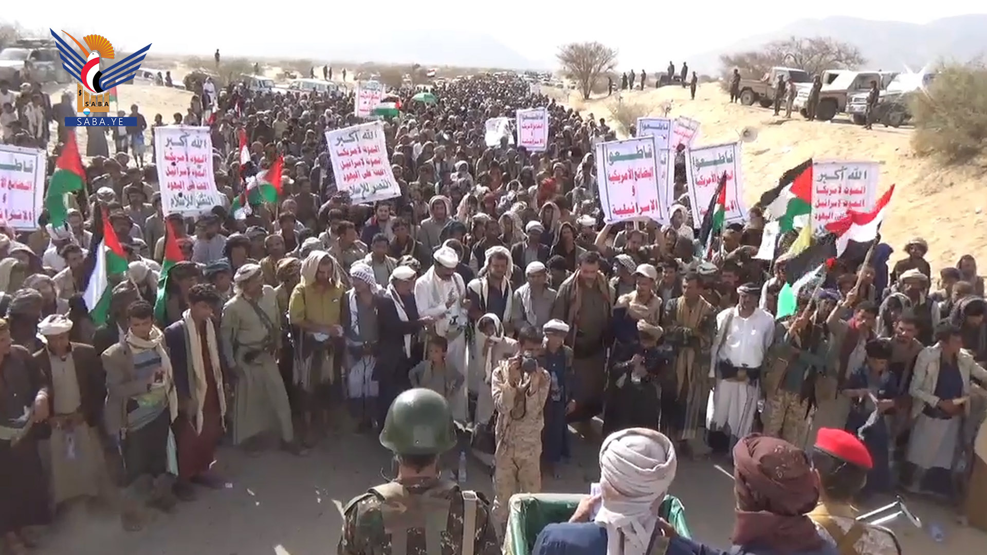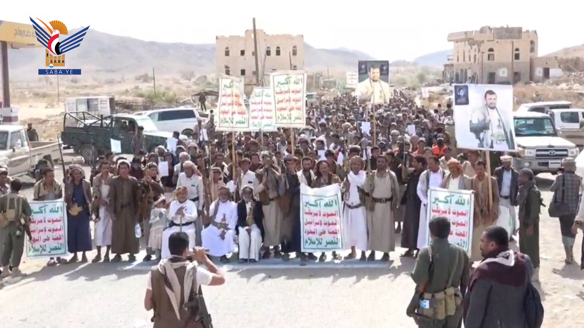 وشهدت ساحات قانية والعمود وجبل مراد ورحبة مسيرات، أكد المشاركون فيها الاستمرار في تكثيف أنشطة التعبئة والحشد لرفد الجبهات بالمال والرجال ومقاطعة المنتجات الأمريكية والإسرائيلية.