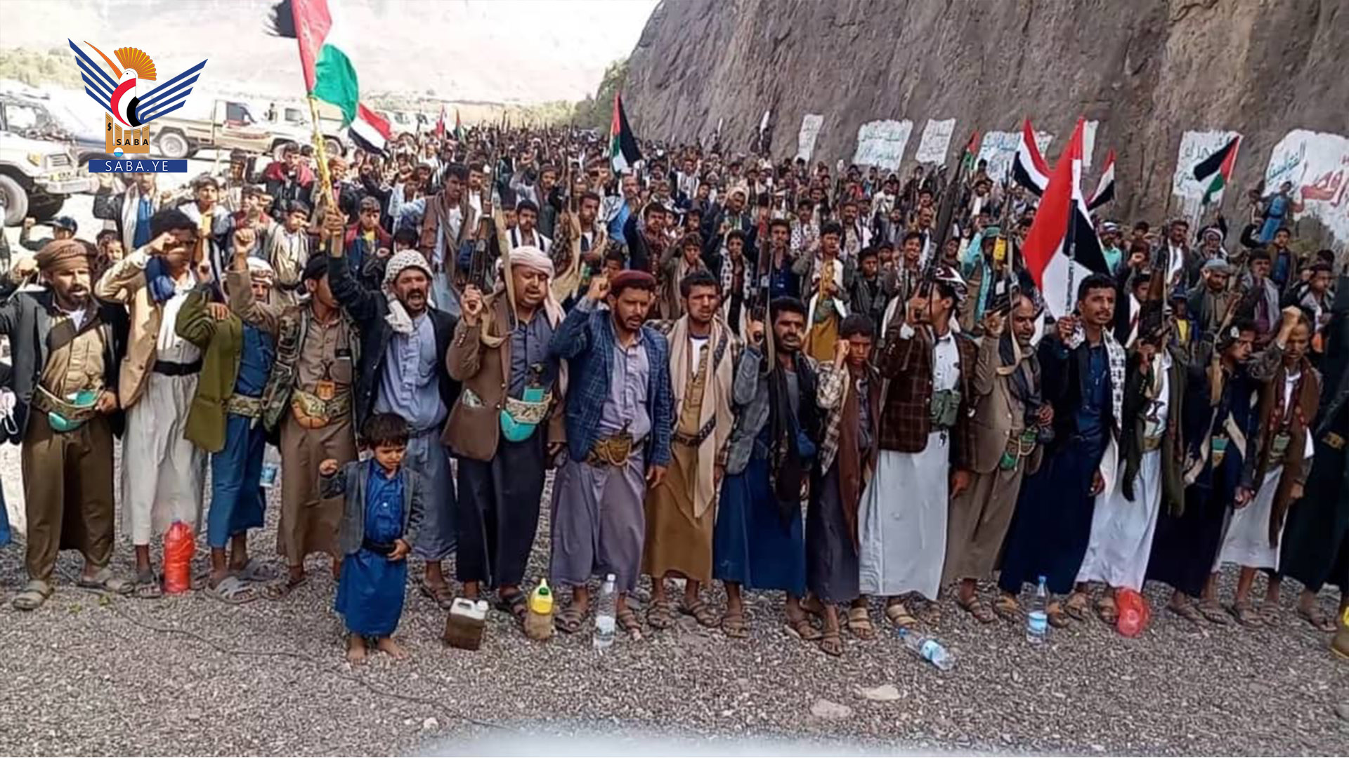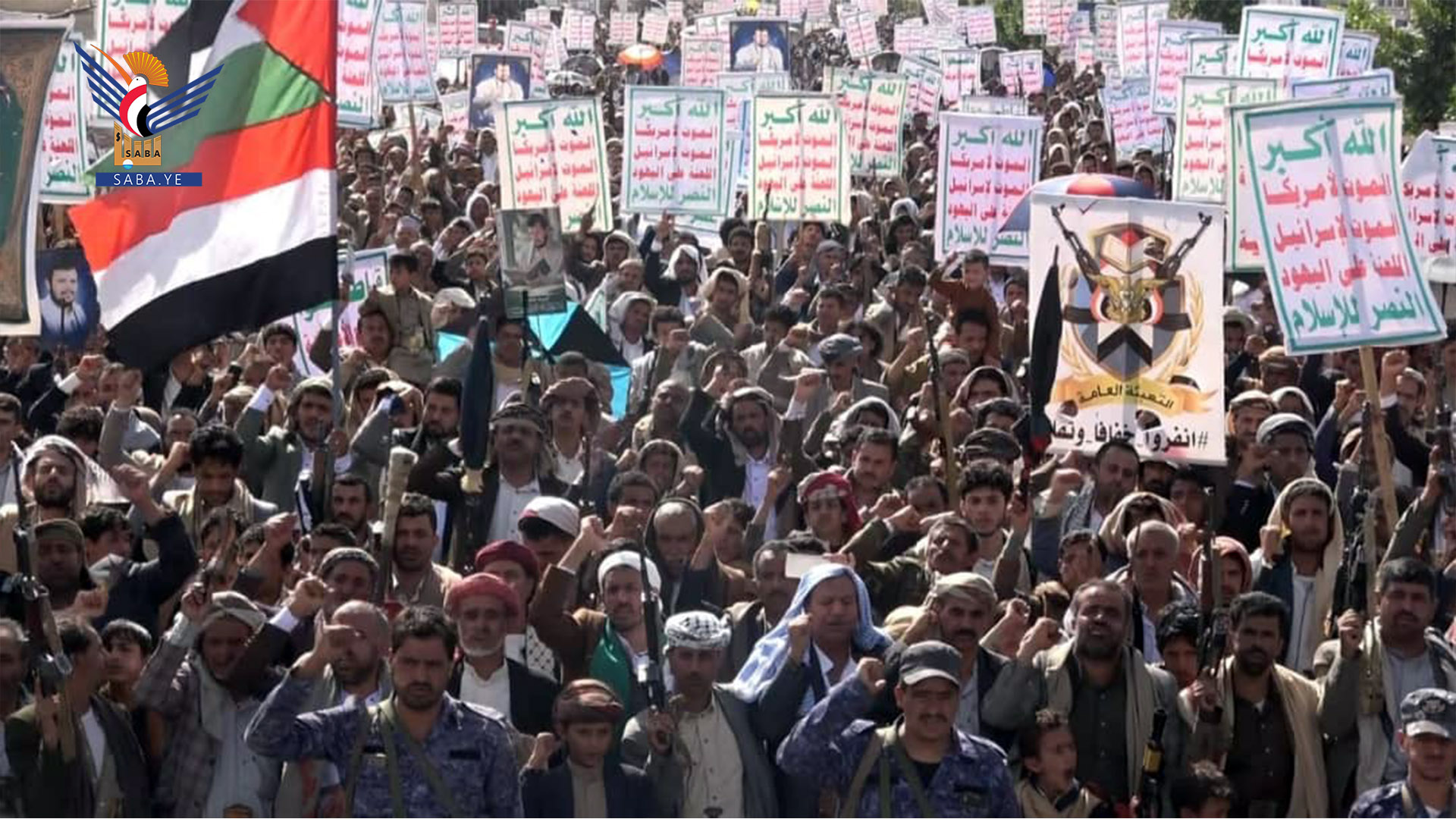 ورددت الحشود في المسيرات التي تقدمها محافظ المحافظة الدكتور فيصل جعمان، وعضو المكتب السياسي لأنصار الله ضيف الله الشامي، ومسؤول التعبئة العامة سجاد حمزة ووكلاء المحافظة والقيادات المحلية والشخصيات الاجتماعية الشعارات المنددة باستمرار العدو الصهيوني في ارتكاب الجرائم المروعة في غزة.. مؤكدة الاستمرار في التحشيد والتعبئة وتعزيز الجاهزية للتصدي للعدو.