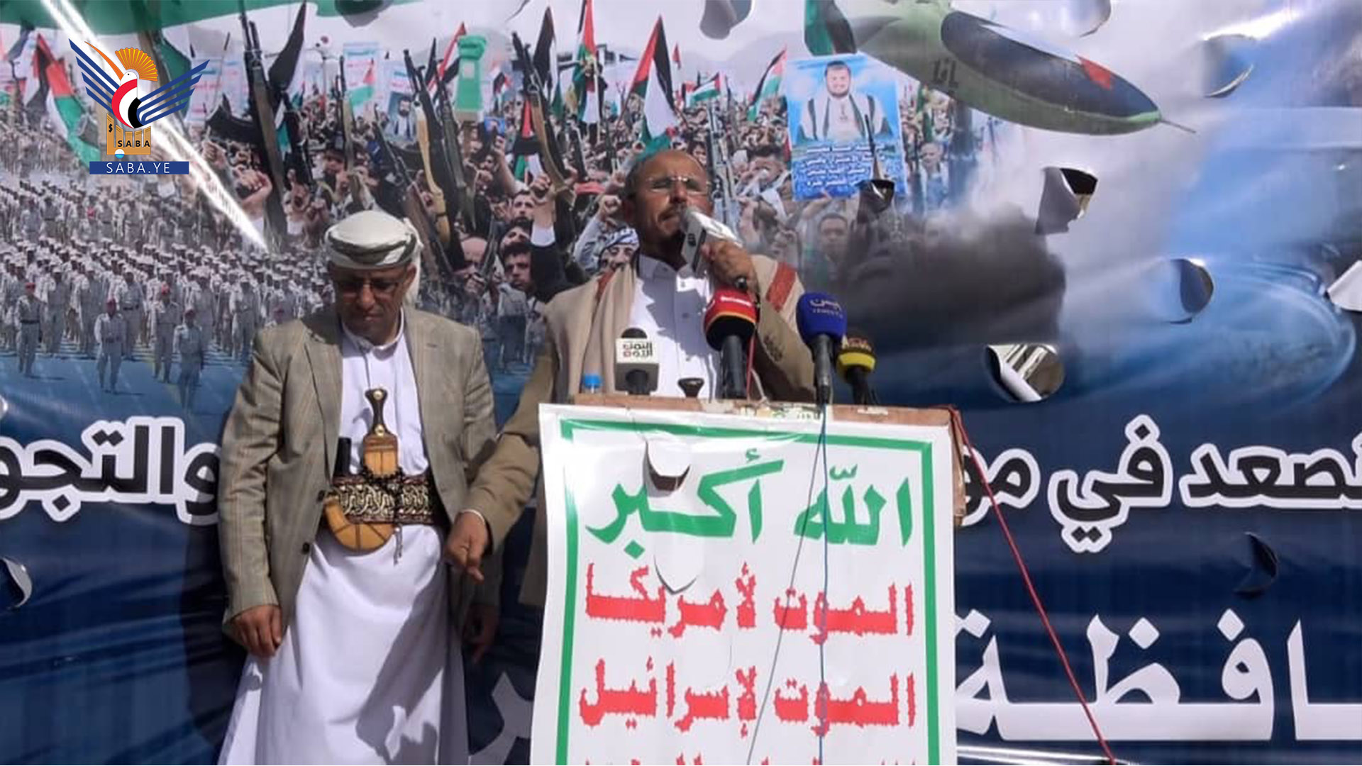 وفي المسيرة بمركز المحافظة أشار عضو المكتب السياسي لأنصار الله ضيف الله الشامي إلى أن خروج أبناء الشعب اليمني في المسيرات كل جمعة رغم كل ما يعانون من حصار وعدوان هو تأكيد على تمسك هذا الشعب بهويته الإيمانية في نصرة المظلومين.