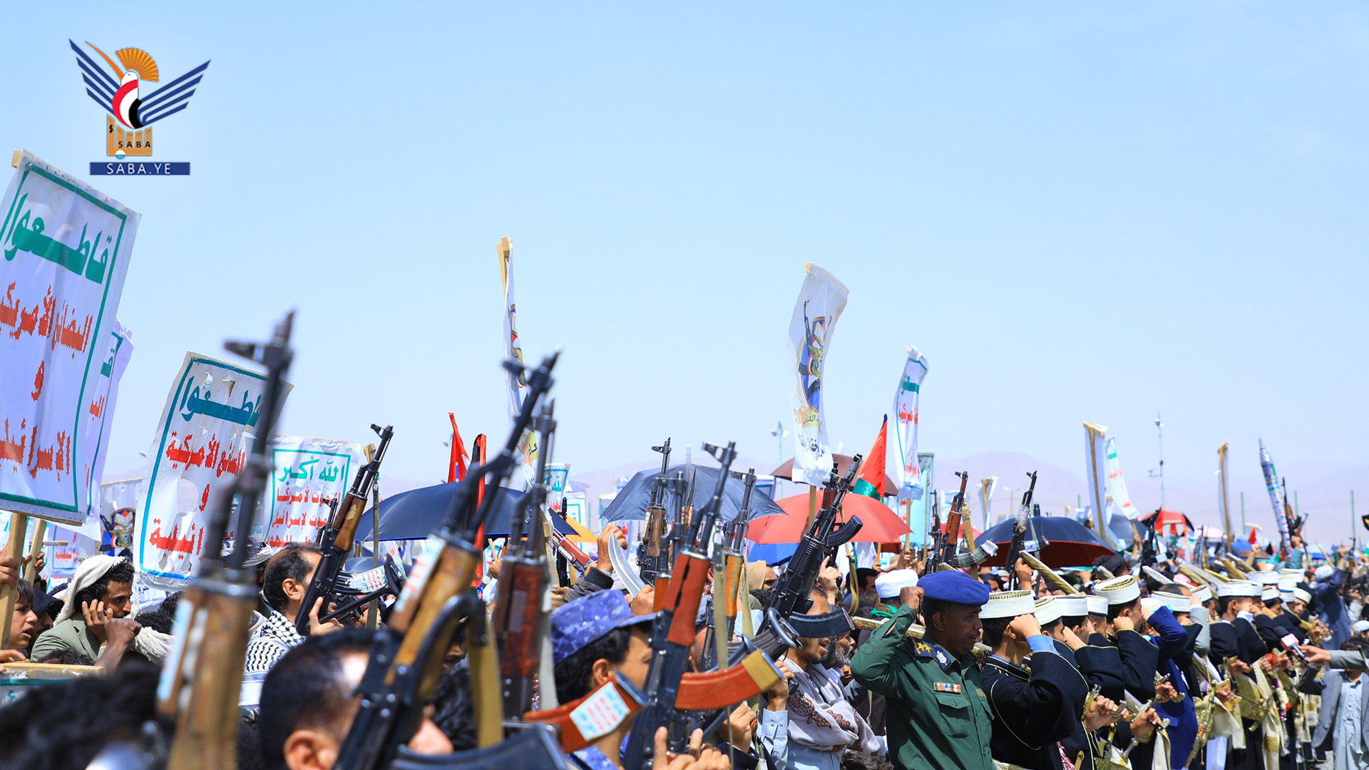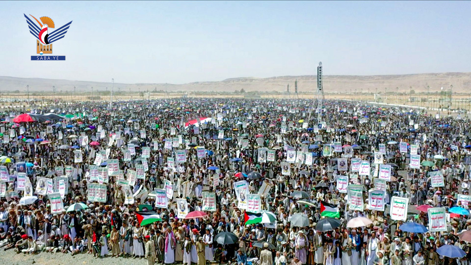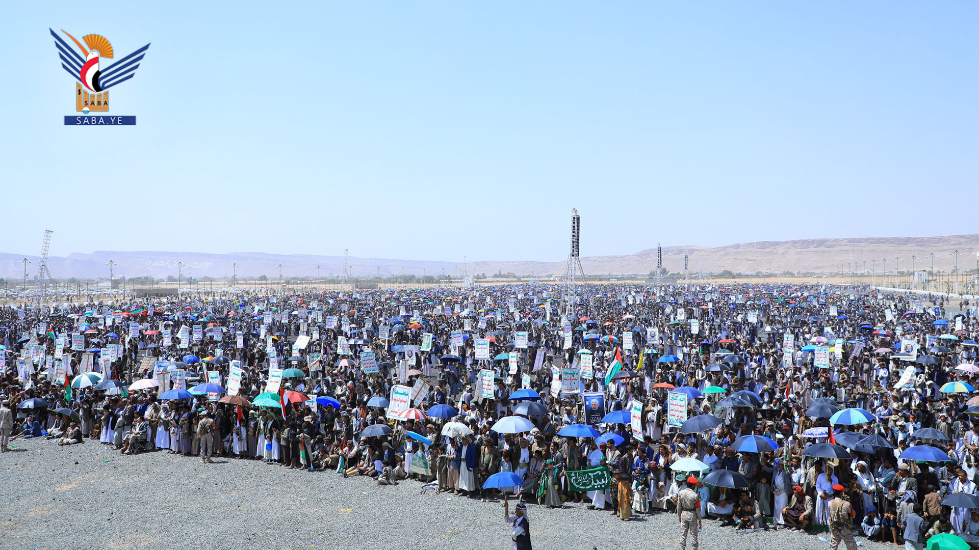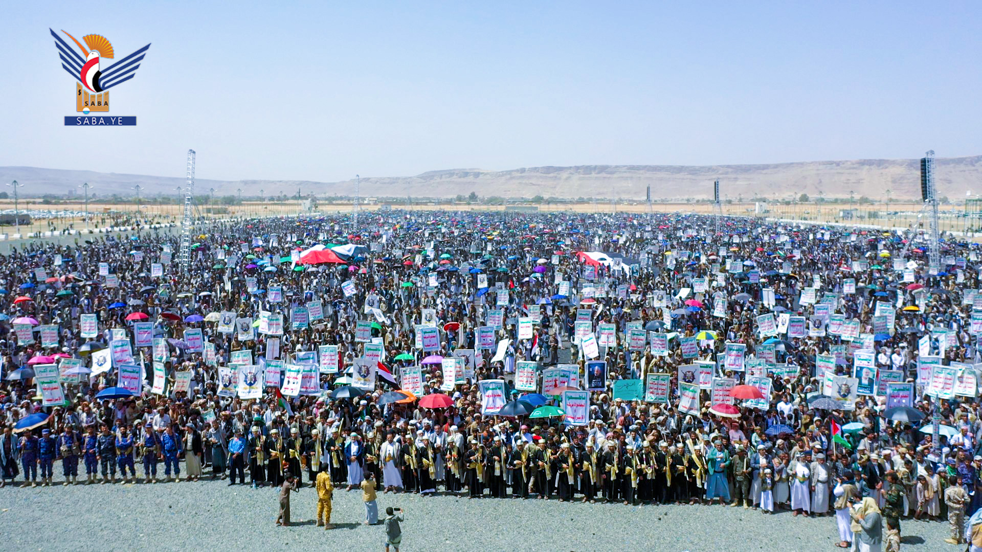 وفي المسيرات الحاشدة التي خرجت بساحة المولد النبوي الشريف بمركز المحافظة، وساحة الشهيد القائد بخولان عامر، وساحات عرو وجمعة بني بحر، وذويب بحيدان، وشعارة والحجلة وبني صياح وبنلقم برازح، وربوع الحدود ومدينة جاوي وبني عباد وولد عمر في مجز، والجرشة بغمر، ومركز مديرية قطابر والجفرة وعضلة، والسهلين والحجر في آل سالم، والخميس وآل مقنع ونيد البارق في منبه، وشدا، ومركز مديرية كتاف وأملح والعقيق، ويسنم في باقم، وعزلتي الرحمانين وبقامة في غمر، وغافرة ووادي ليه وبني سعد ووالبه وبني ذهل وقيس والعوشة في مديرية الظاهر، ومذاب في الصفراء، جدد المشاركون التفويض لقائد الثورة والقوات المسلحة للتصعيد ضد العدو الصهيوني الذي يدنس المقدسات الإسلامية ويستمر في جريمة الإبادة في غزة.