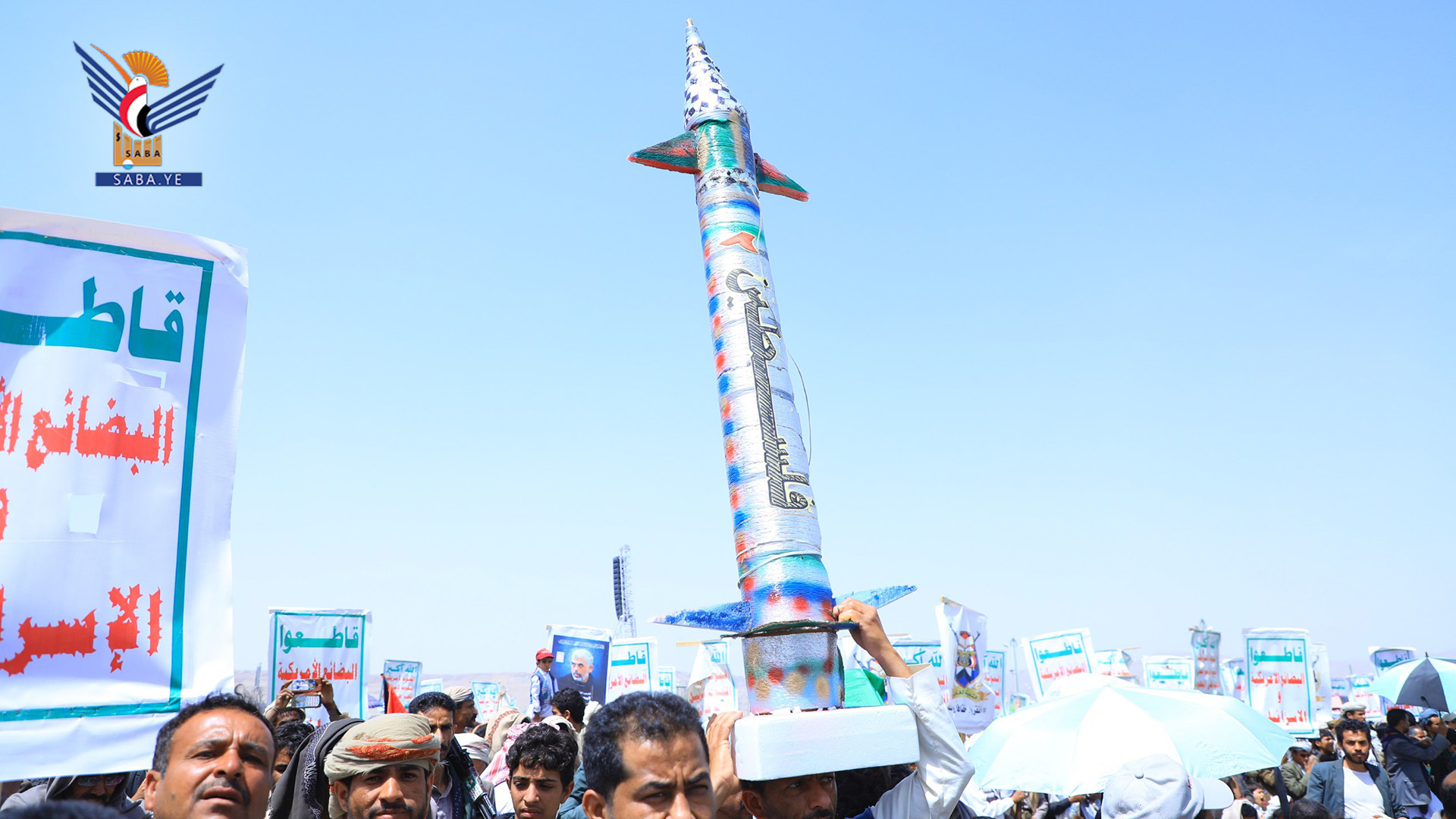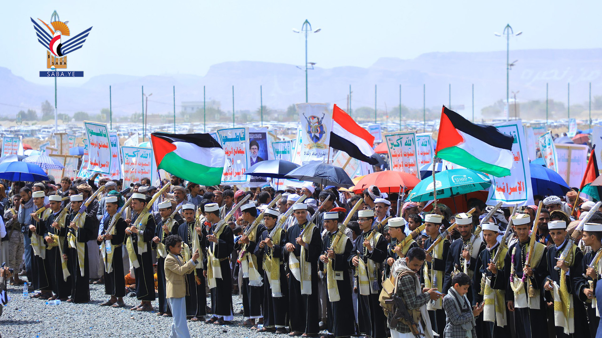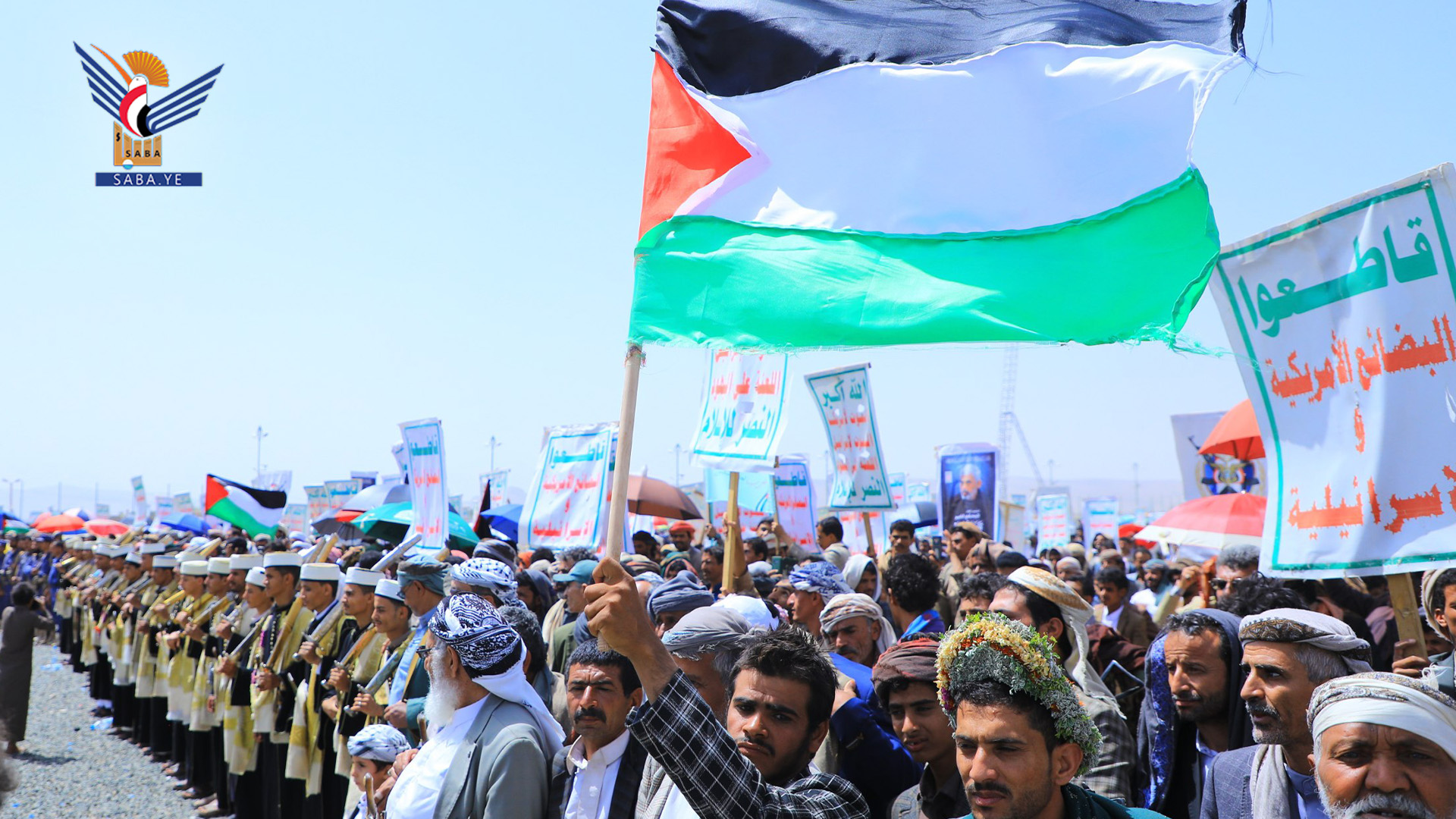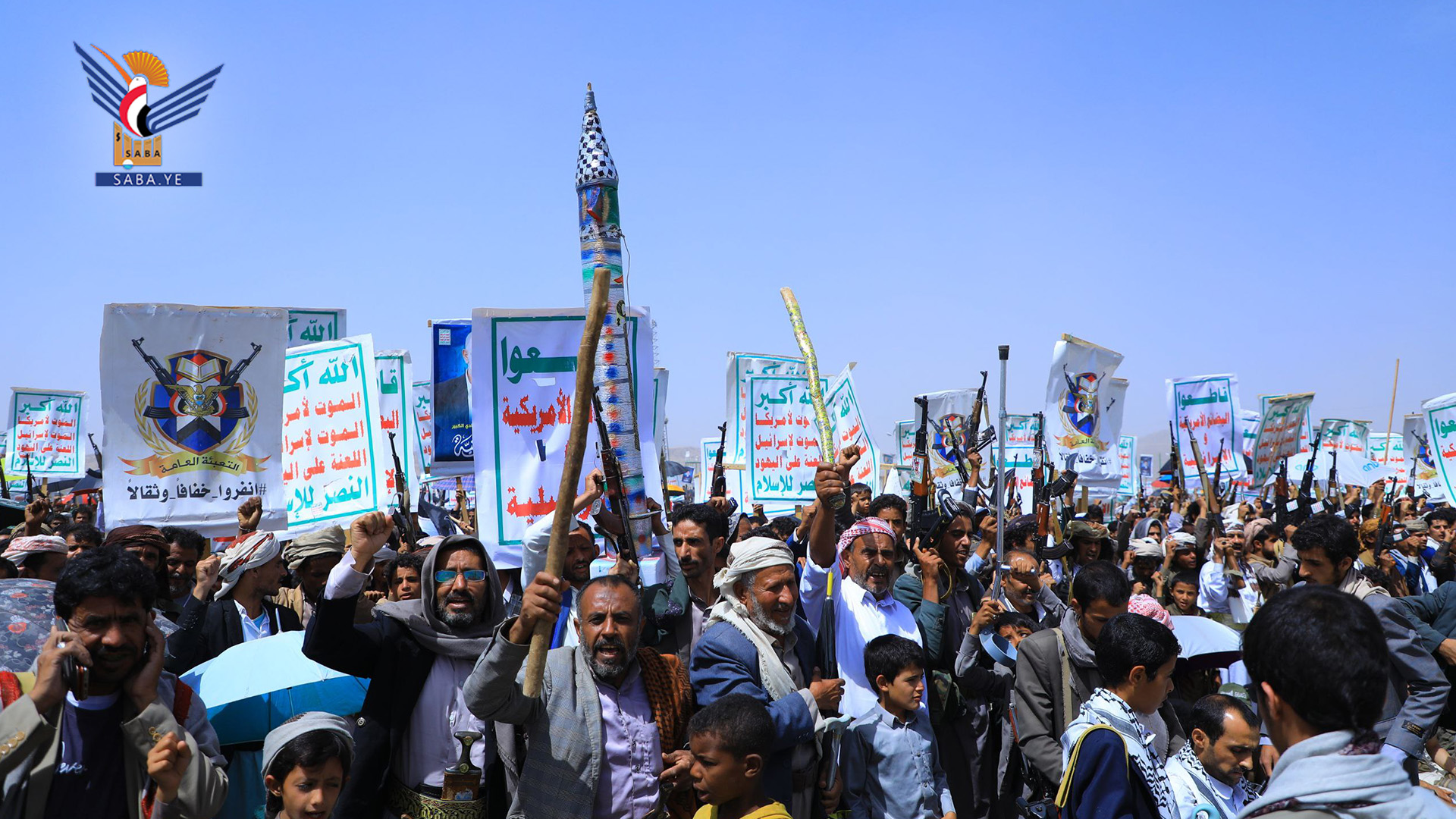 وفي المسيرات الحاشدة التي خرجت بساحة المولد النبوي الشريف بمركز المحافظة، وساحة الشهيد القائد بخولان عامر، وساحات عرو وجمعة بني بحر، وذويب بحيدان، وشعارة والحجلة وبني صياح وبنلقم برازح، وربوع الحدود ومدينة جاوي وبني عباد وولد عمر في مجز، والجرشة بغمر، ومركز مديرية قطابر والجفرة وعضلة، والسهلين والحجر في آل سالم، والخميس وآل مقنع ونيد البارق في منبه، وشدا، ومركز مديرية كتاف وأملح والعقيق، ويسنم في باقم، وعزلتي الرحمانين وبقامة في غمر، وغافرة ووادي ليه وبني سعد ووالبه وبني ذهل وقيس والعوشة في مديرية الظاهر، ومذاب في الصفراء، جدد المشاركون التفويض لقائد الثورة والقوات المسلحة للتصعيد ضد العدو الصهيوني الذي يدنس المقدسات الإسلامية ويستمر في جريمة الإبادة في غزة.