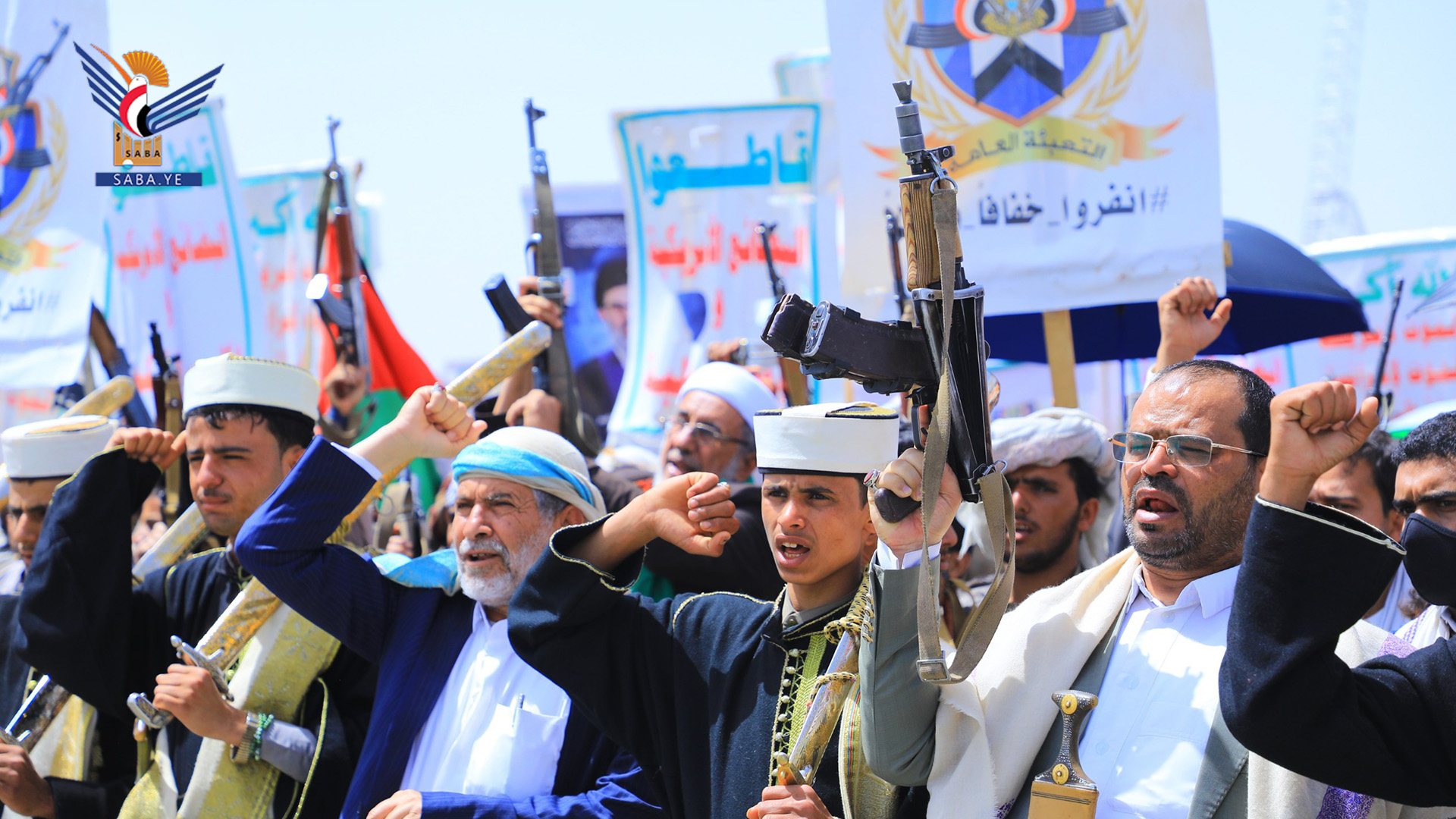 ونددت الحشود بتدنيس آلاف اليهود للمسجد الأقصى، وإساءتهم لخاتم الأنبياء والمرسلين محمد صلى الله عليه وآله وسلم.