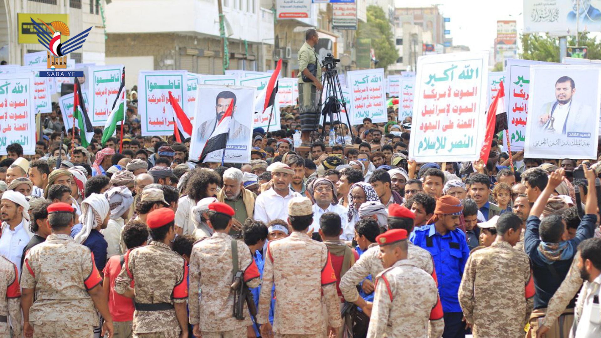 وحذرت حشود الحديدة من أن استمرار العدوان الصهيوني يضع المنطقة على حافة الانفجار، مؤكدة أن الشعب اليمني لن يقف مكتوف الأيدي إزاء التمادي الصهيوني، بل سيكون في مقدمة الصفوف لمواجهة هذا الغطرسة.