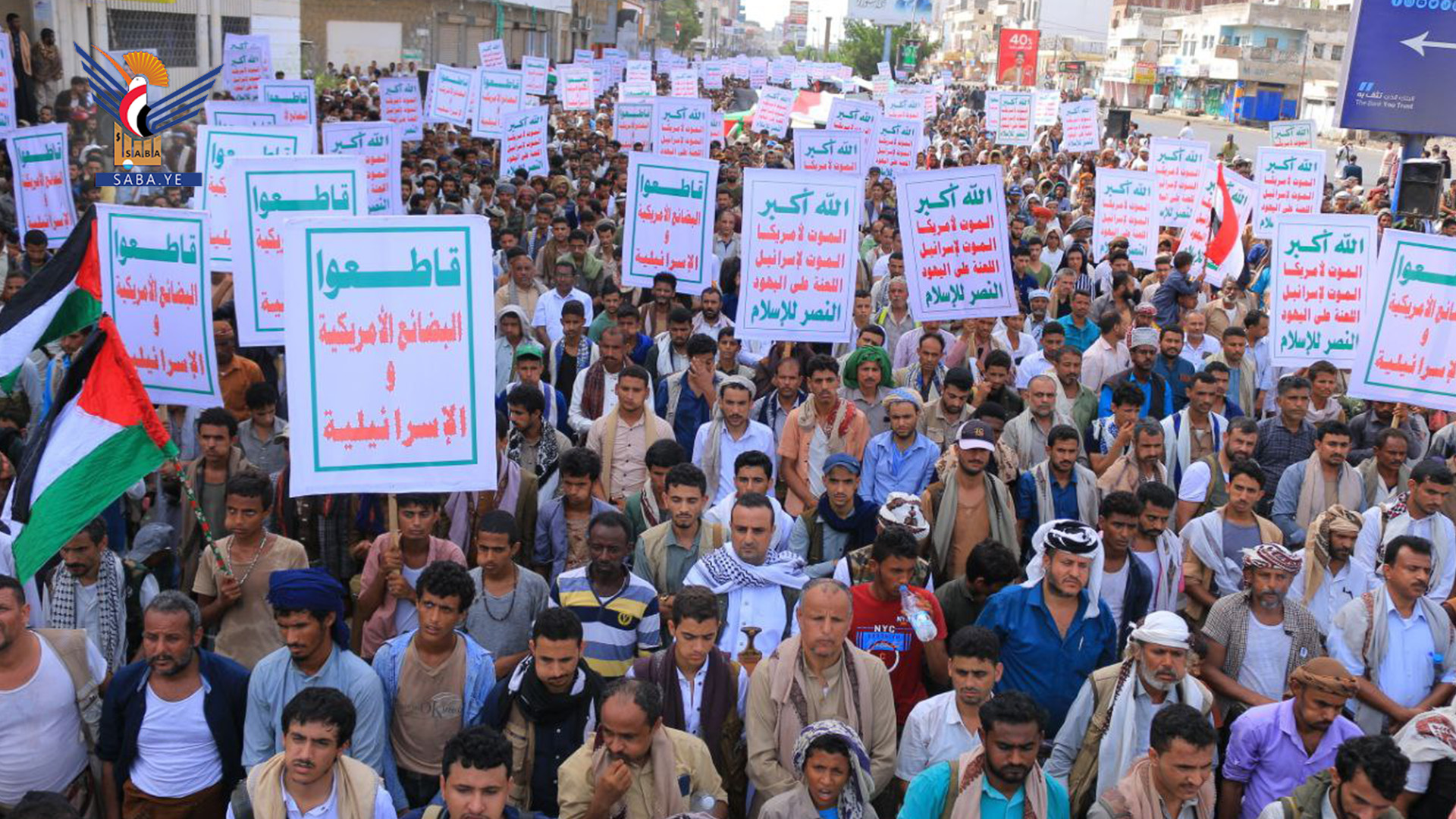 الحديدة تشهد مسيرات كبرى تحت شعار "لا أمن للكيان وغزة والأقصى تحت العدوان"