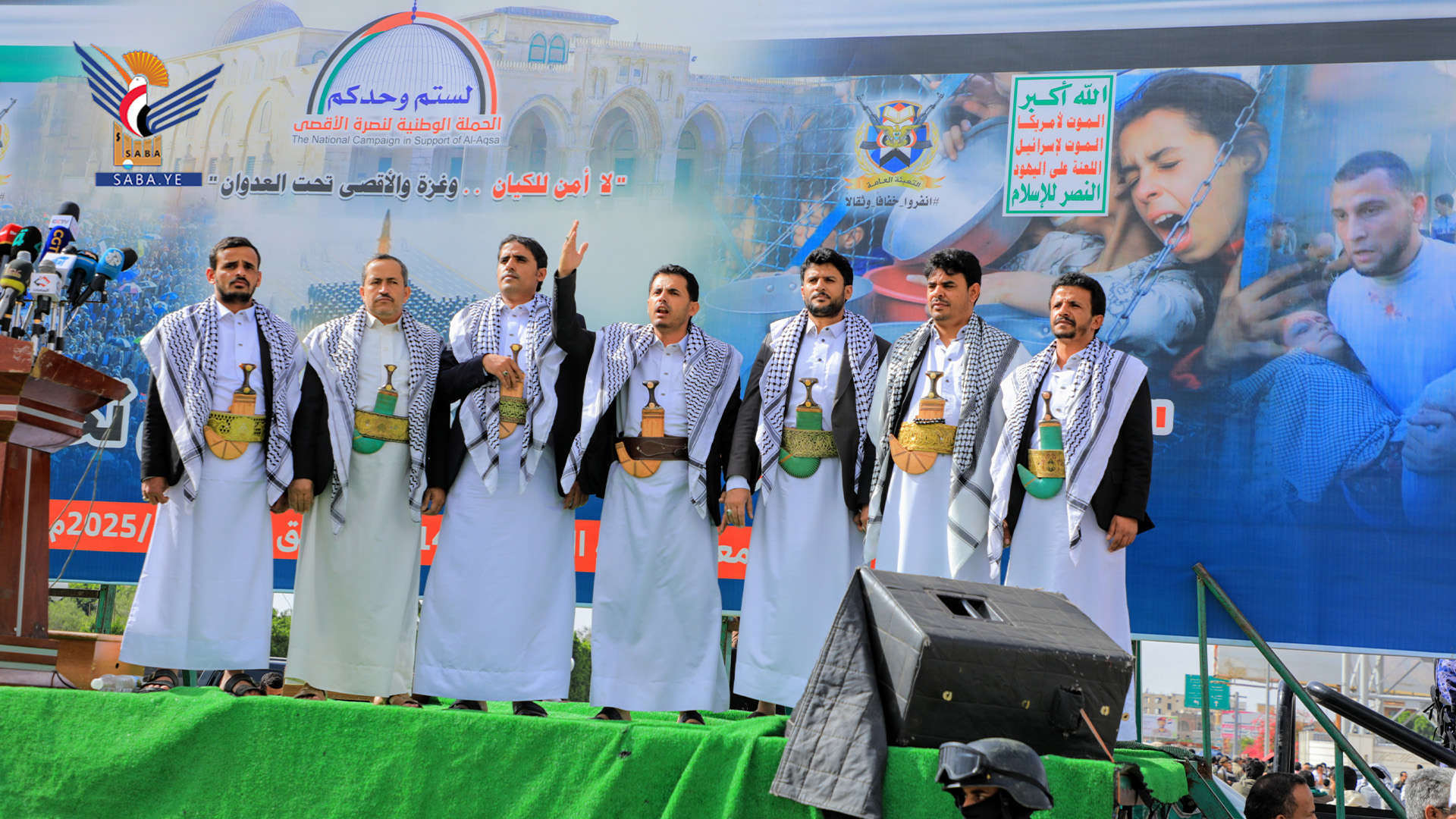 ونددت الحشود الجماهيرية بالاعتداءات الصهيونية المتكررة على المسجد الأقصى الشريف، والتي تستدعي من أبناء الأمة التحرك على كافة المستويات للتصدي لمخططات ومؤامرات العدو الصهيوني التي تستهدف مقدسات الأمة.