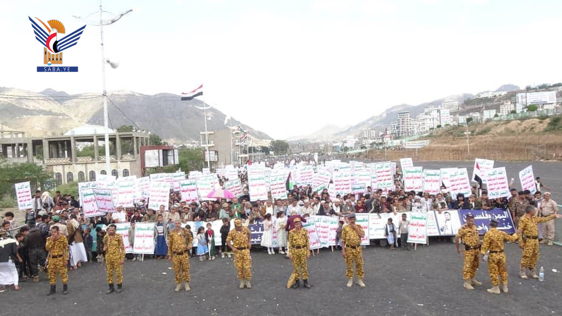 وأكد المشاركون، أن الخروج في مسيرات حاشدة بالمحافظة، يعبر عن وقوف الشعب اليمني وثبات موقفه المساند للشعب الفلسطيني.