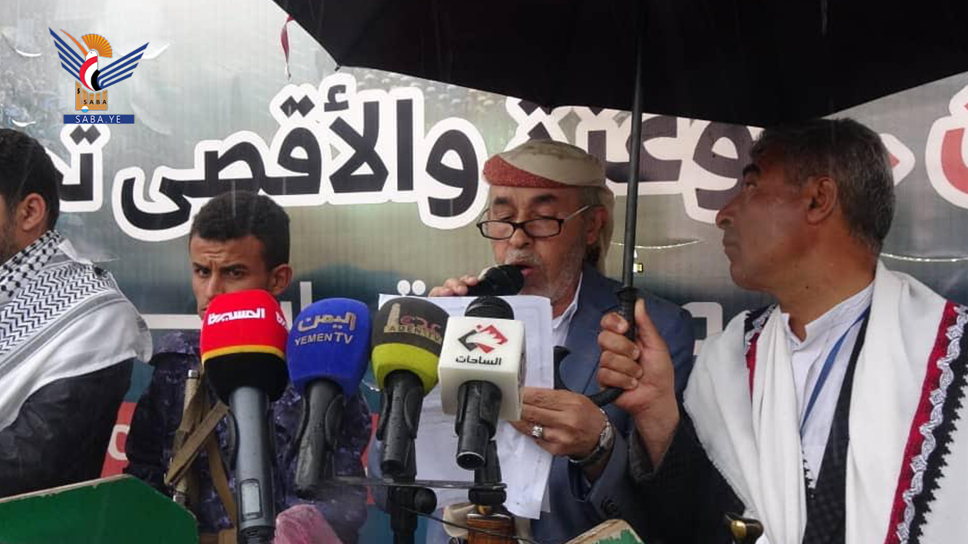 وأدان المشاركون في المسيرة بساحة الرسول الأعظم بمدينة إب، وسط أمطار غزيرة بحضور عدد من أعضاء مجلسي النواب والشورى ووكلاء المحافظة ومسؤول التعبئة، اقتحام ما يسمى بوزير الأمن القومي "الإسرائيلي" لباحات المسجد الأقصى، محذرين من تصعيد كيان العدو والذي سيقود إلى توسعة دائرة العنف والفوضى في المنطقة.