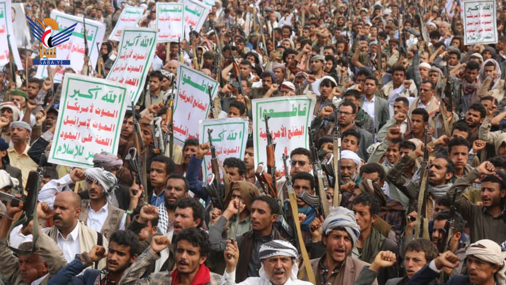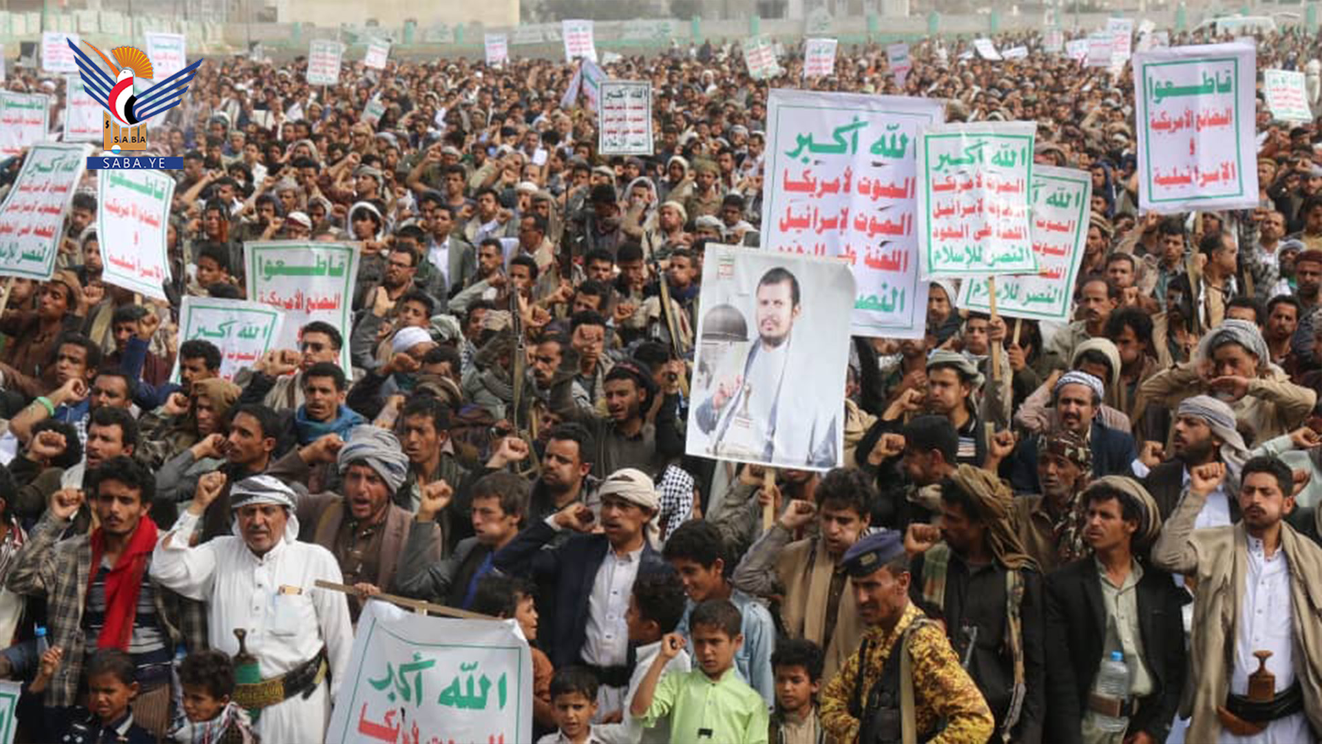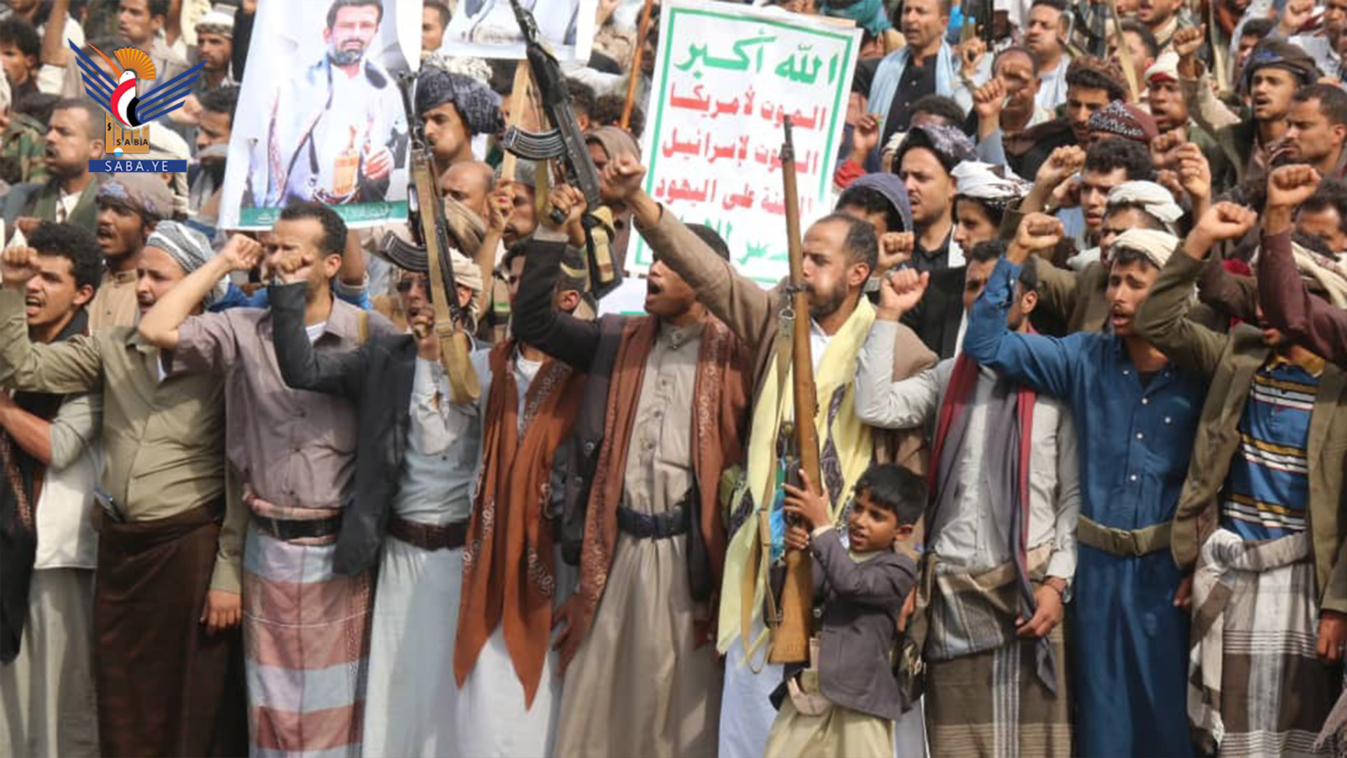 وعبرت الحشود عن التأييد والمباركة لعمليات القوات المسلحة المستمرة ضد الأهداف الحيوية للعدو الصهيوني، وما فرضته من حظر بحري وجوي على موانئ ومطارات العدو.. داعية شعوب الأمة إلى الخروج عن صمتها المخزي واتخاذ مواقف عملية لوقف جريمة الإبادة بغزة، والانتهاكات الصهيونية المستمرة لمقدسات المسلمين.