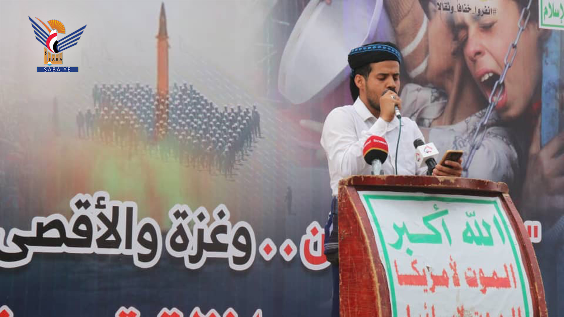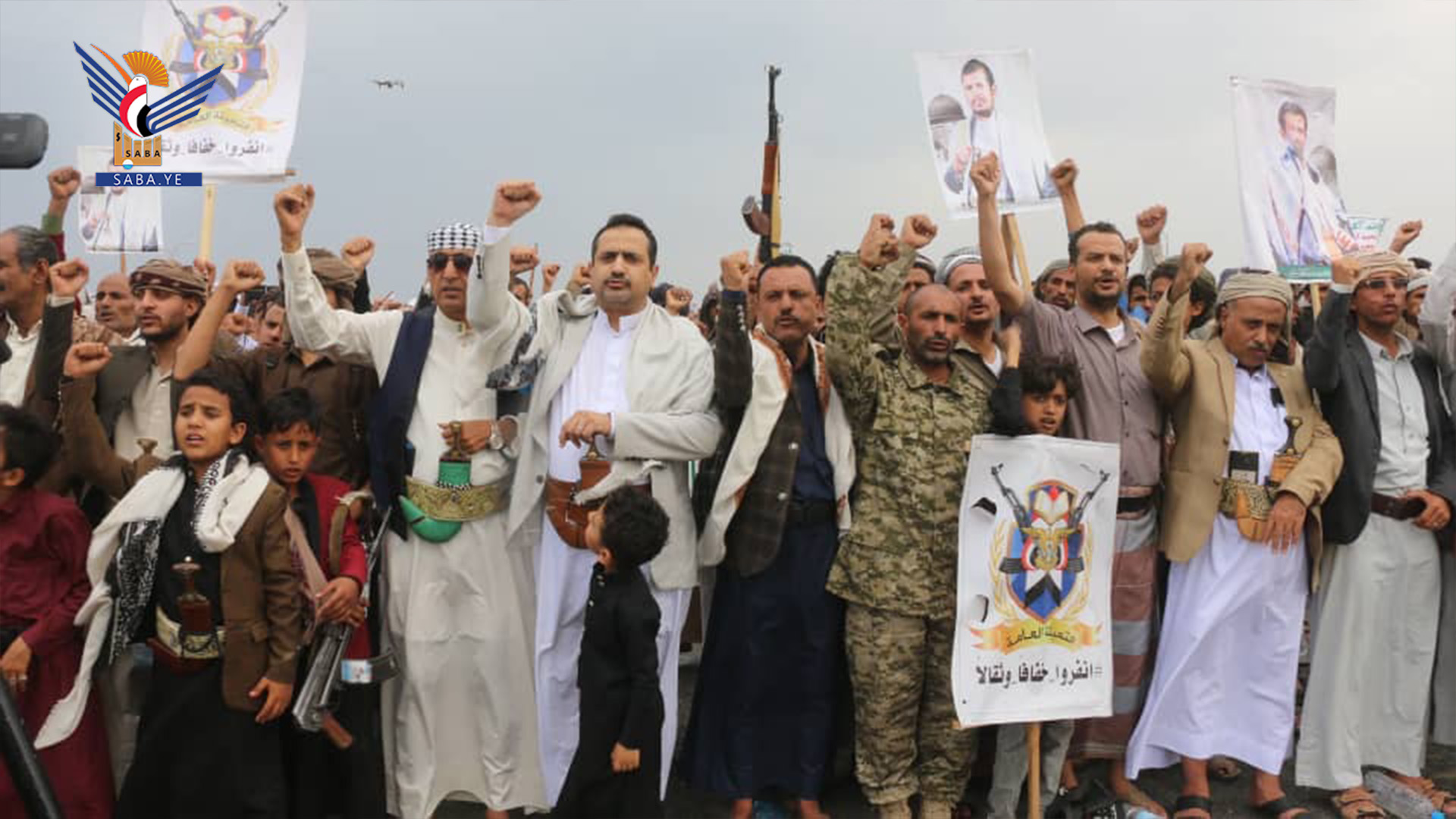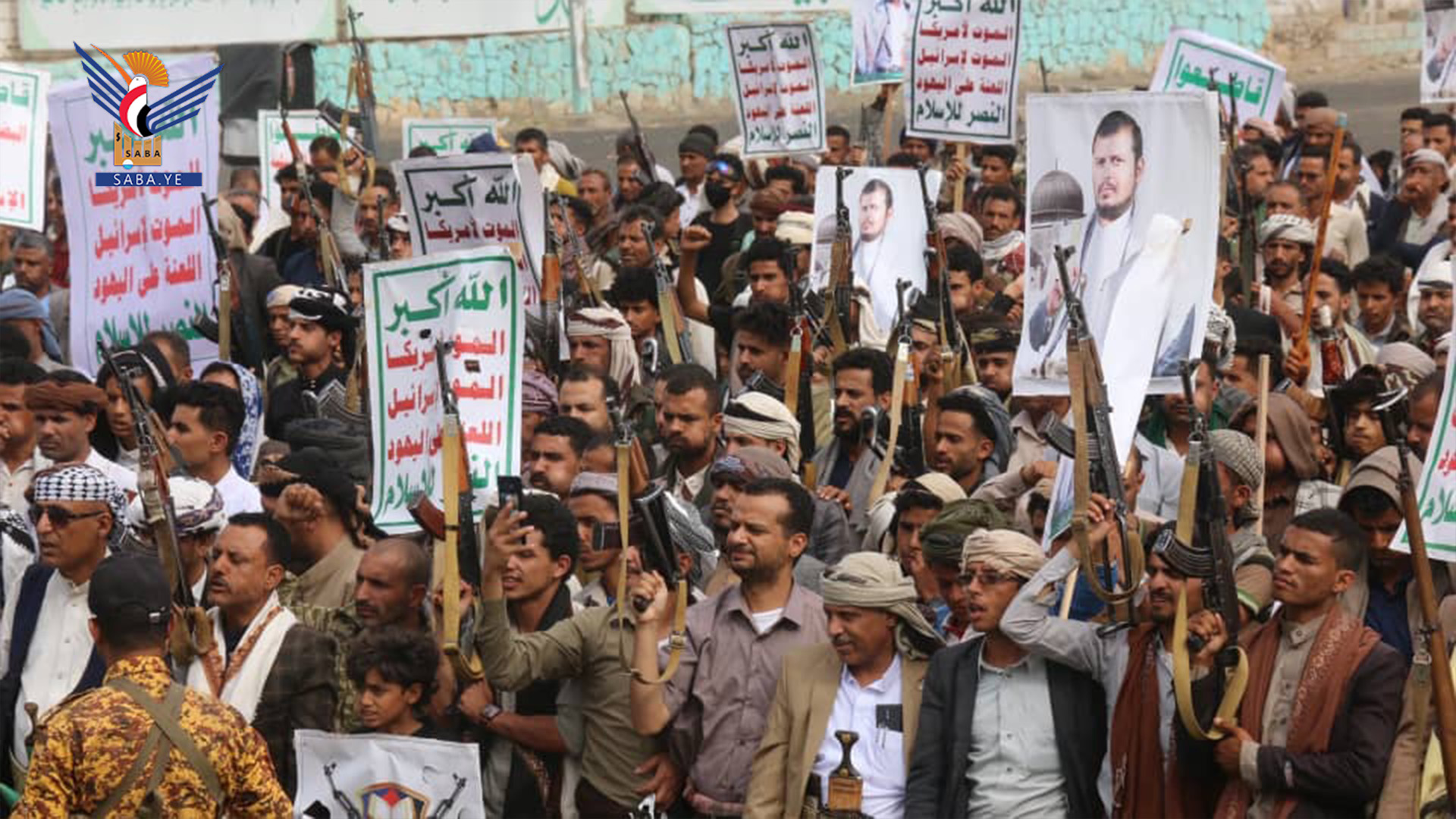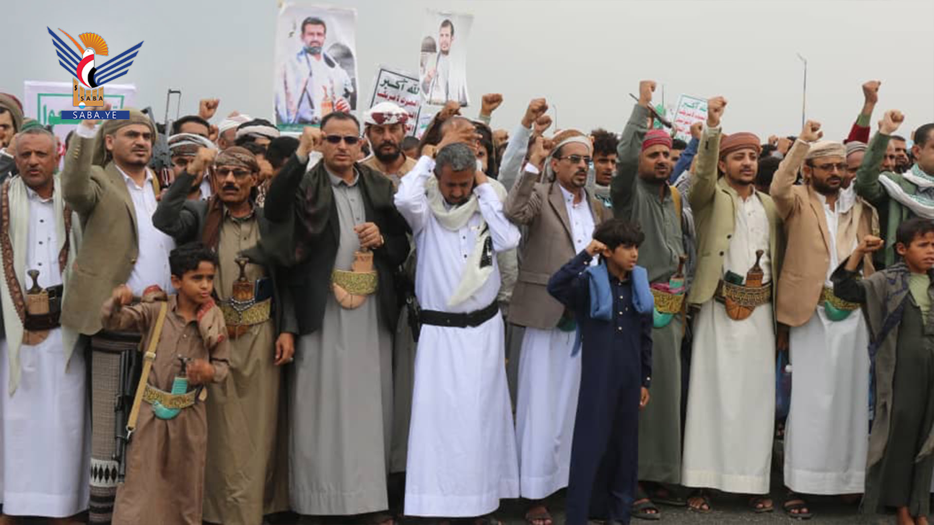 وعبرت الحشود عن التأييد والمباركة لعمليات القوات المسلحة المستمرة ضد الأهداف الحيوية للعدو الصهيوني، وما فرضته من حظر بحري وجوي على موانئ ومطارات العدو.. داعية شعوب الأمة إلى الخروج عن صمتها المخزي واتخاذ مواقف عملية لوقف جريمة الإبادة بغزة، والانتهاكات الصهيونية المستمرة لمقدسات المسلمين.