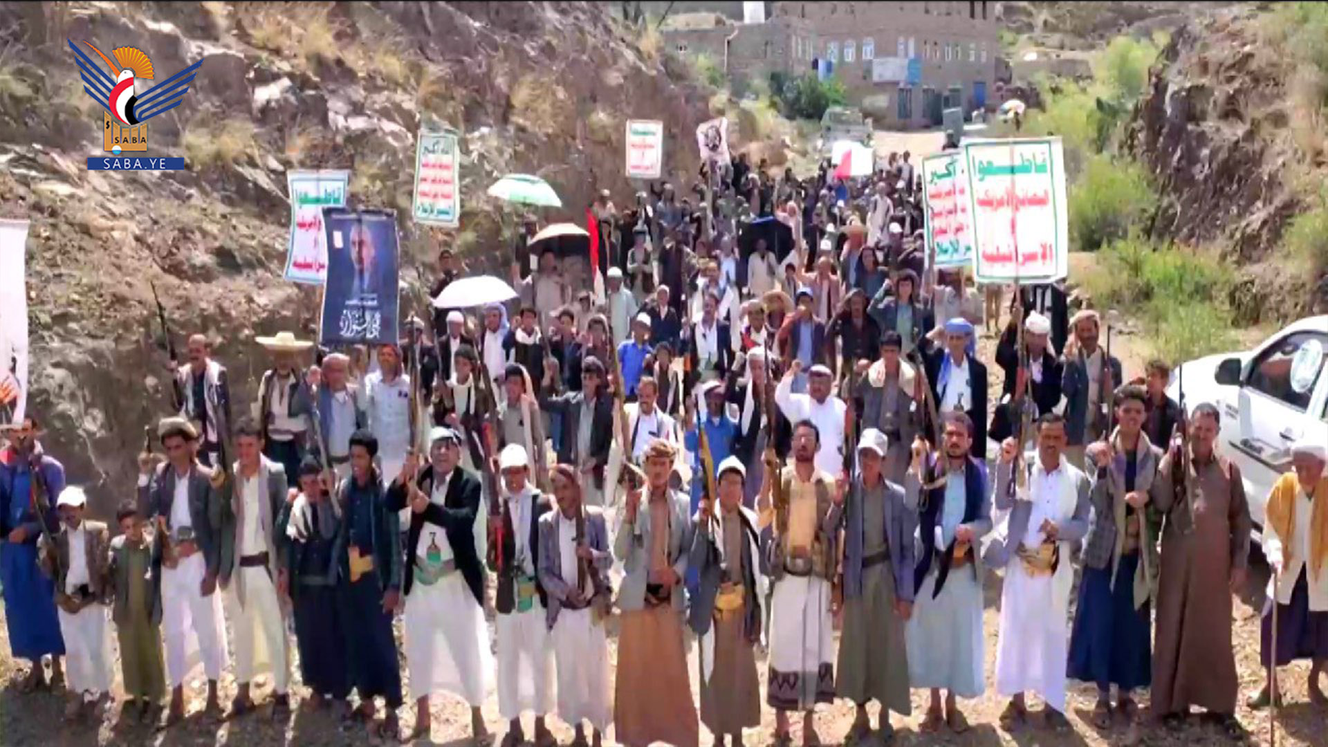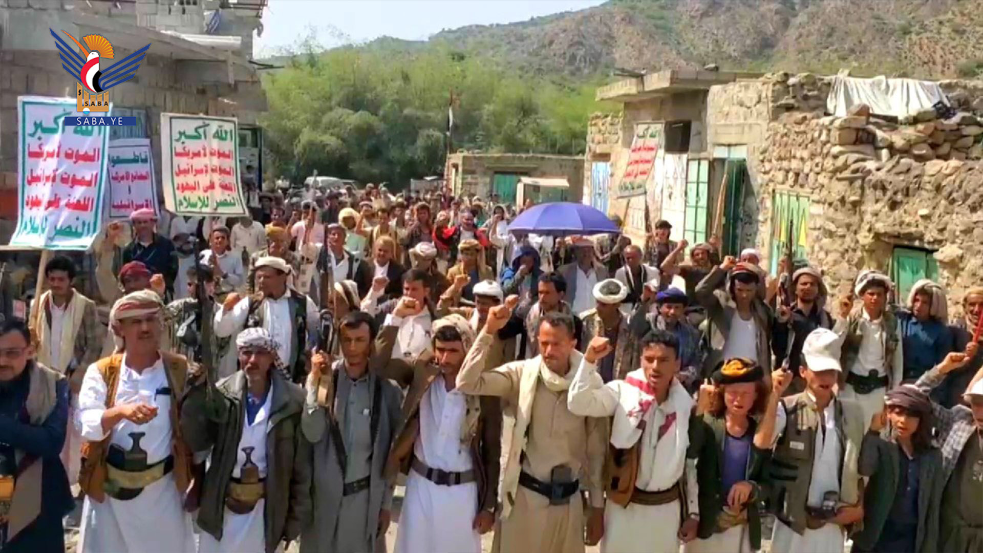 ورفع المشاركون في المسيرات بمركز المحافظة والمديريات، شعارات الحرية والولاء لله ورسوله صلى الله عليه وآله، مجددّين العهد لقائد الثورة السيد عبدالملك بدر الدين الحوثي بأنهم سيكونون حيثما يُطلب منهم في معركة العزة.. مؤكدين جاهزية كل أبناء عزل ومناطق المحافظة للالتحاق بالجبهات لمواجهة أعداء الوطن ونصرة الأشقاء في غزة.