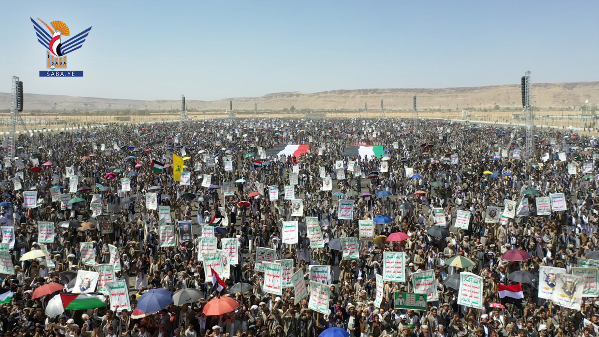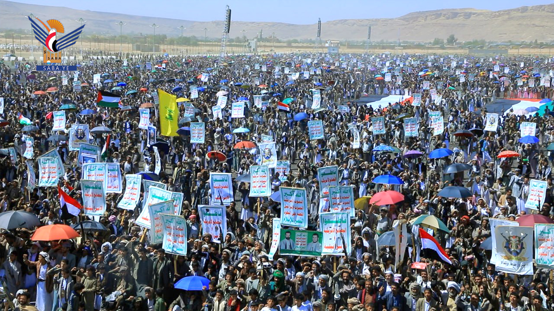 ورددت الحشود هتافات السخط والغضب على العدو الصهيوني والأمريكي لاستمرارهم في جريمة الإبادة والتجويع بحق أبناء غزة.. مستنكرين بشدة حالة التيه والعمى للأنظمة العربية والإسلامية تجاه المؤامرة الصهيونية التي تستهدف شعوب ومقدسات الأمة.