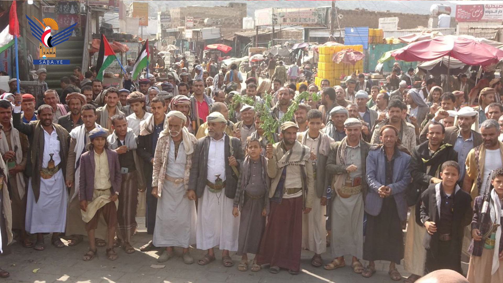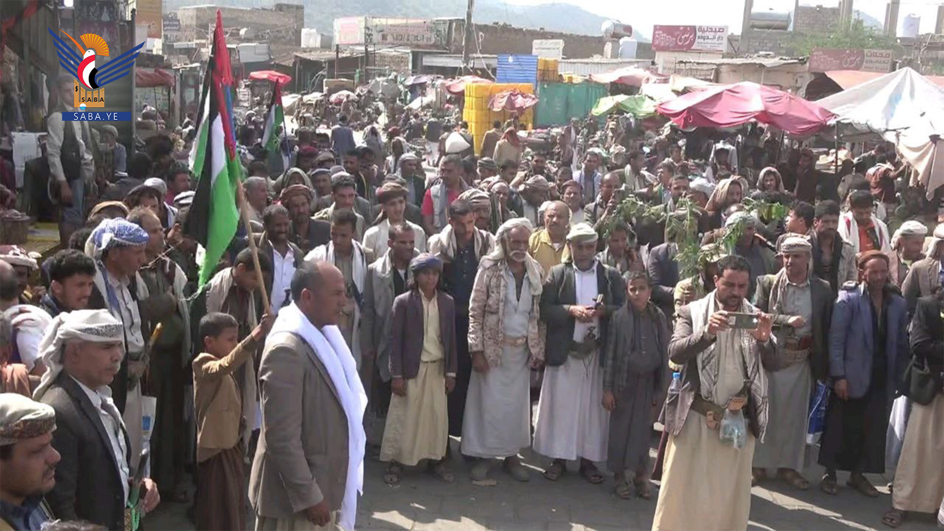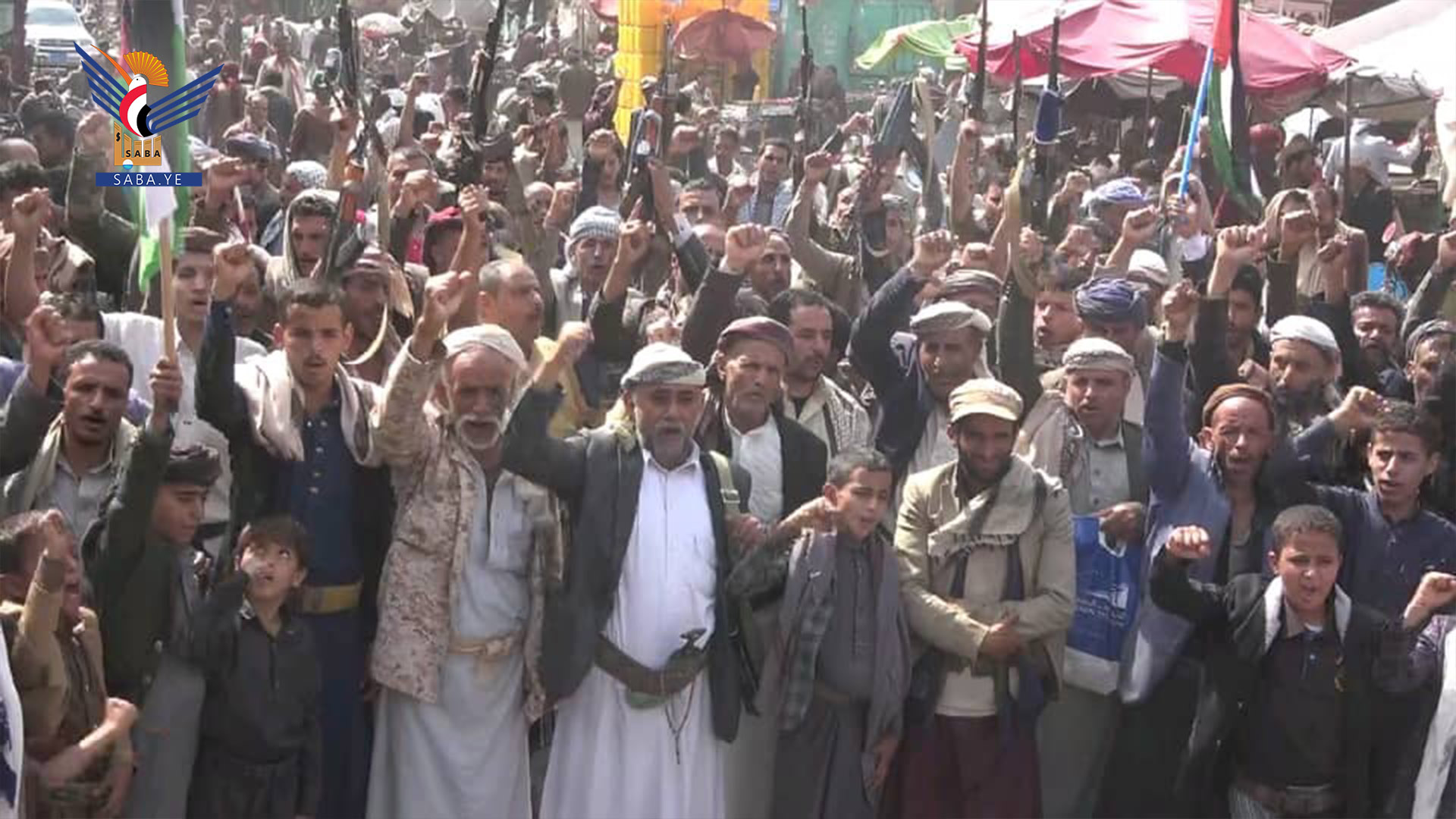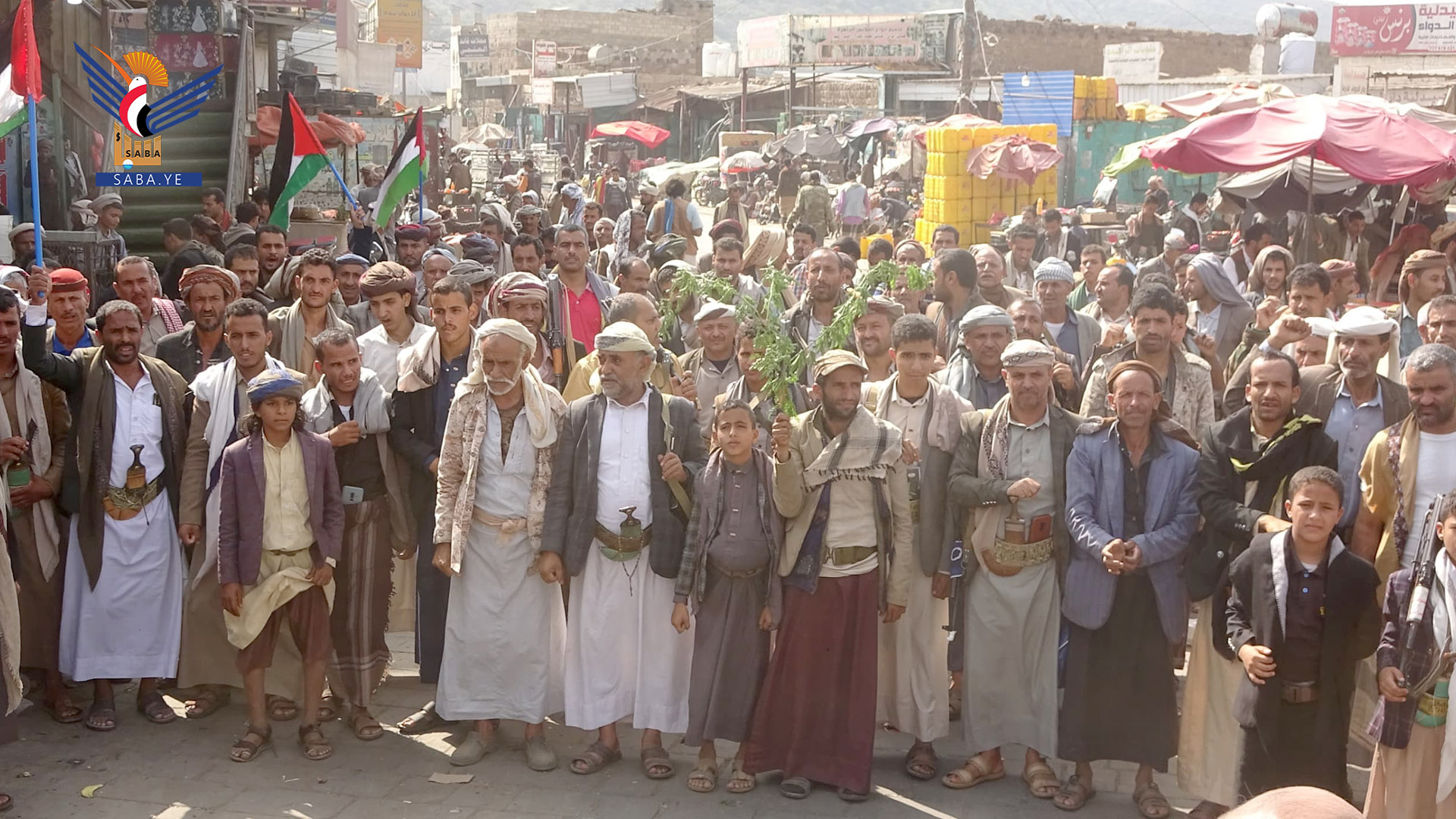 وجددت الحشود في المسيرات بمشاركة قيادات السلطة المحلية ومسؤولي التعبئة العامة في المديريات وشخصيات اجتماعية، التفويض المطلق لقائد الثورة السيد عبد الملك بدر الدين الحوثي، والاستعداد والجهوزية لتنفيذ كل الخيارات الكفيلة بمواجهة تصعيد العدو الصهيوني، وإفشال المؤامرات والمخططات الإجرامية التي تستهدف الأمة والتصدي لكل الخونة والعملاء.