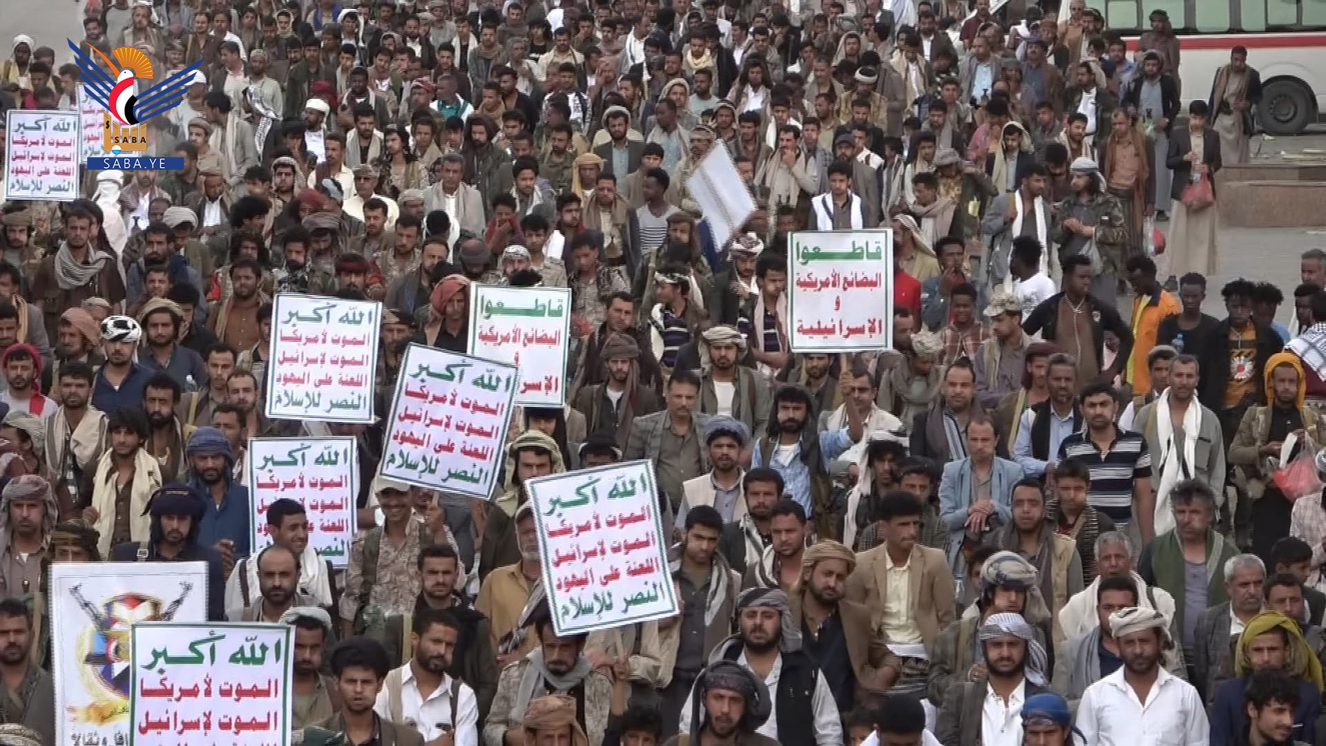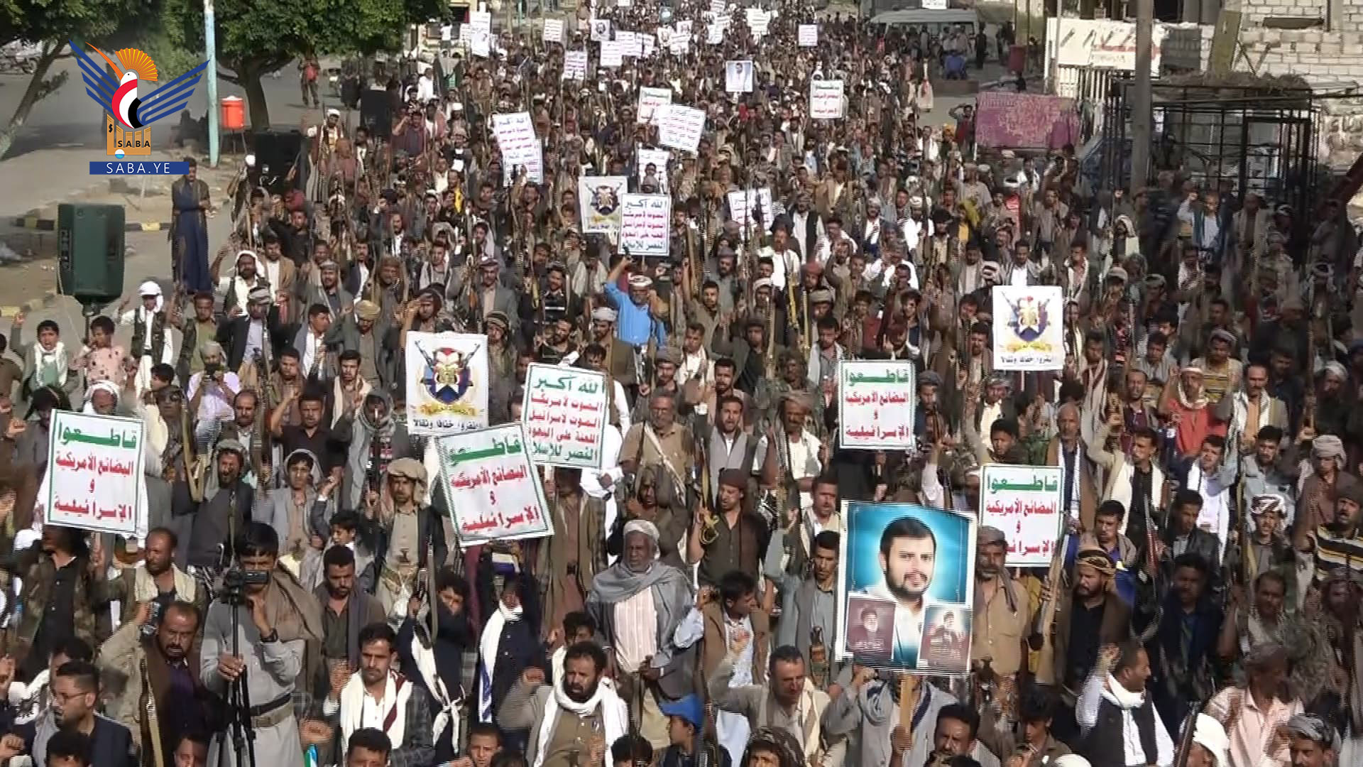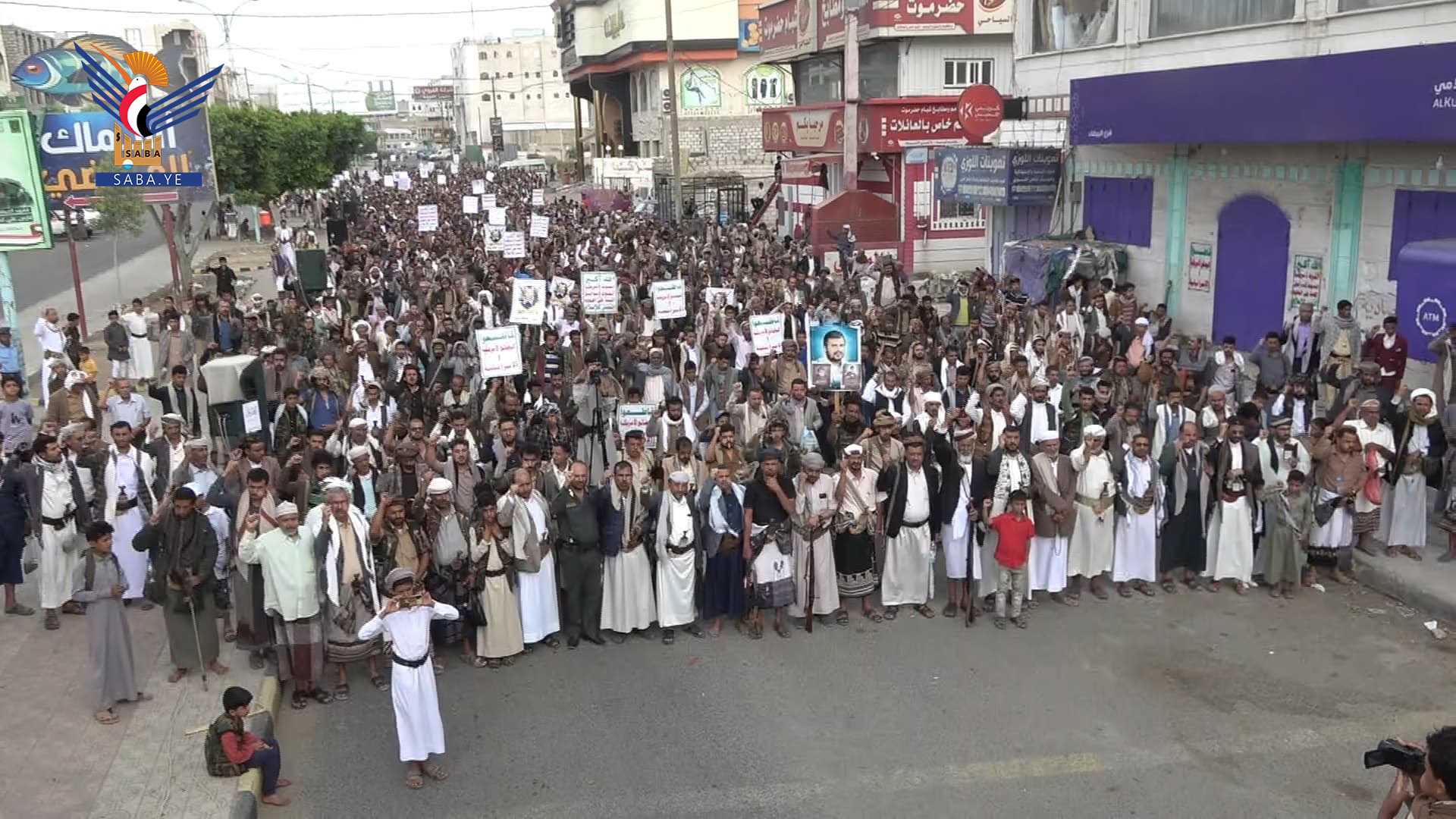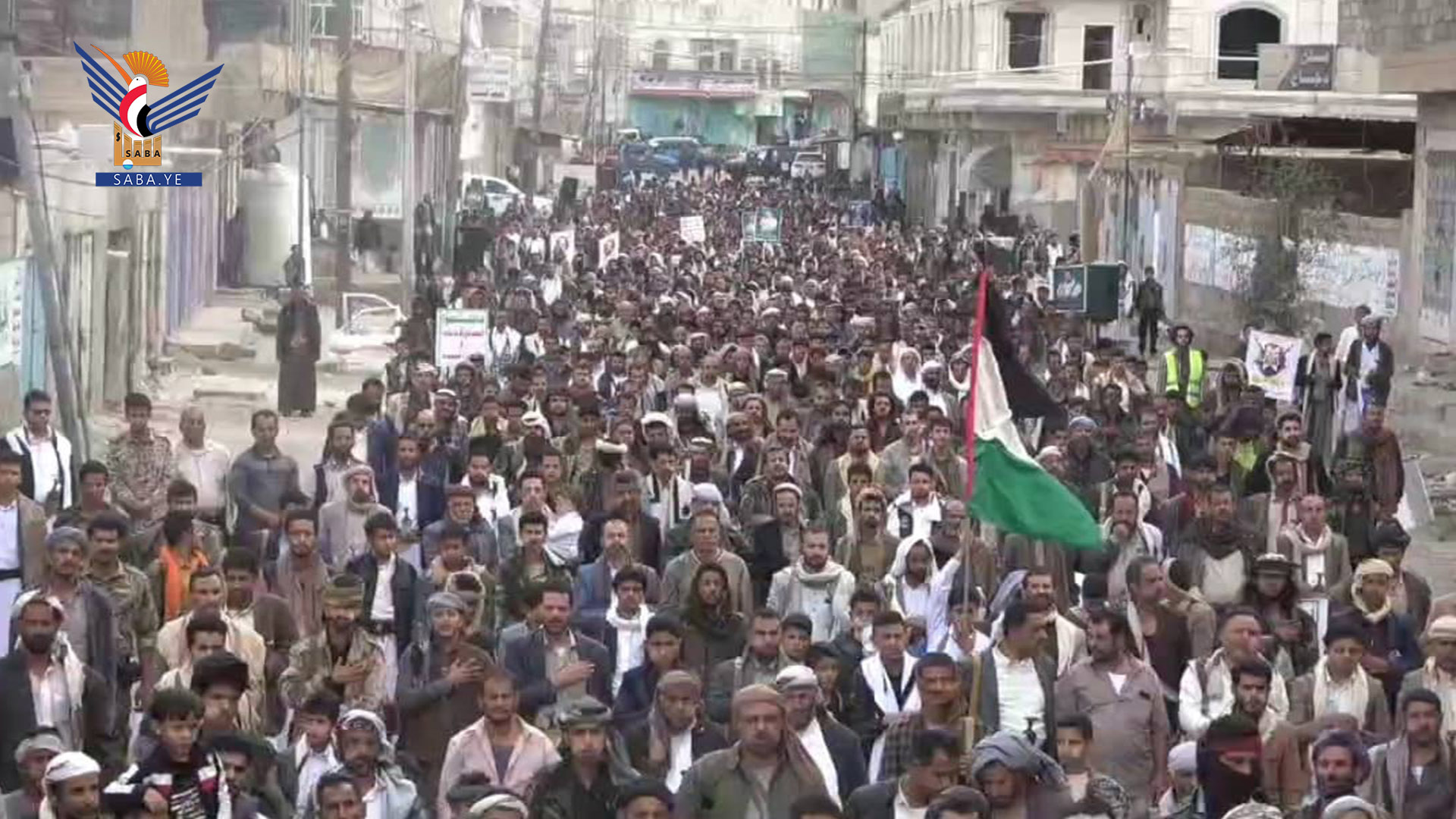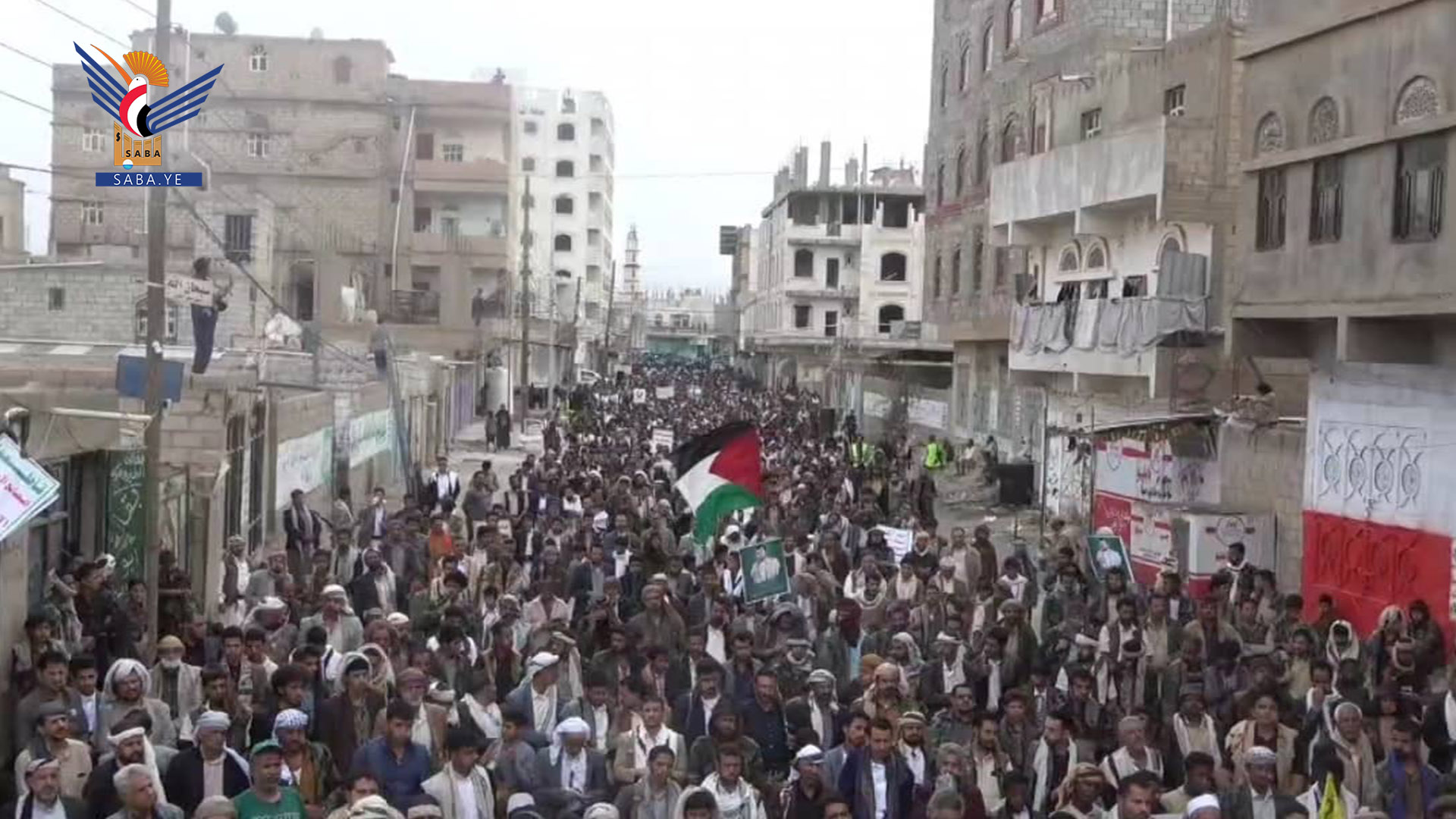 مسيرات حاشدة بالبيضاء تحت شعار "ثابتون مع غزة وإيران ضد الإجرام الصهيوأمريكي"
