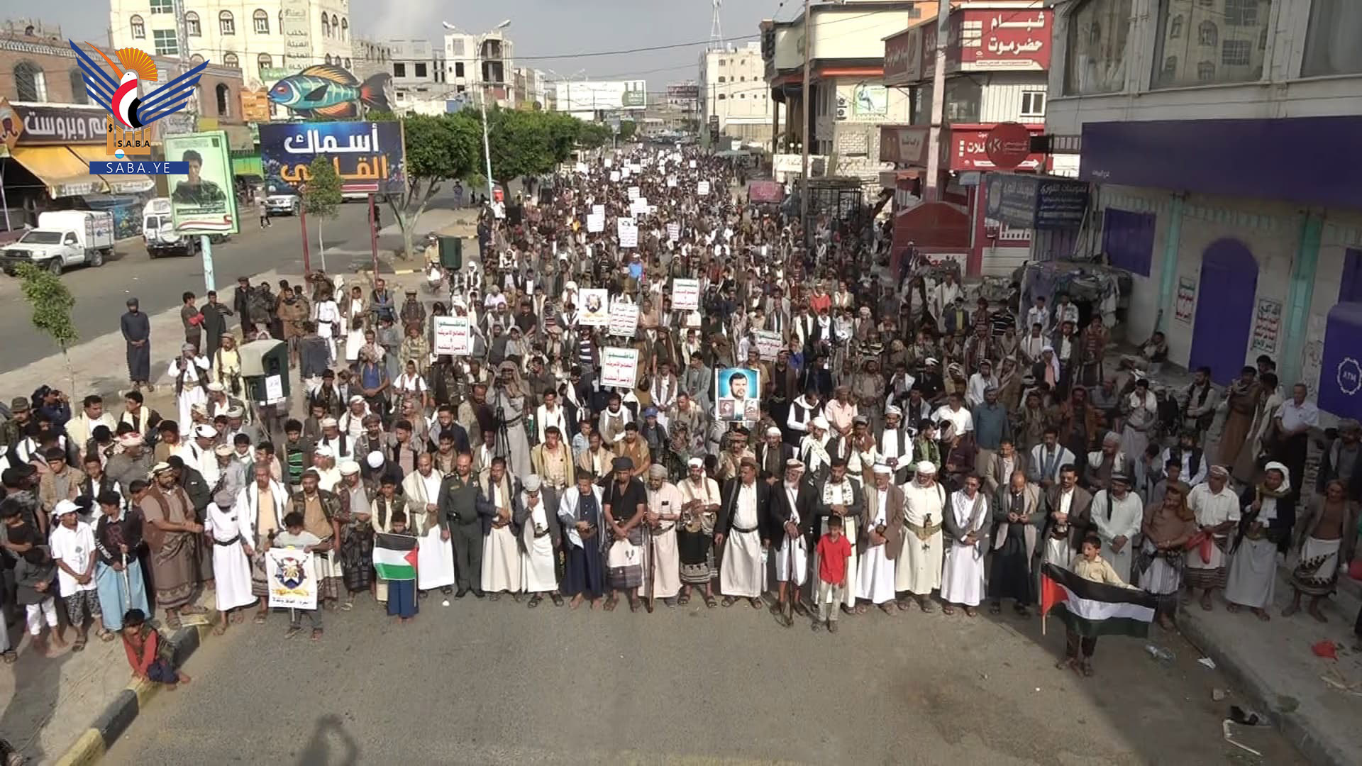 ورفعت الحشود في المسيرات التي حضرها قيادات وكلاء المحافظة ومحلية وتنفيذية وعلماء وشخصيات اجتماعية، الأعلام اليمنية والفلسطينية والإيرانية، منددة بالمجازر البشعة والإبادة الجماعية التي يرتكبها العدو الصهيوني في قطاع غزة ومؤيدة للشعب الإيراني وحقه في الدفاع عن نفسه.