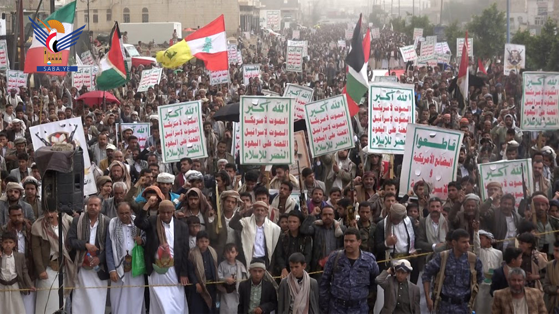 ورددت الحشود الهتافات المنددة بالعدوان الصهيوني على الجمهورية الإسلامية الإيرانية.. مؤكدة على حق الجمهورية الإسلامية في الرد على هذا العدوان السافر.
