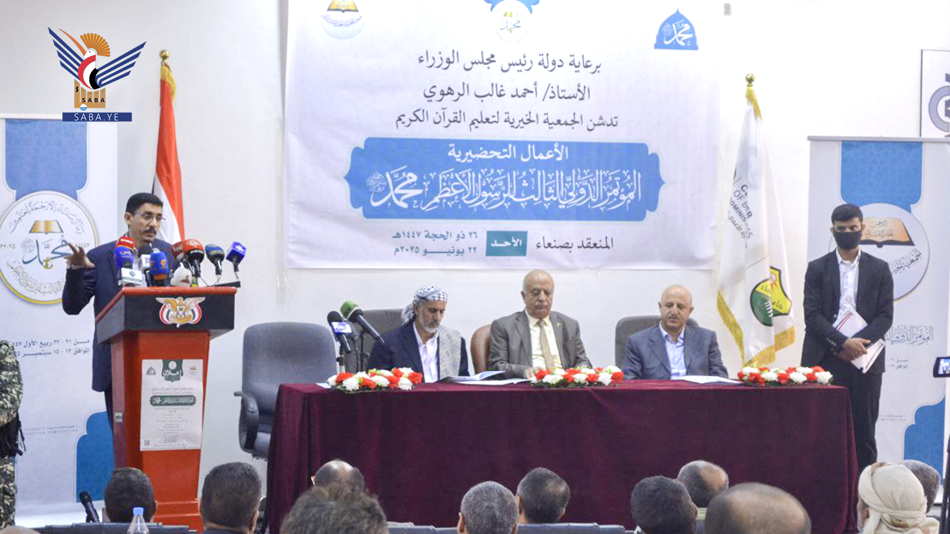 ولفت الوزير الصعدي إلى أهمية المؤتمر ومرجعياته المهمة النابعة من القرآن الكريم، منوهاً بجهود رئاسة الجمعية الخيرية لتعليم القرآن الكريم والعاملين في المؤتمرين الأول والثاني على دورهم في إنجاح الدورتين السابقتين إعدادًا وتنظيمًا وكذا الخطوات المتخذة لتنظيم المؤتمر الدولي الثالث للرسول الأعظم.