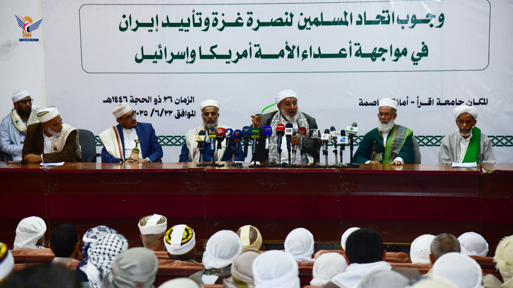 أكد علماء اليمن وجوب اتحاد المسلمين صفاً واحداً لنصرة غزة وفلسطين والمسجد الأقصى، وتأييد ودعم الجمهورية الإسلامية الإيرانية في مواجهة العدوان الصهيوني الأمريكي عليها، ومباركة عمليات الوعد الصادق 3، التي تضرب الكيان الصهيوني في العمقِ ضربات حيدرية لم يتعرض لها منذ احتلاله للأراضي العربية الفلسطينية.