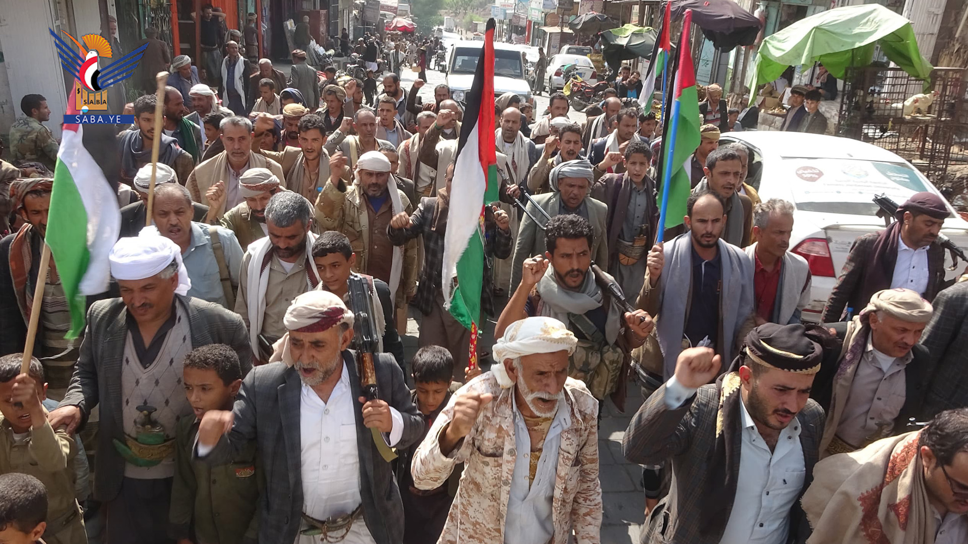 أبناء محافظة صنعاء يخرجون في مسيرات حاشدة نصرة لفلسطين ومباركة لانتصار إيران