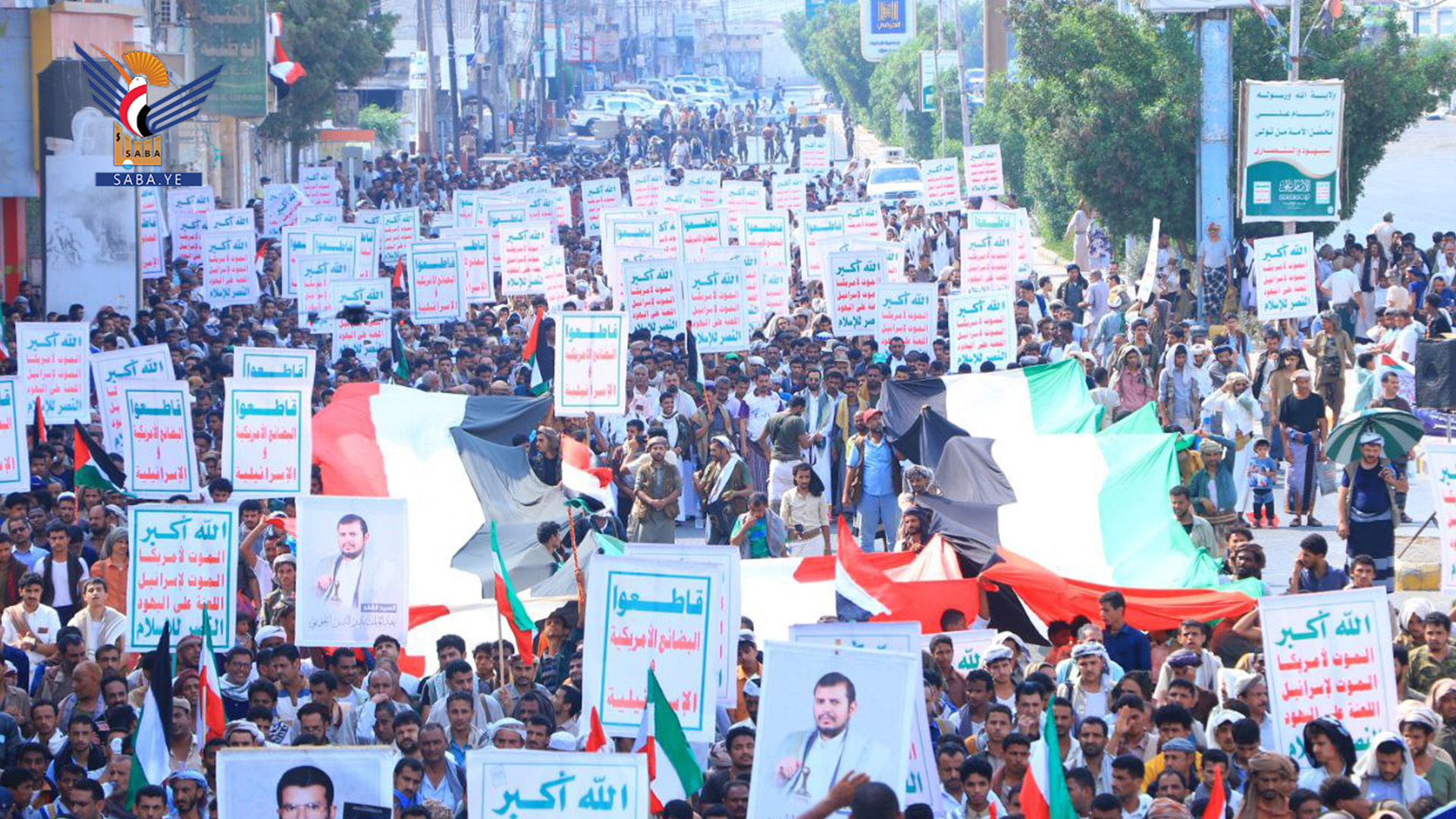 ورفعت الحشود بمشاركة وكلاء المحافظة للمربعات الشرقية والجنوبية والشمالية، العلمين اليمني والفلسطيني، ولافتات عكست التلاحم الشعبي مع جبهات الصمود في فلسطين وإيران، مباركين الانتصار الإيراني على كيان العدو الصهيوني، مؤكدين أن ما تحقق في الرد الإيراني هو نتاج إرادة مواجهة حقيقية كسرت هيبة كيان العدو، وأسقطت وهم التفوق الصهيوني أمام صلابة الجبهة المناهضة للهيمنة.