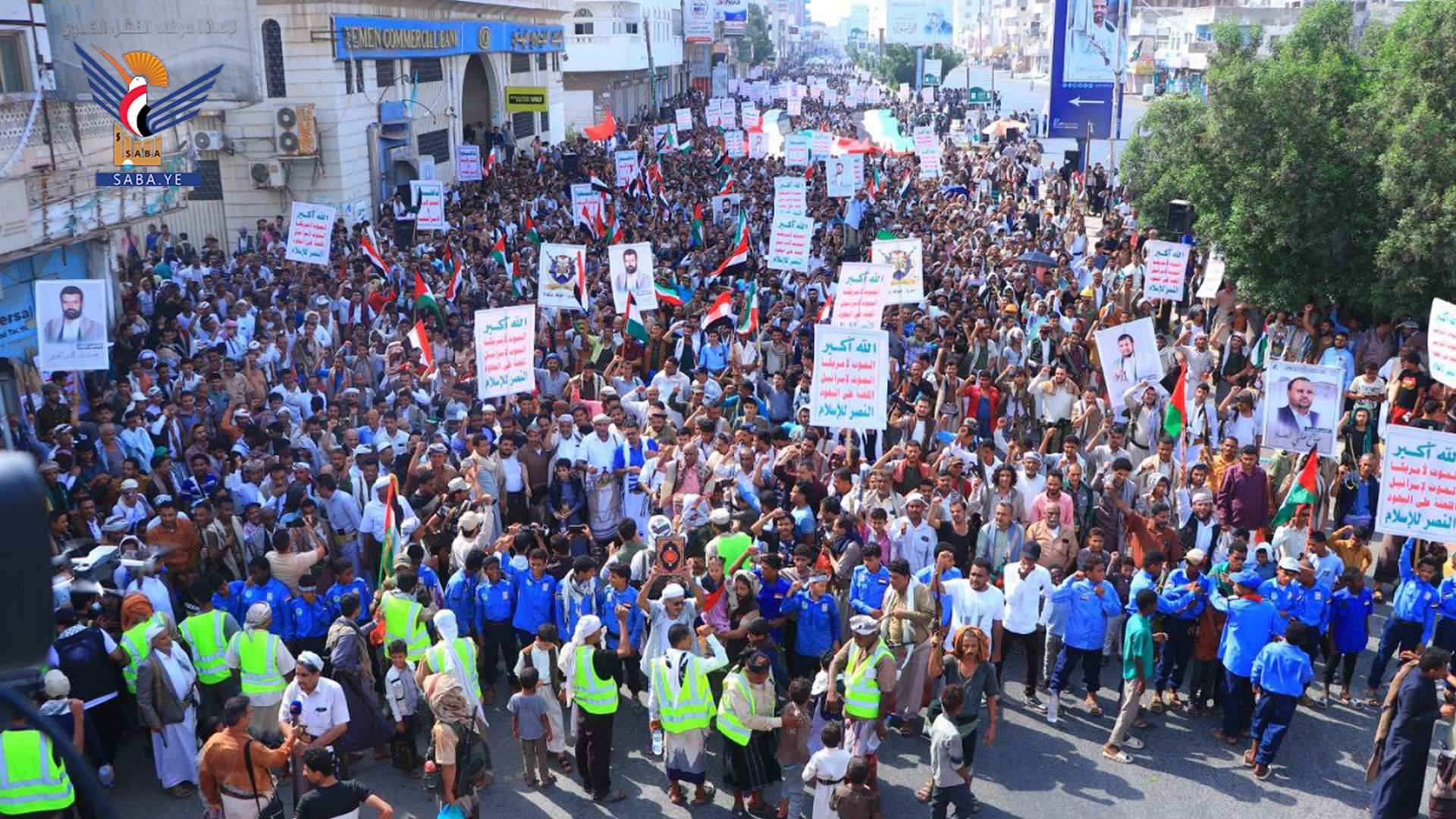 شهدت محافظة الحديدة، اليوم، مسيرات جماهيرية كبرى، في 235 ساحة بمديريات المحافظة اعتزازًا بانتصار إيران على الكيان الصهيوني وتجديد الثبات والنصرة لفلسطين، تحت شعار "مباركةً بانتصار إيران.. وثباتاً مع غزة حتى النصر".