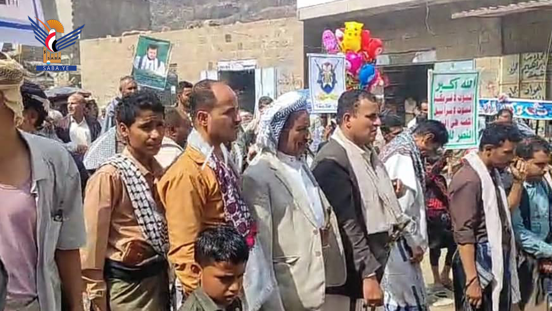 شهدت مديريات دمت والحشاء وقعطبة وجين بمحافظة الضالع اليوم، مسيرات جماهيرية حاشدة تحت شعار "مباركةً بانتصار إيران .. وثباتاً مع غزة حتى النصر".