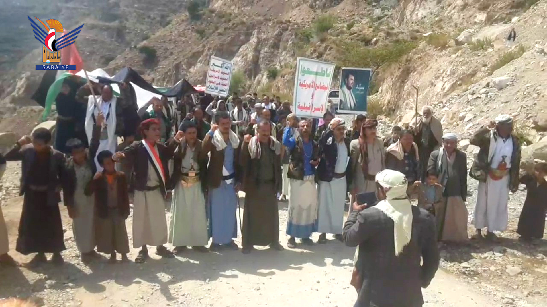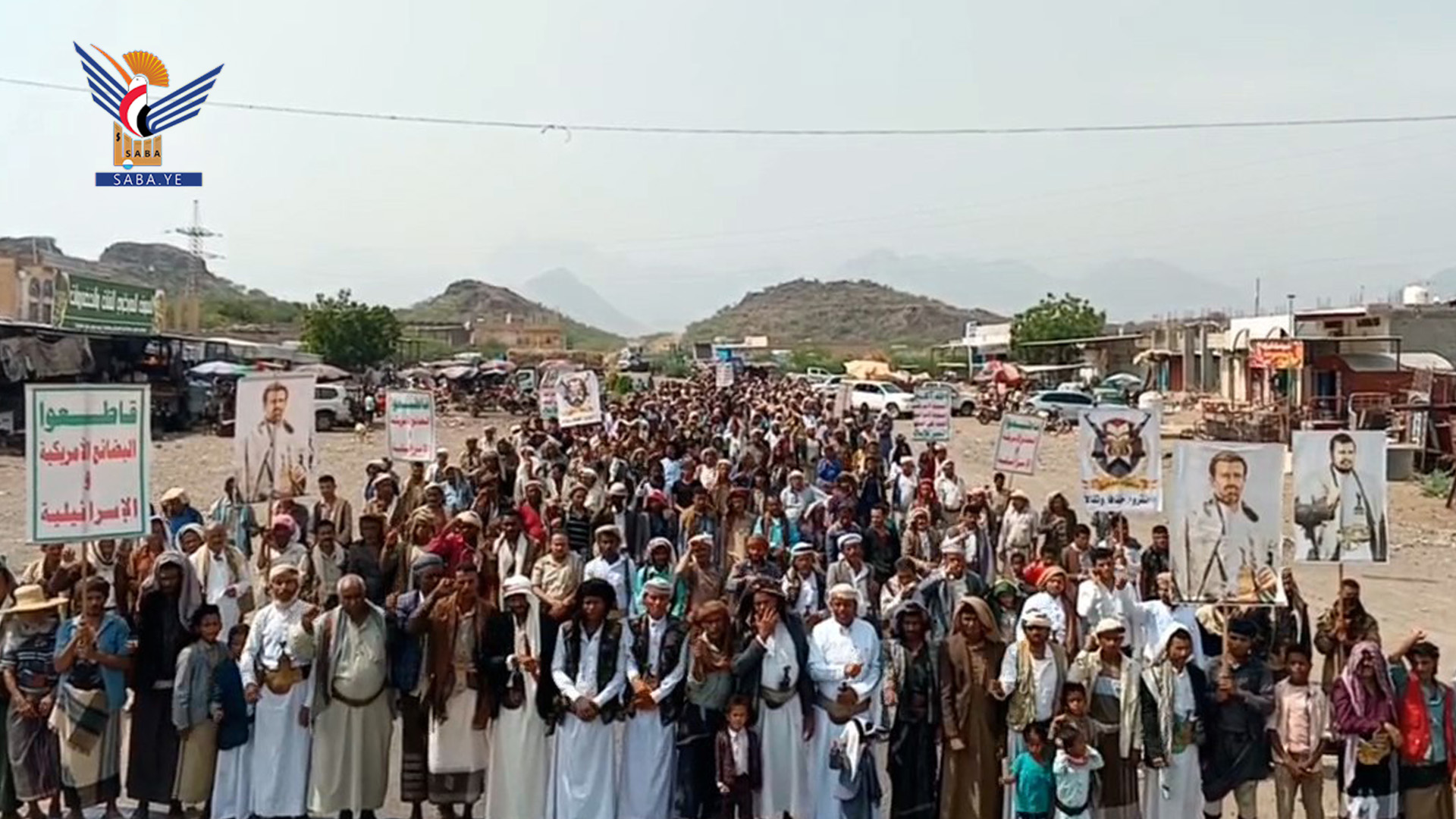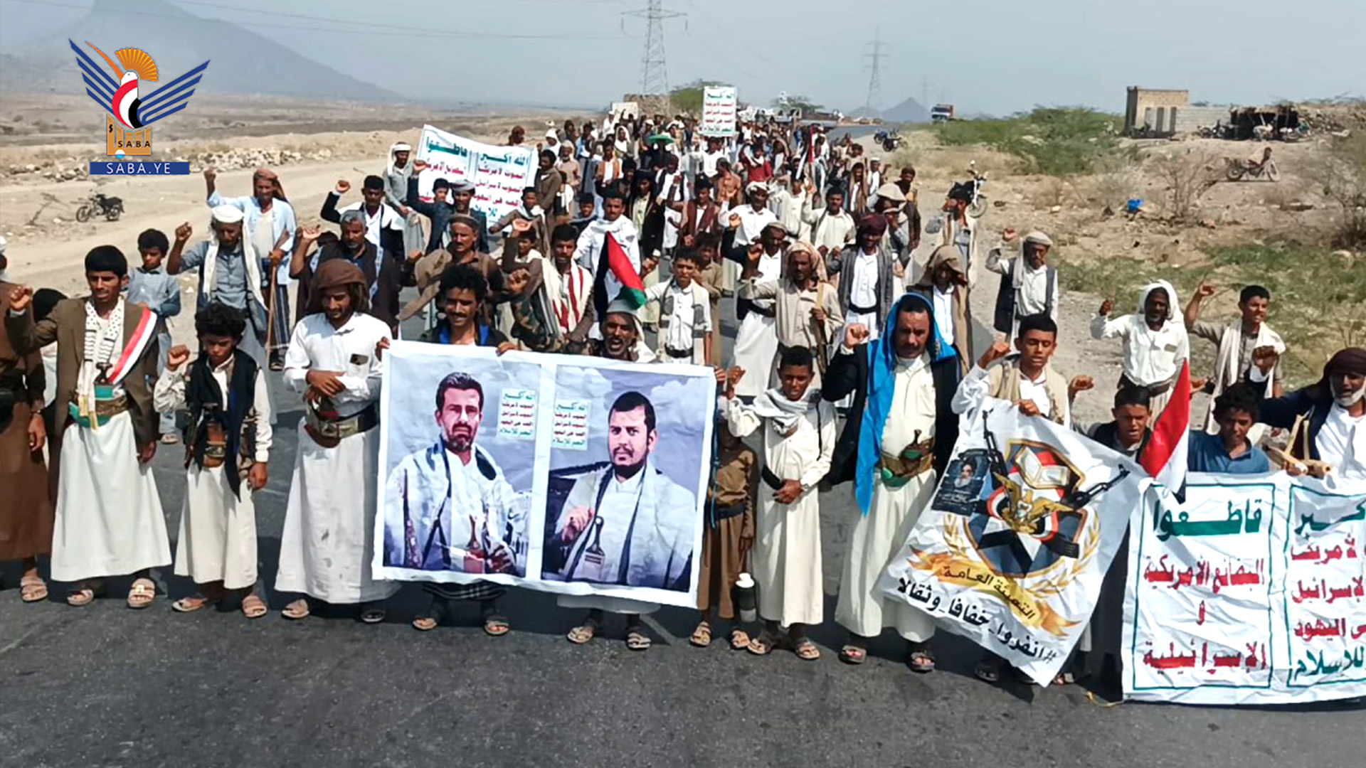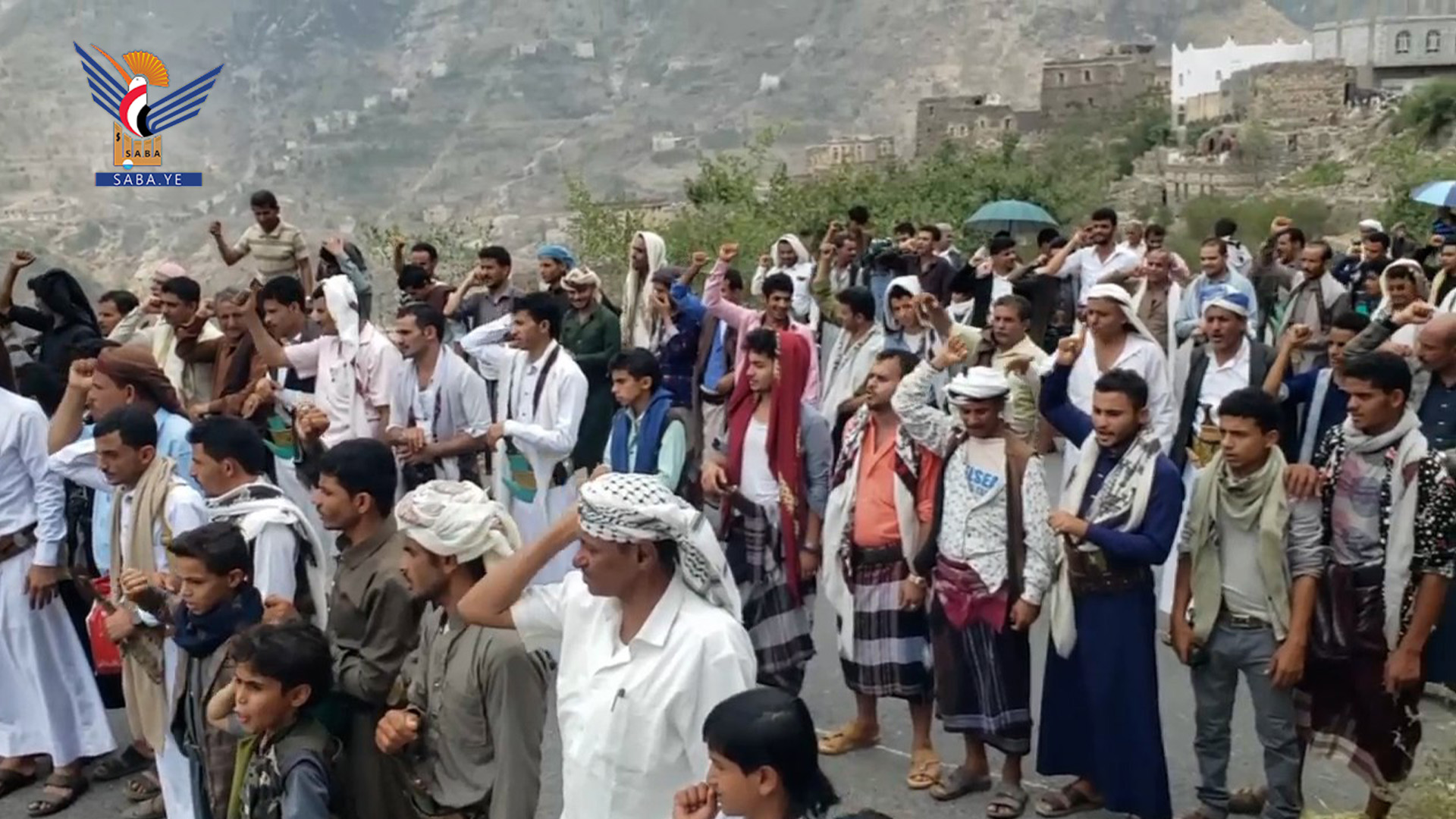 وخلال المسيرات بمديريات مزهر وبلاد الطعام وكسمة والجعفرية والسلفية بحضور عدد من وكلاء المحافظة ومديري المديريات، ندد المشاركون بالإجرام الصهيوني، الأمريكي، وجرائم الإبادة الجماعية والتجويع والتدمير، بحق أبناء غزة، في ظل الصمت المعيب للدول الإسلامية والمنظمات والحقوق الإنسانية.