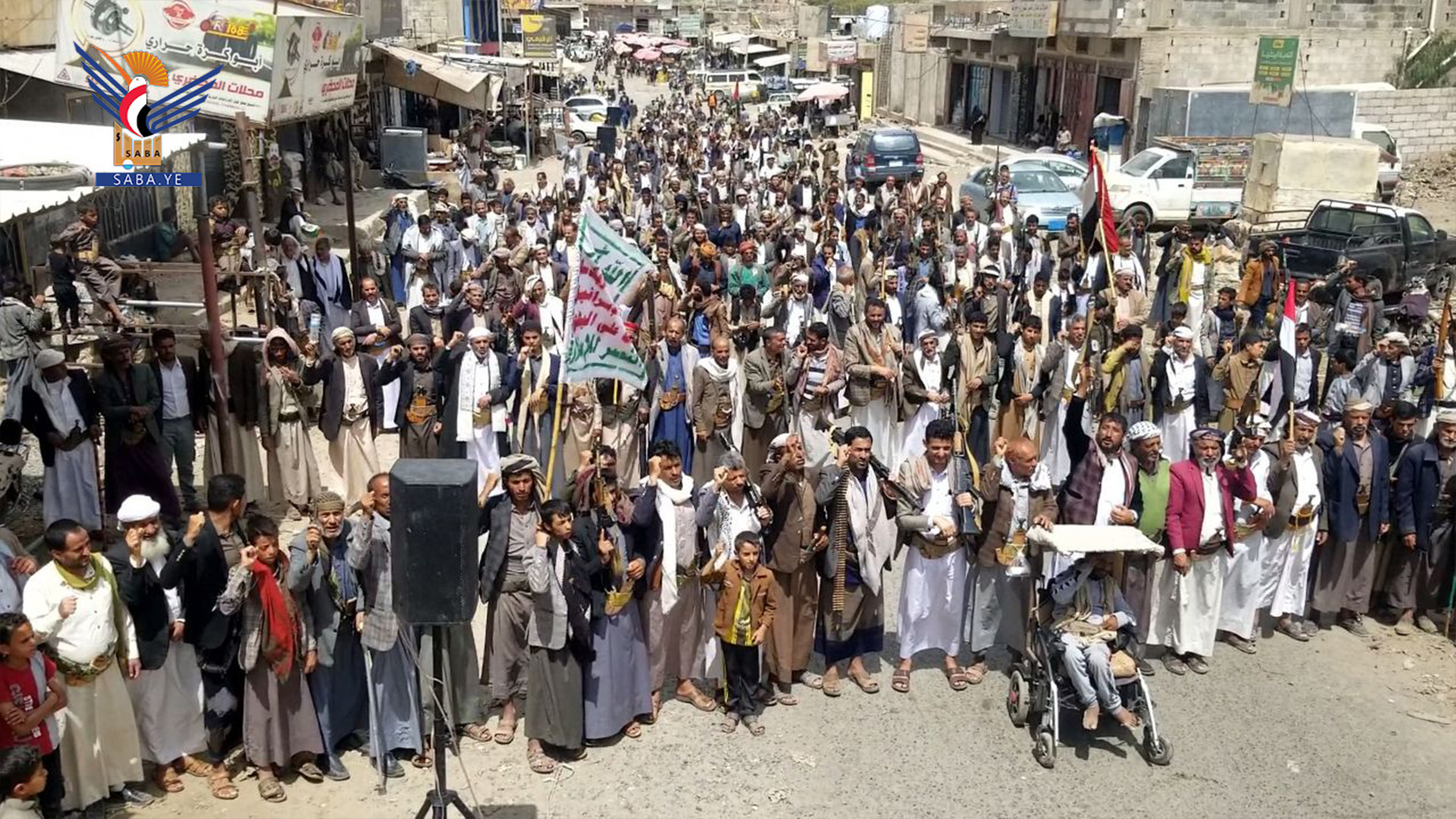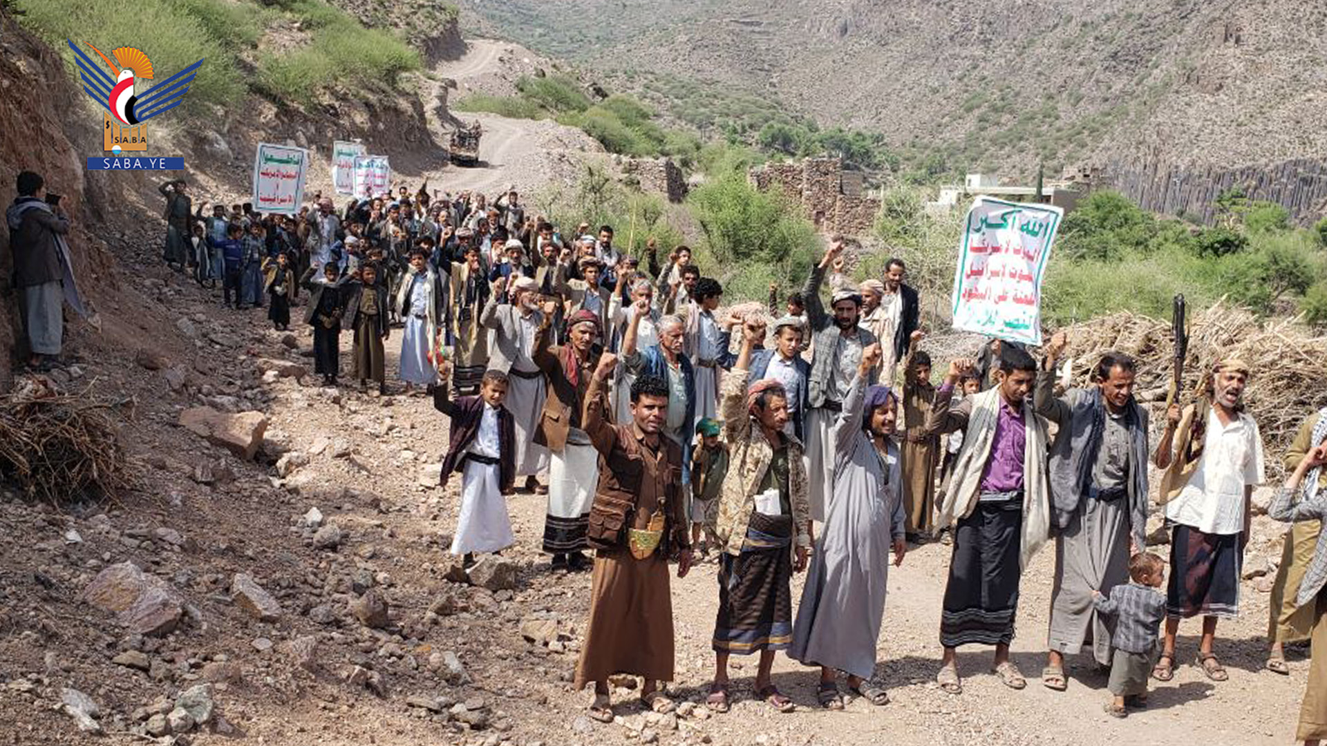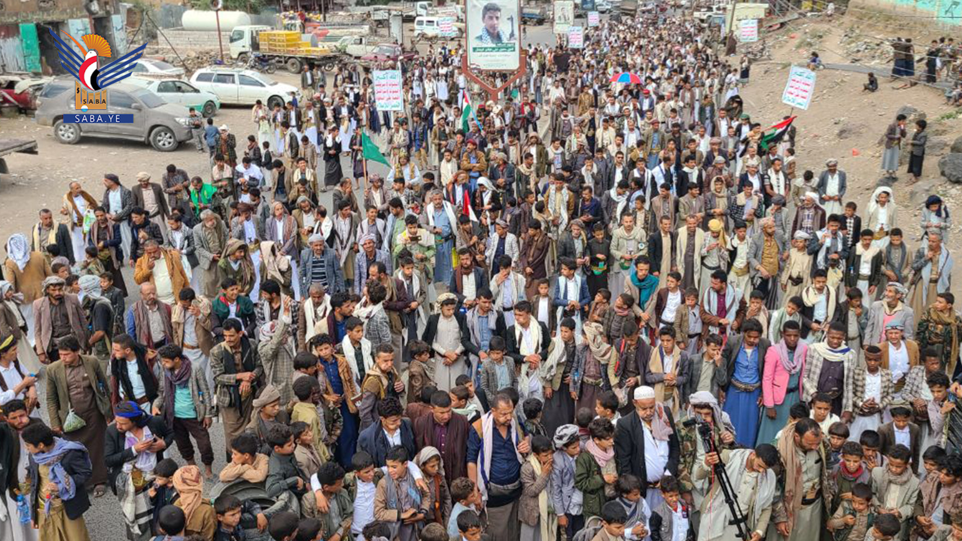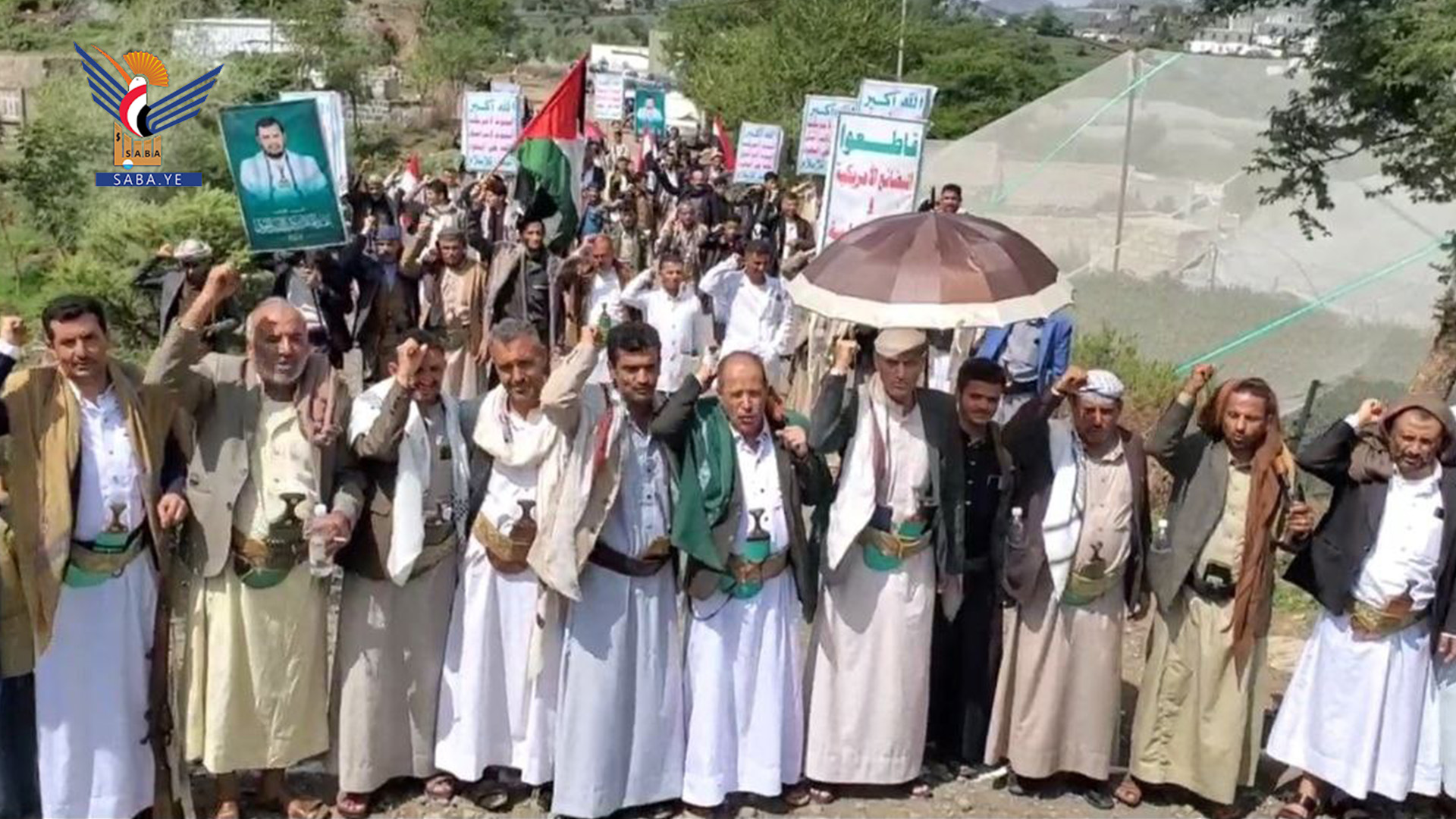 وفي المسيرة التي تقدّمها بمركز المحافظة المحافظ محمد البخيتي، جدّد المشاركون العهد لله ولرسوله صلى الله عليه وعلى آله وسلم، بالثبات على نهج الإيمان والجهاد، ونصرة الرسول والرسالة والإسلام.