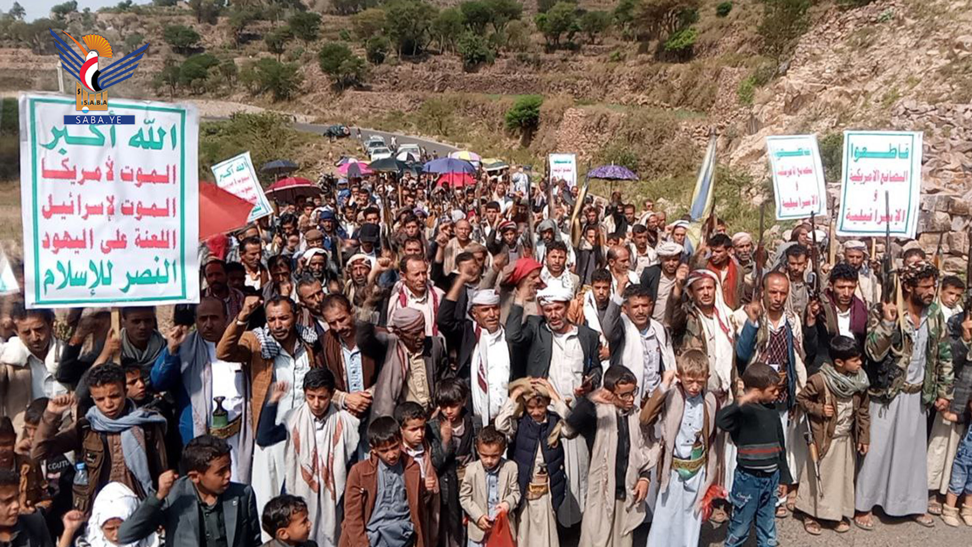 شهدت مديريات محافظة ذمار، اليوم، مسيرات جماهيرية حاشدة في 46 ساحة، تأكيدًا على ثبات الموقف مع غزة ومباركة لانتصار إيران على الكيان الصهيوني تحت شعار "مباركة بانتصار إيران .. وثباتًا مع غزة حتى النصر".