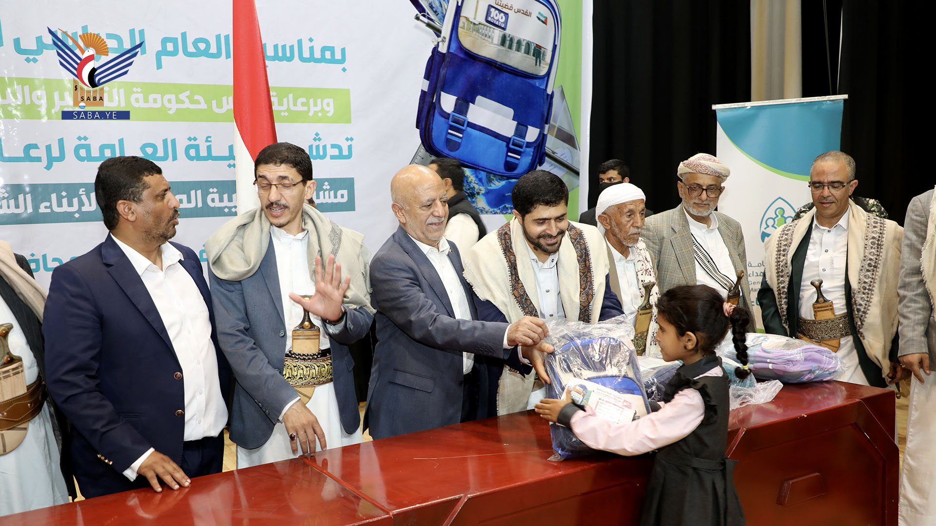 وفي ختام حفل التدشين، سلم رئيس مجلس الوزراء الحقائب المدرسية لعدد من أبناء الشهداء.