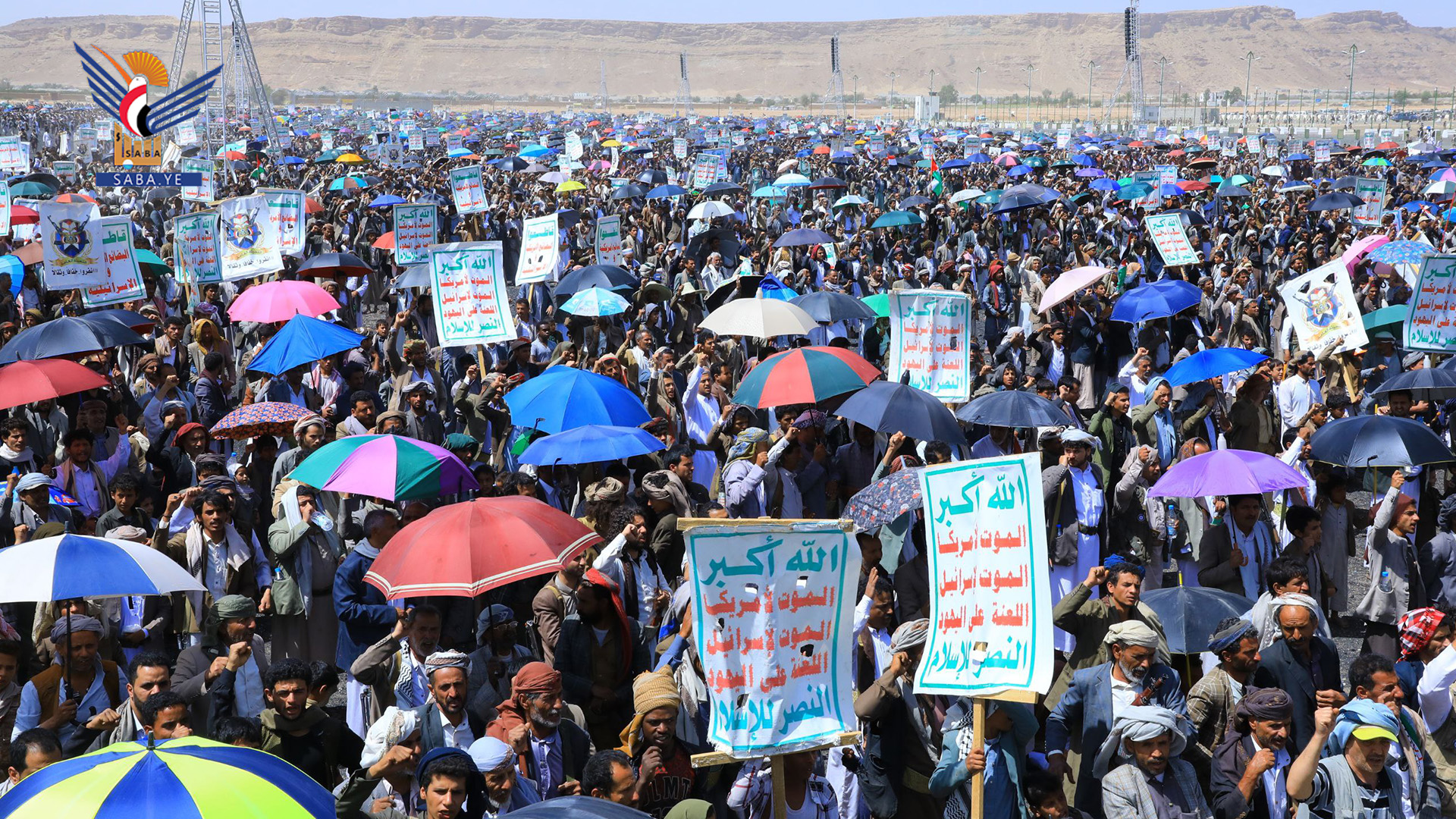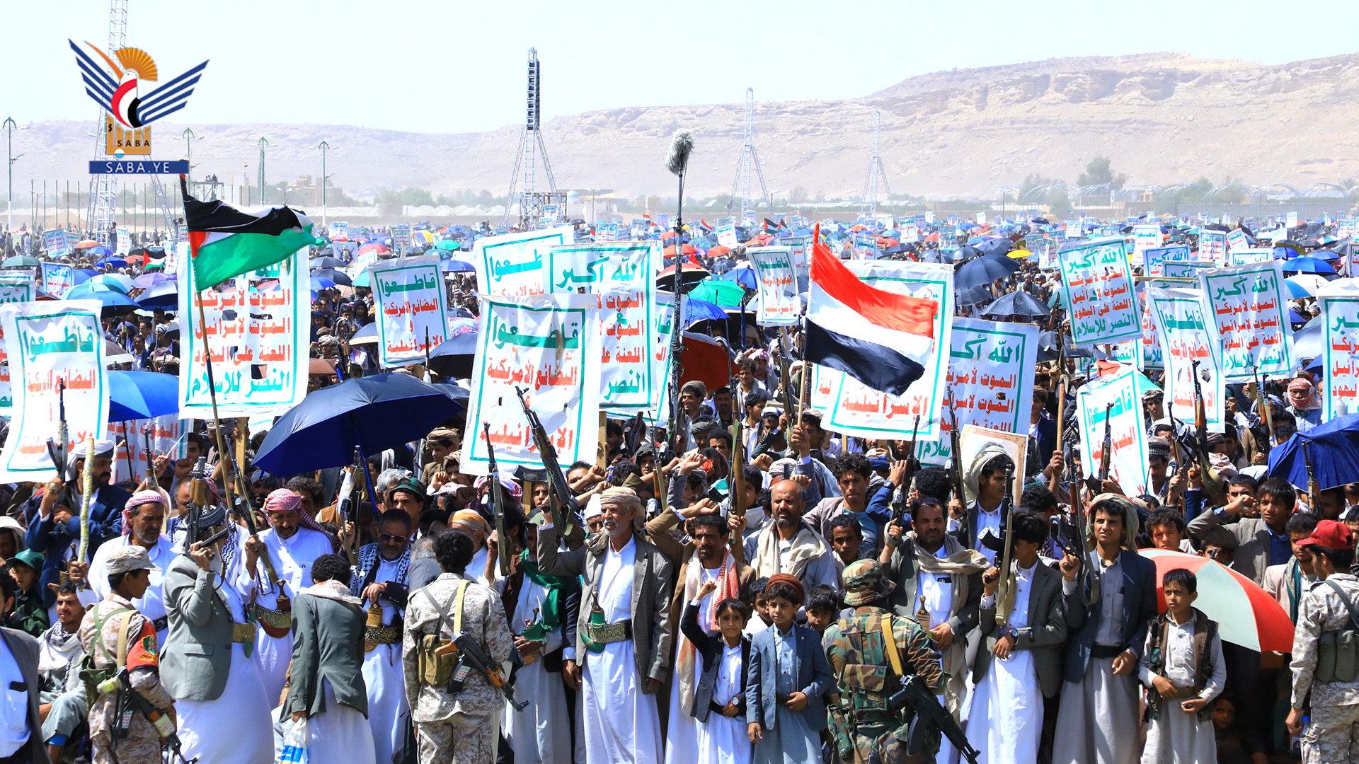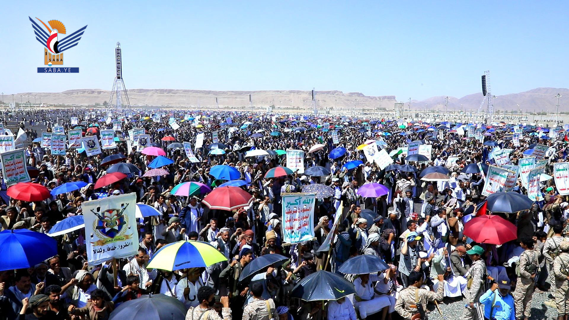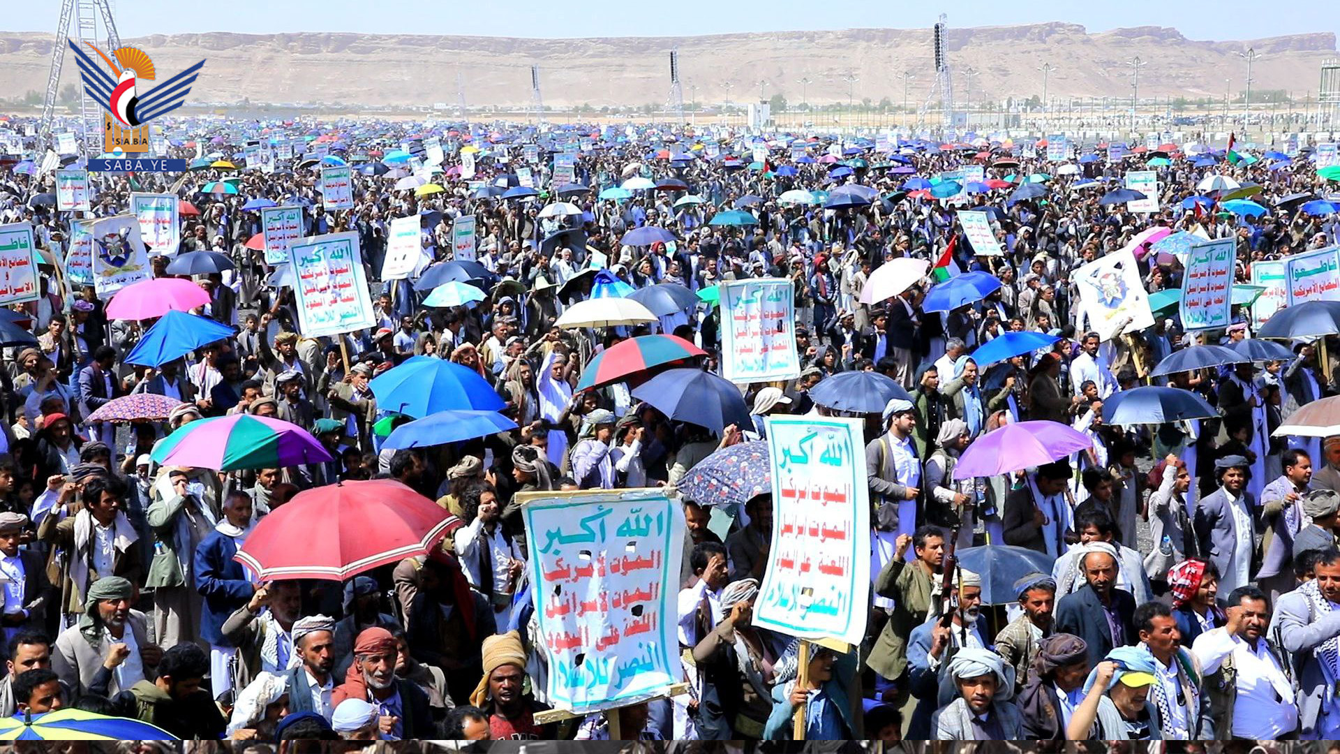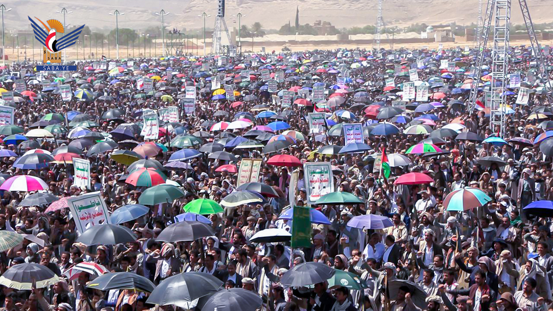 وباركت الحشود العمليات النوعية التي تنفذها القوات المسلحة اليمنية ضد الأهداف الحيوية للعدو الصهيوني في عمق الأراضي الفلسطينية المحتلة، وكذا العمليات البحرية القوية والفاعلة.
