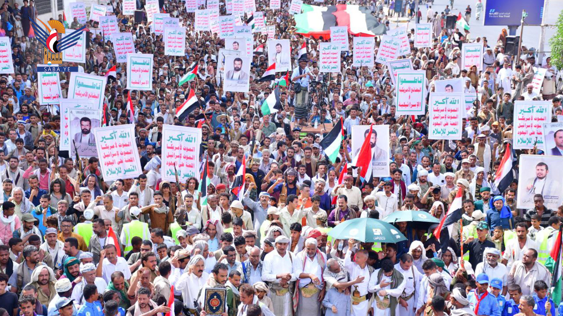 وشددت الحشود الجماهيرية، على استمرار المسيرات والفعاليات التضامنية حتى وقف العدوان ورفع الحصار عن الشعب الفلسطيني، وتكثيف الجهود التعبوية لدعم صمود غزة في معركتها التاريخية.