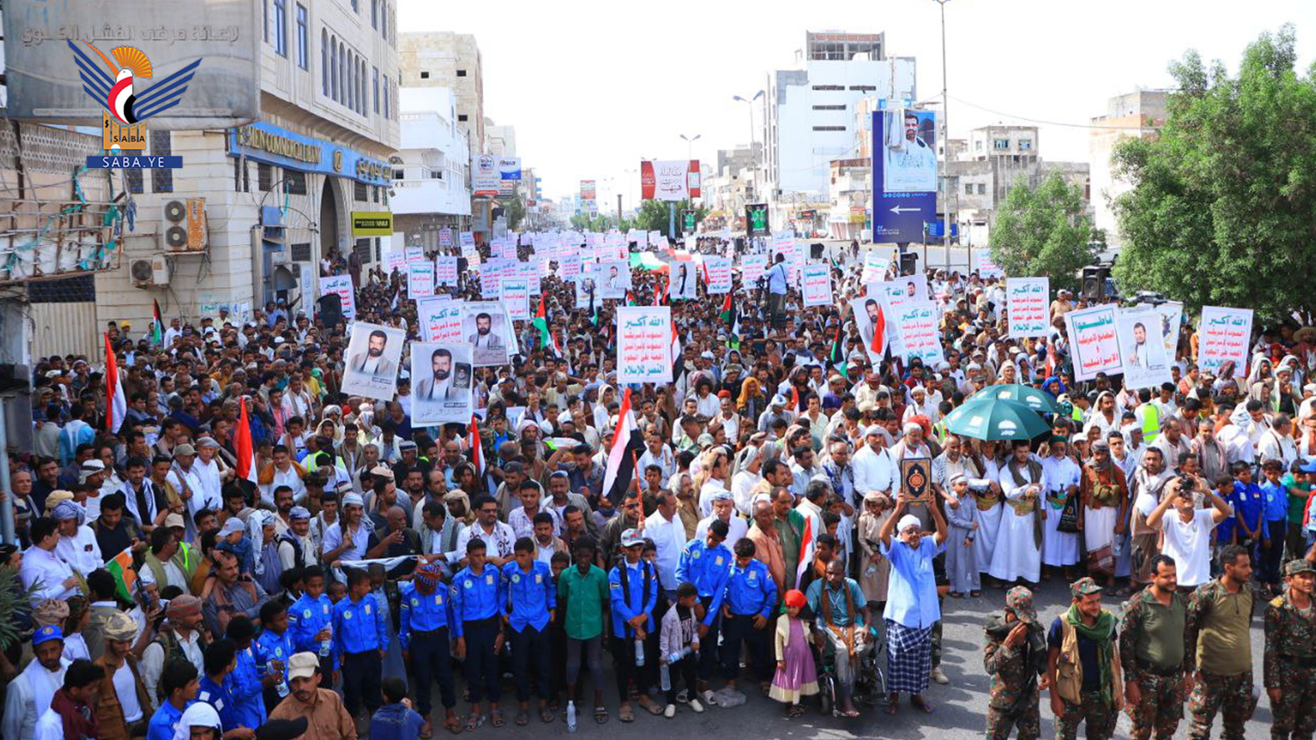 وأدان أبناء الحديدة، العدوان الإسرائيلي على لبنان، والقصف الصهيوني لسوريا رغم انخراطها في مسار التطبيع، معتبرين العدوان الصهيوني، يؤكد أن التطبيع لا يحمي أحدًا بل يزيد من تغوّل العدو.