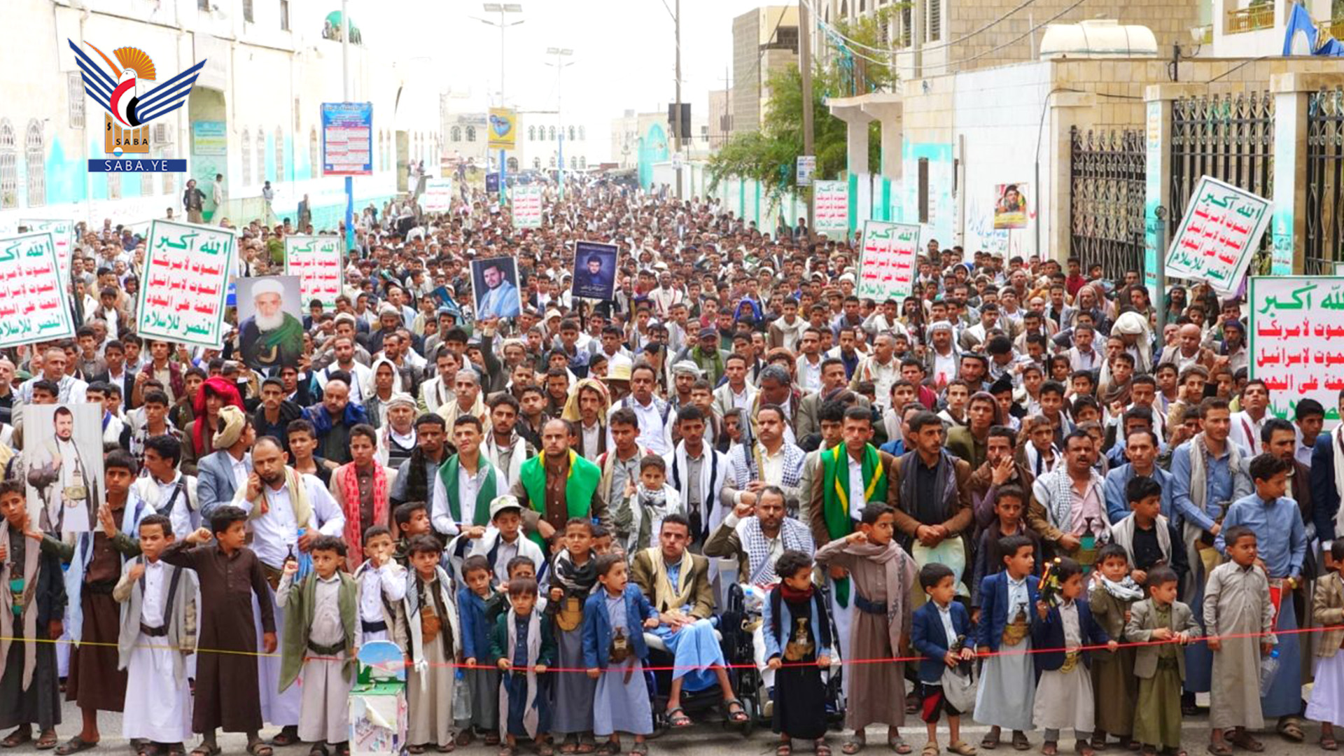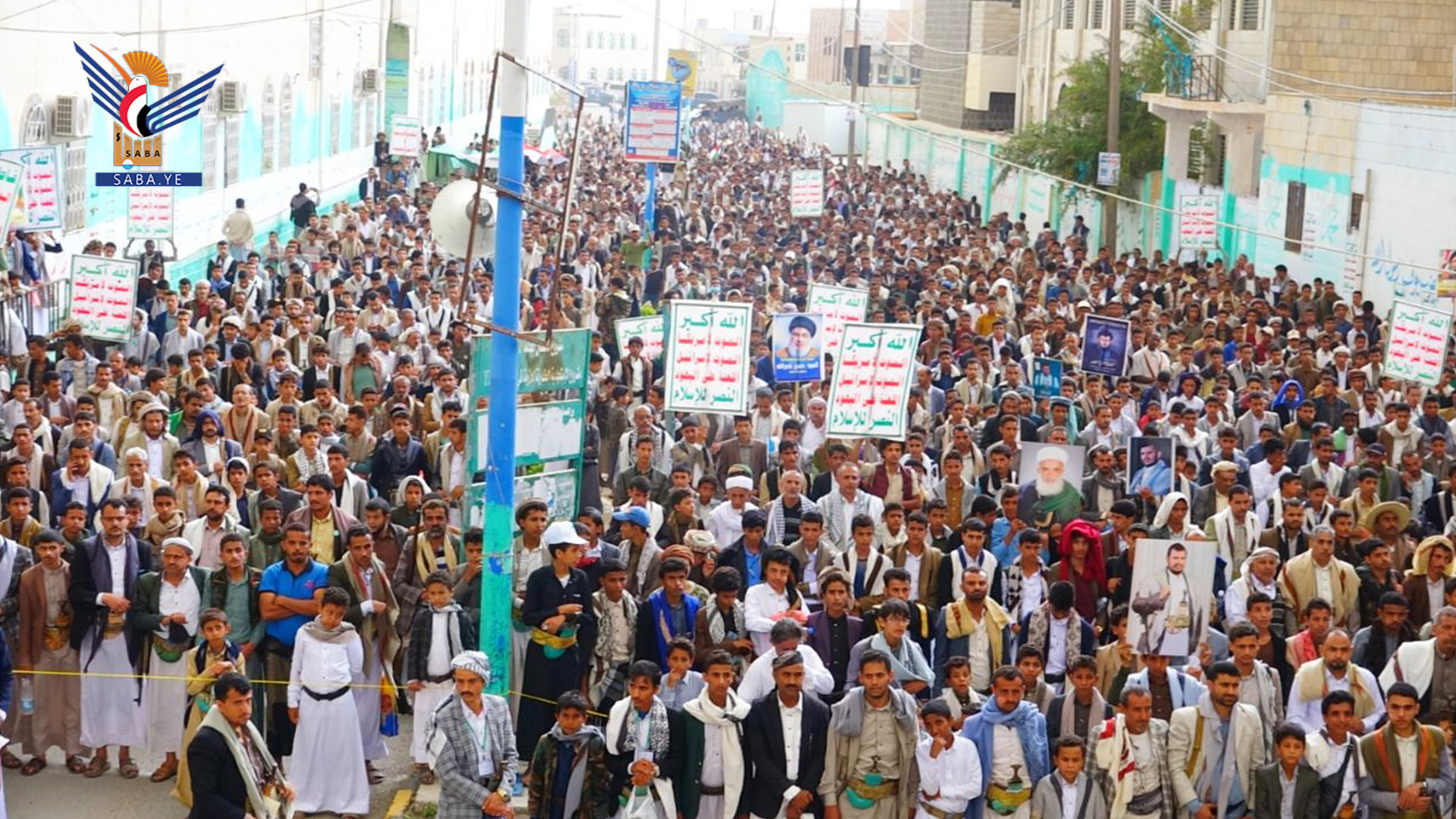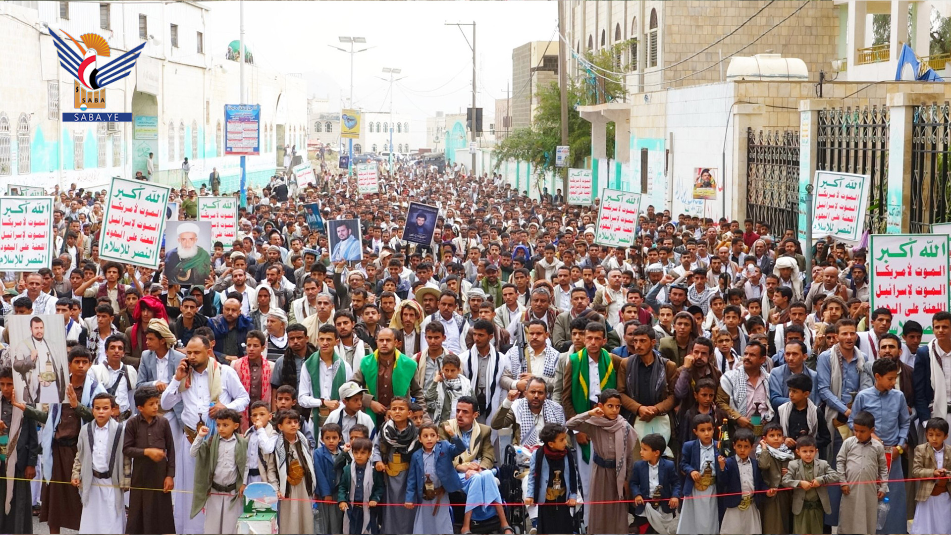 وجددّ بيان صادر عن المسيرات، الوقوف الثابت والراسخ في مواجهة جرائم ومخططات العدو الصهيوني، الأمريكي في المنطقة وفي المقدمة، تكريس معادلة الاستباحة الكاملة لشعوب المنطقة.