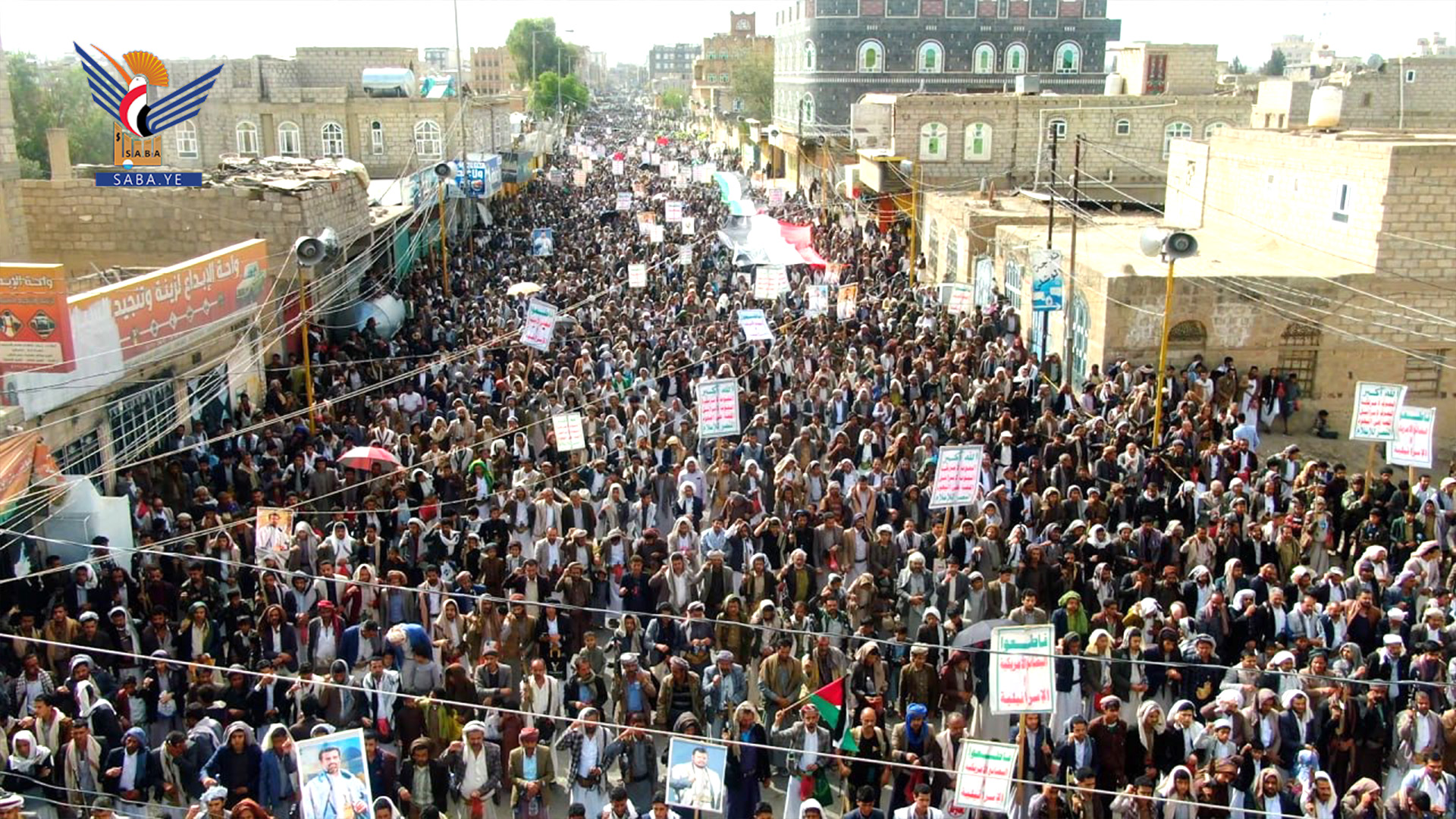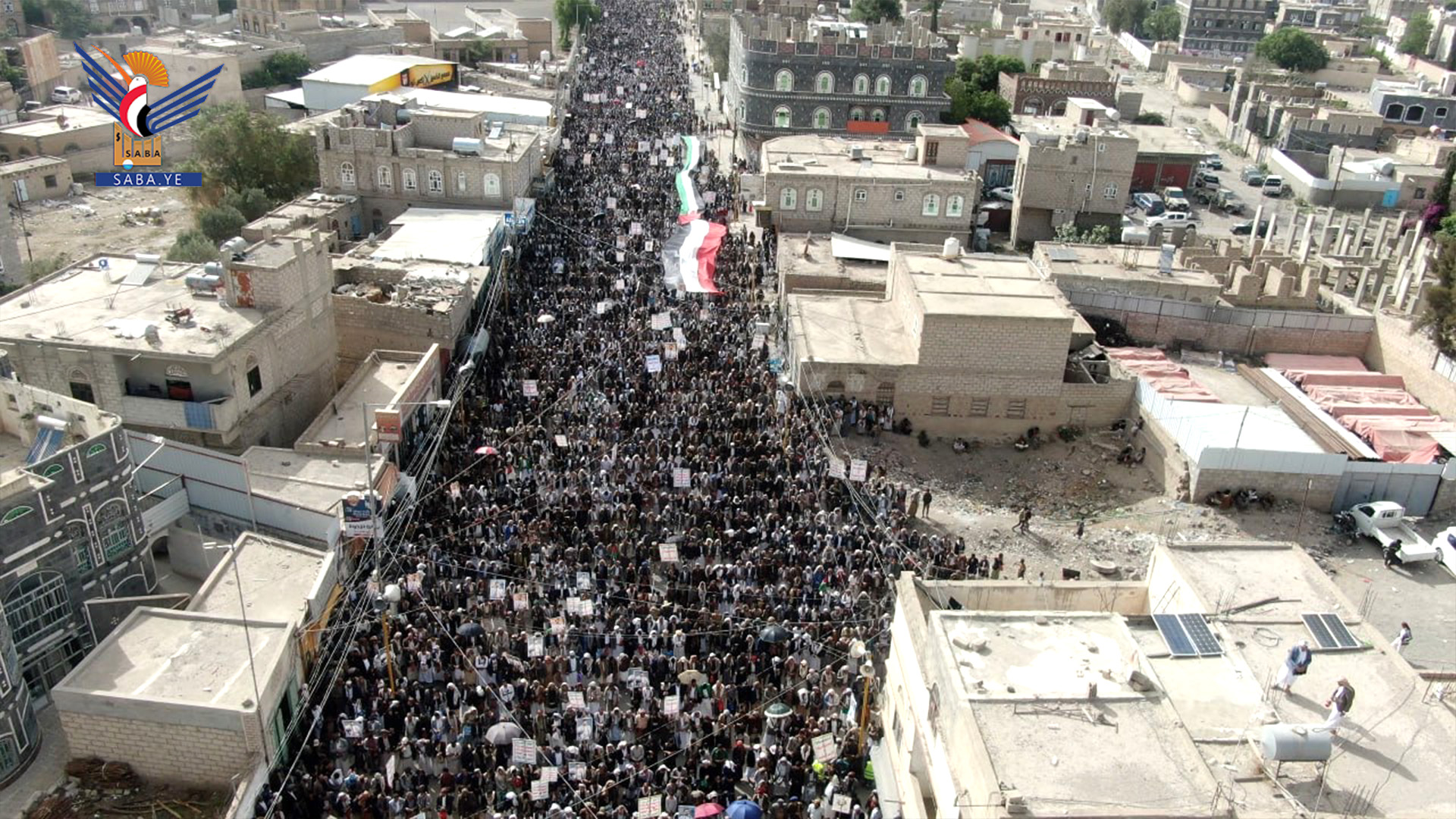 وأكدت الحشود في المسيرات التي تقدمتها قيادات تنفيذية ومحلية وأكاديمية وشخصيات اجتماعية، استمرار موقف الشعب اليمني الثابت والمبدئي في نصرة الشعب الفلسطيني ومواجهة مخططات الصهاينة لاستباحة الأمة.