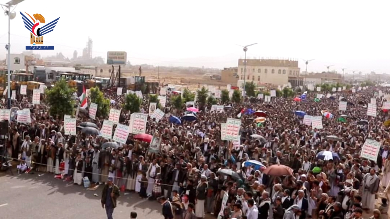 وأكد بيان صادر عن مسيرات عمران، استمرار الخروج الشعبي المليوني دون كلل أو فتور، استشعارًا للمسؤولية الدينية والإنسانية والأخلاقية، واستجابة لأمر الله وجهادًا في سبيله، نصرة للشعب الفلسطيني المظلوم، ورفضًا لهيمنة العدو الصهيوني والأمريكي.