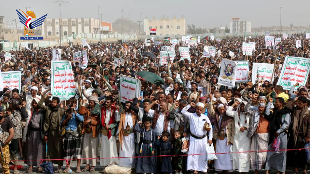 وأكد بيان صادر عن مسيرات تعز أنه واستجابة لله تعالى وجهادا في سبيله وابتغاء لمرضاته، خرج أبناء المحافظة إلى الساحات والميادين نصرة للحق والوقوف في وجه الظالمين أمريكا وإسرائيل الذين يرتكبون أبشع جرائم القتل والتجويع بحق الشعب الفلسطيني أمام مرأى ومسمع العالم.