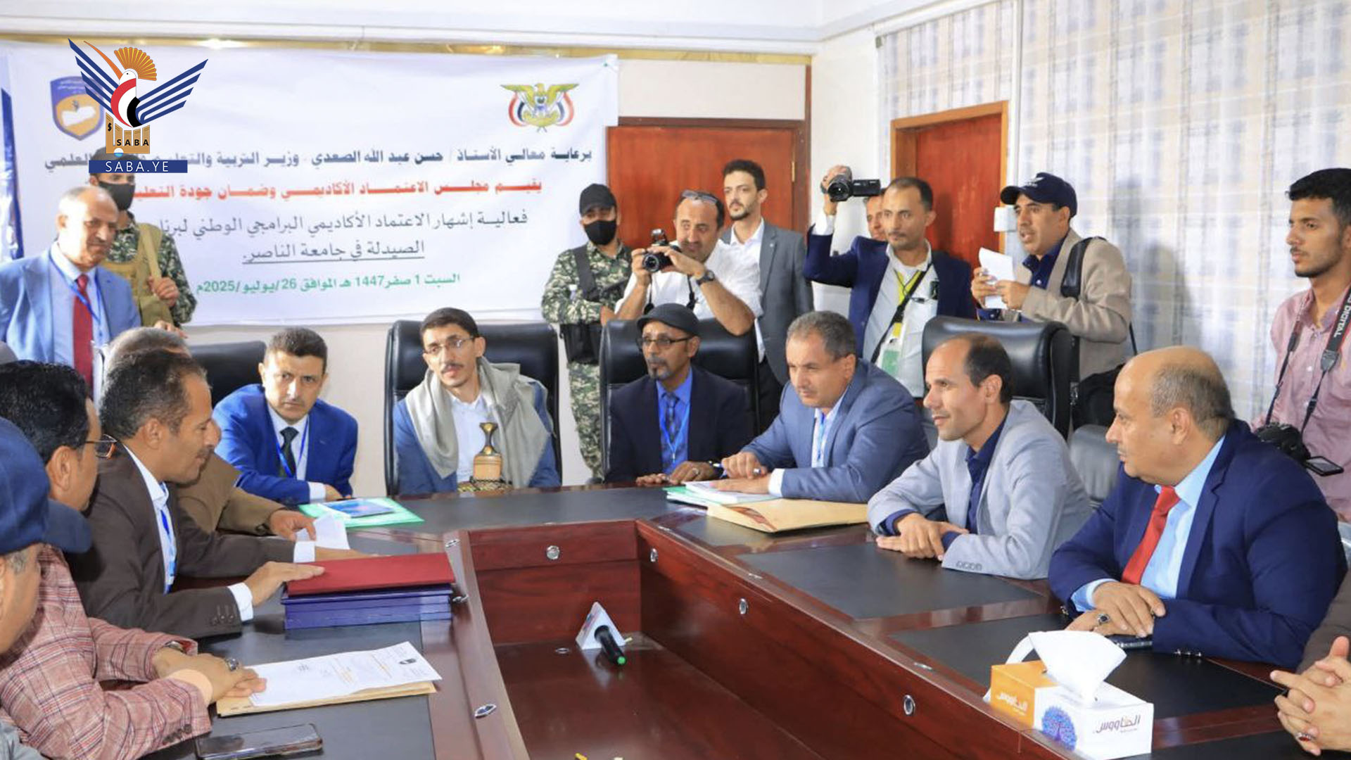 وفي حفل الإشهار الذي نظمه المجلس بارك وزير التربية والتعليم والبحث العلمي حسن الصعدي، لجامعة الناصر حصولها على شهادة الاعتماد الوطني البرامجي في الصيدلة، الذي يعد من أهم التخصصات المعول أن تسهم مخرجاتها في تحقيق الأمن الدوائي.