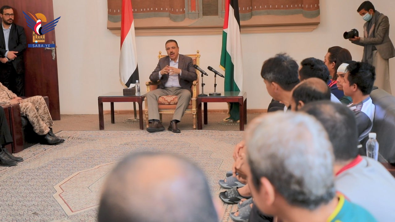 وقال وزير الخارجية" إن توجيهات قائد الثورة السيد عبدالملك بدر الدين الحوثي تقضي بأن يتم النظر إلى كل أبناء الشعوب باعتبارهم بشر دون تمييز خاصة ما يتعلق بالجانب الإنساني".