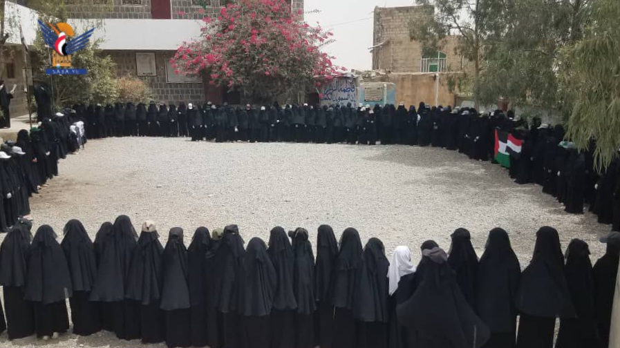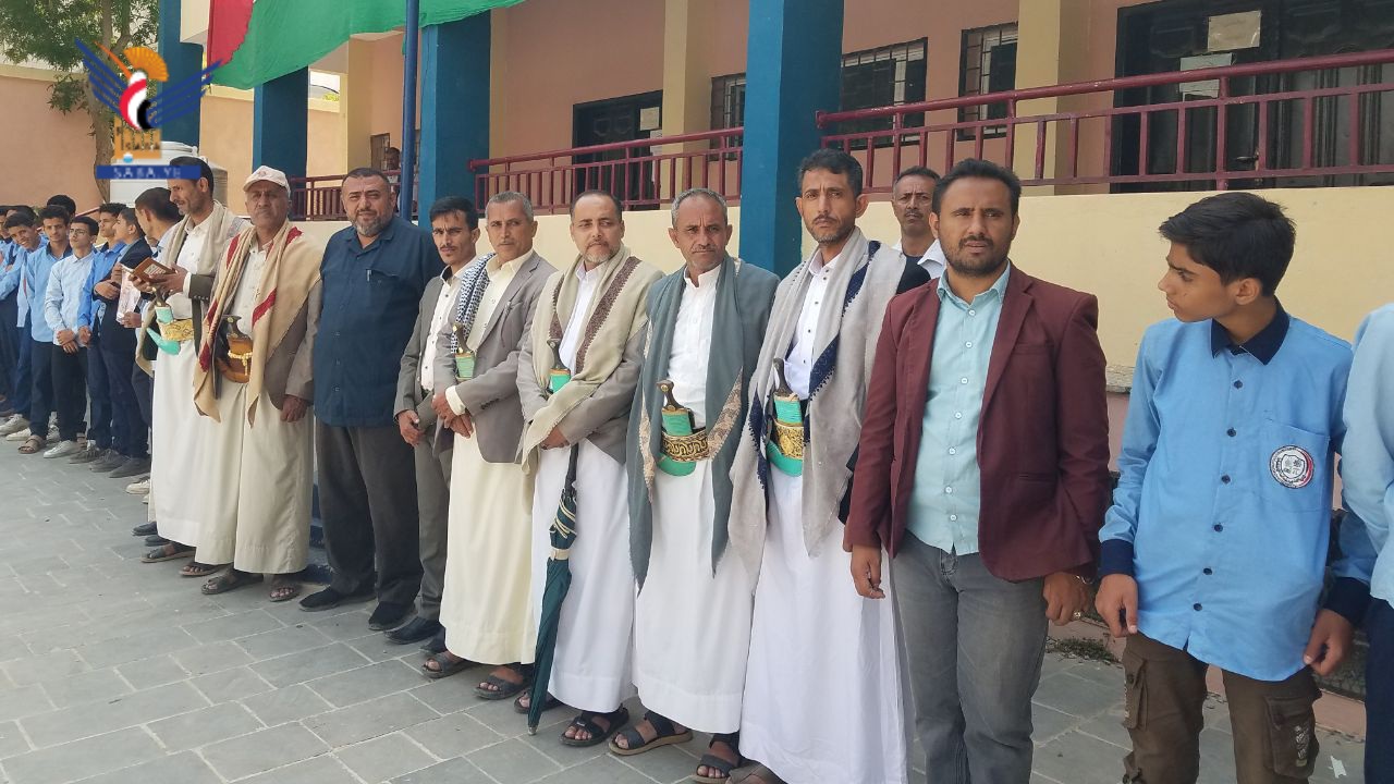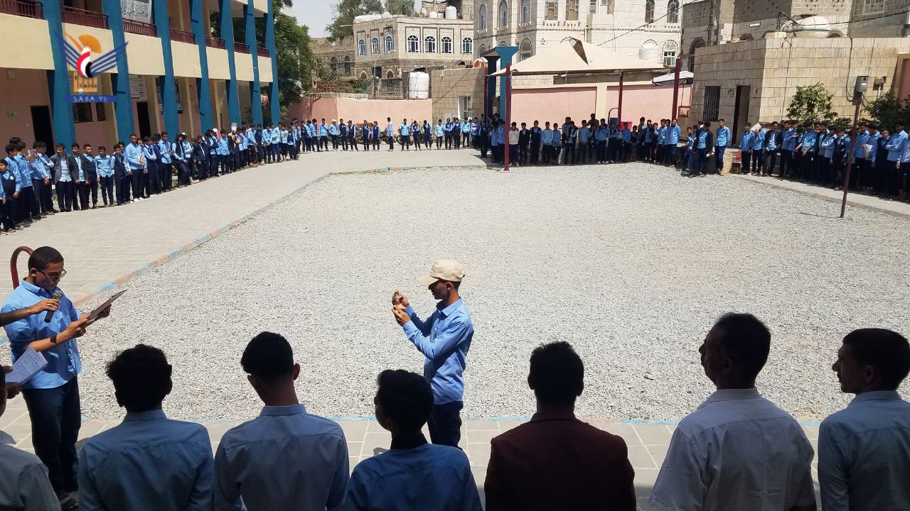 ورفع الطلاب المشاركين العلمين اليمني والفلسطيني، منددين بما يرتكبه العدو الصهيوني بحق الأشقاء في غزة من جرائم إبادة جماعية قتلاً وتجويعاً وتعطيشاً وحصاراً في ظل دعم أمريكي وصمت وتخاذل عربي وإسلامي وعالمي مشين.