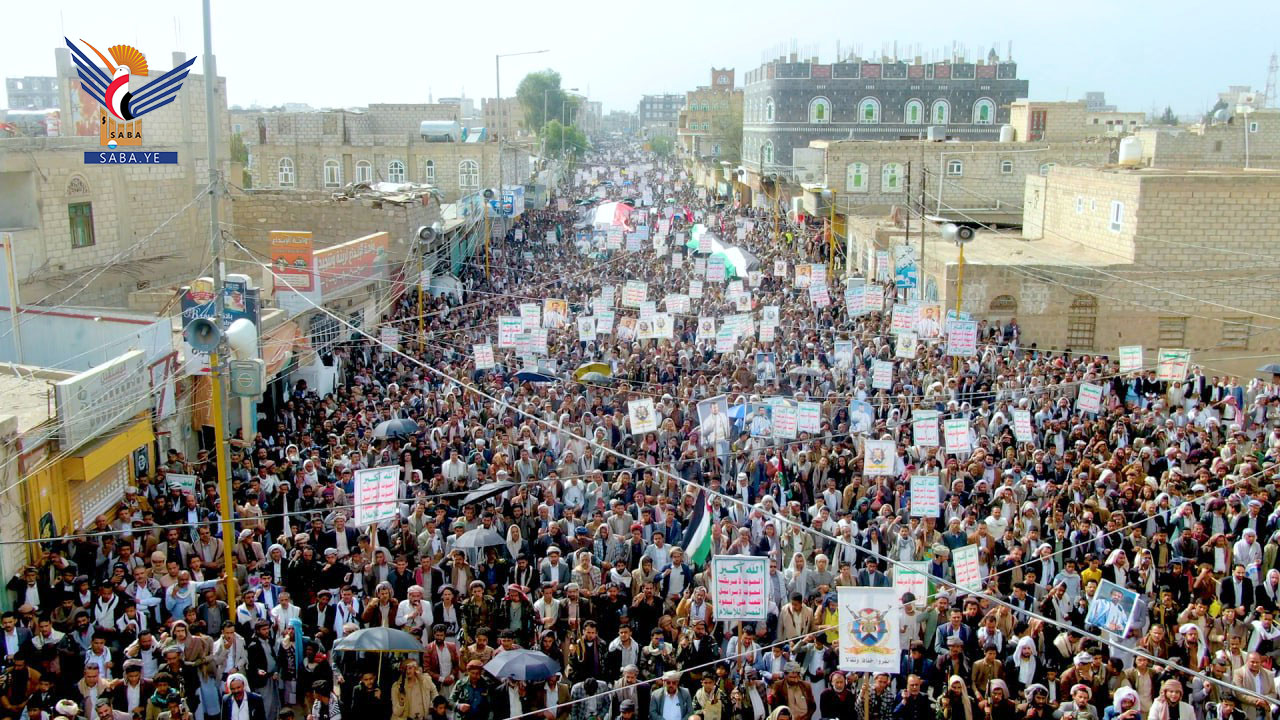 وذّكر بيان المسيرات، بالإجرام الصهيوني المدعوم أمريكياً وغربياً في غزة والذي بلغ مستويات لم يُوثق التاريخ البشري لها مثيل بالصوت والصورة - وخاصة موت الناس جوعاً، والتي تبقى البشرية بكلها شعوباً ومكونات وأنظمة ومنظمات أمام اختبار صعب وحاسم في سلامة إنسانيتها، والأمة الإسلامية في سلامة إنسانيتها وإسلامها.