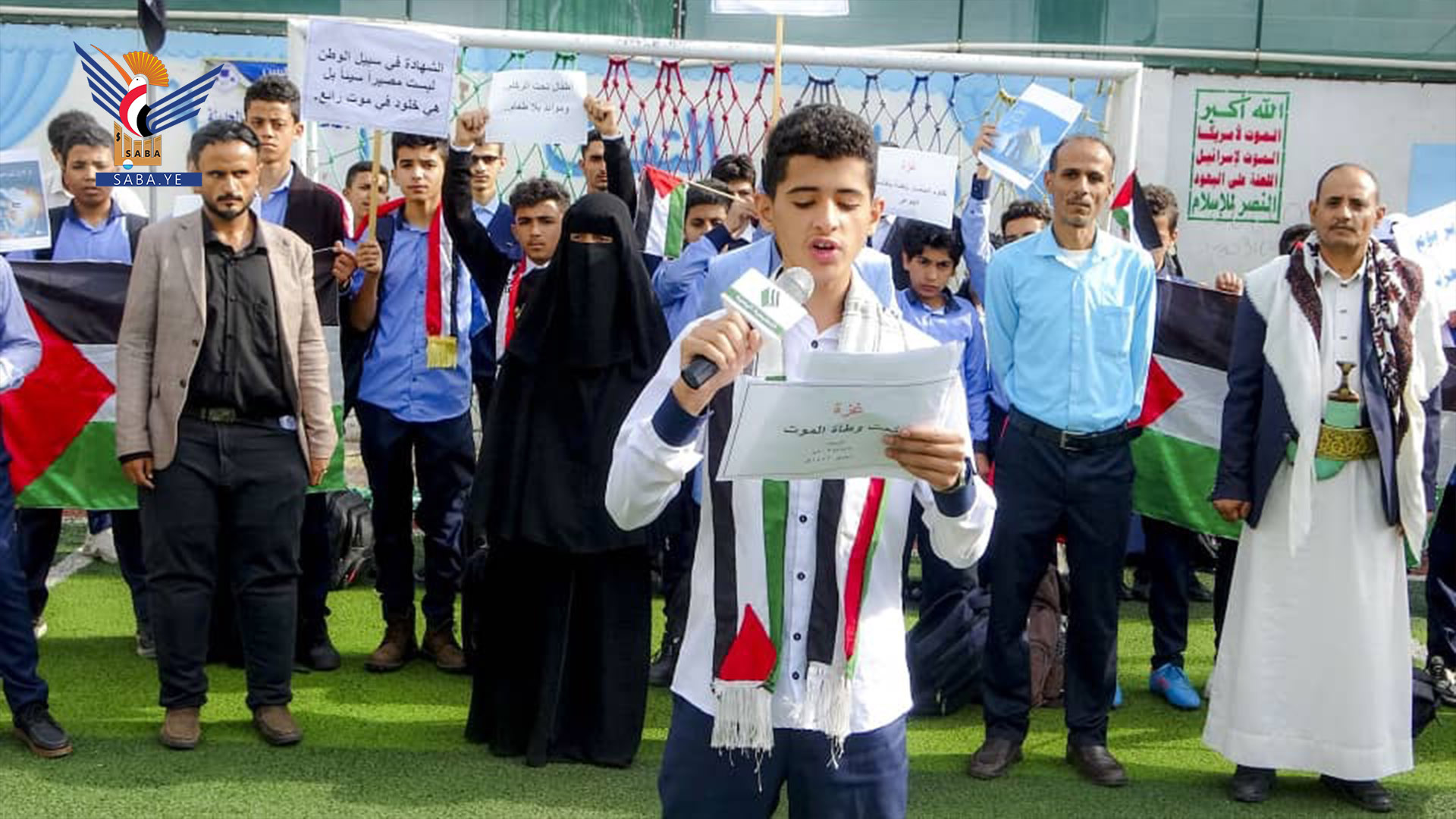 إب.. وقفة طلابية بمديرية الظهار تنديدًا بجرائم الكيان الصهيوني في قطاع غزة