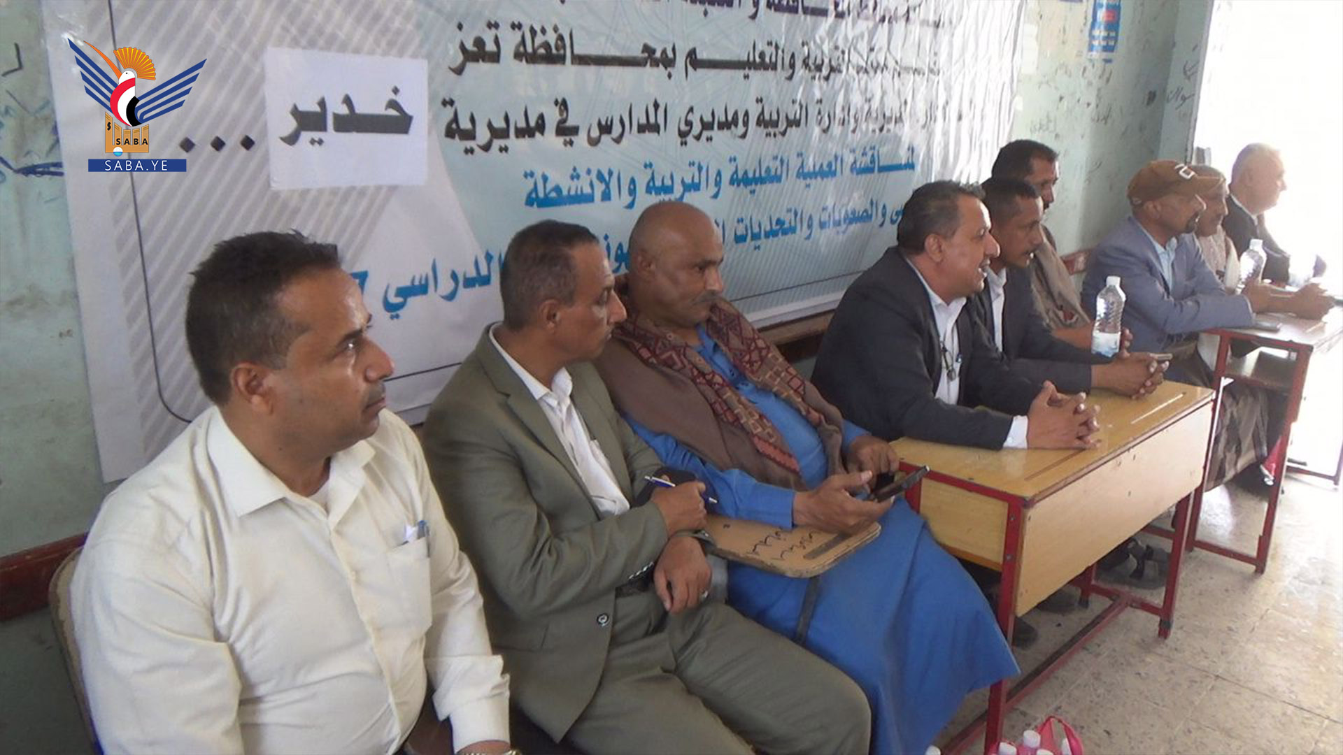 تعز.. لقاء موسع لمدراء المدارس الحكومية والأهلية في مديرية خدير