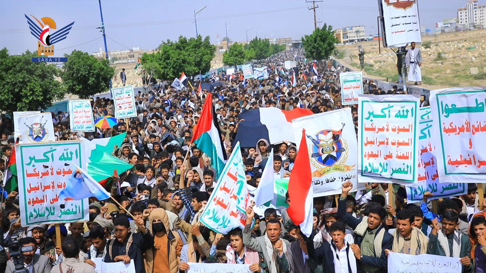 ورفع المشاركون هتافات ساخطة ضد العدو الإسرائيلي، وما يرتكبه من جرائم حرب بحق الشعب الفلسطيني في غزة، مؤكدين أن الشعب اليمني مستمر في موقفه الصامد والثبات في مساندة المجاهدين في غزة وكل فلسطين.